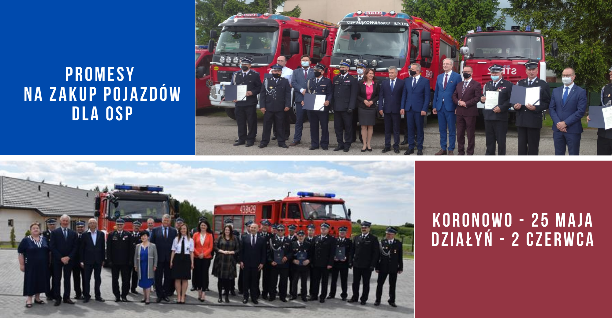 25 maja br., na placu przed remizą OSP w Koronowie, uroczyście przekazano promesy na zakup aut. W wydarzeniu, na które zapraszał Kujawsko-Pomorski Komendant Wojewódzki PSP i burmistrz Koronowa, uczestniczyli m.in. Posłowie na Sejm RP Pani Ewa Kozanecka i Tomasz Latos oraz Wojewoda Kujawsko-Pomorski Mikołaj Bogdanowicz.