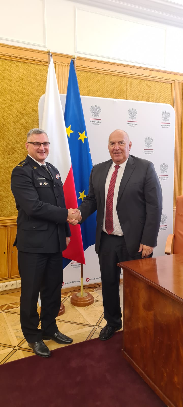 28 października Kujawsko-Pomorski Komendant Wojewódzki Państwowej Straży Pożarnej st. bryg. Jacek Kaczmarek spotkał się w Warszawie, w Ministerstwie Finansów z Ministrem Finansów Tadeuszem Kościńskim. Podczas spotkania Panowie poruszyli wiele ważnych tematów, między innymi rozmawiali o finansach kujawsko-pomorskich strażaków. Komendant spotkał się także z Panią Anną Rożek Dyrektor Biura Ministra. Były to owocne i merytoryczne spotkania.