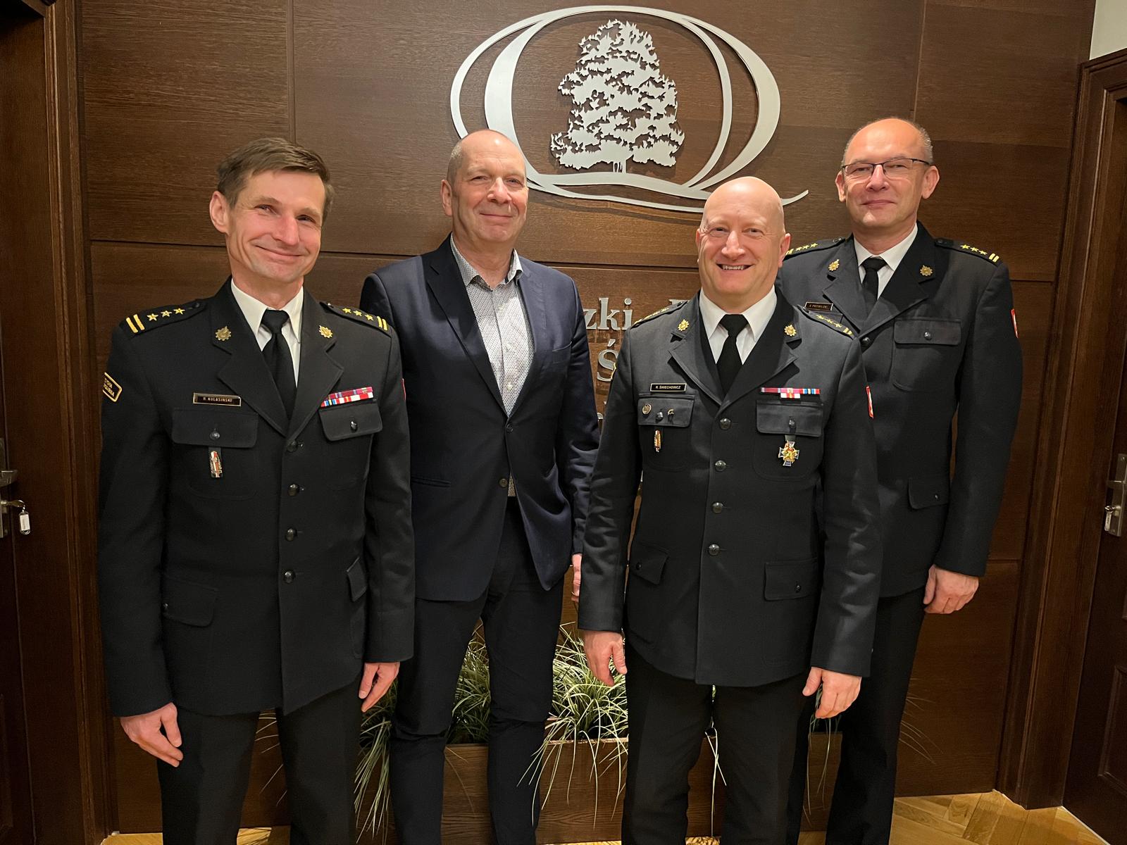 9 grudnia, w siedzibie Wojewódzkiego Funduszu Ochrony Środowiska i Gospodarki Wodnej w Toruniu odbyło się spotkanie z Prezesem Grzegorzem Boroniem. Obecny na nim kujawsko-pomorski komendant wojewódzki PSP st. bryg. Rafał Świechowicz wraz z zastępcami, st. bryg. Arturem Przybylskim i st. bryg. Robertem Kulasińskim, omówili wiele kwestii łączących obie instytucje.