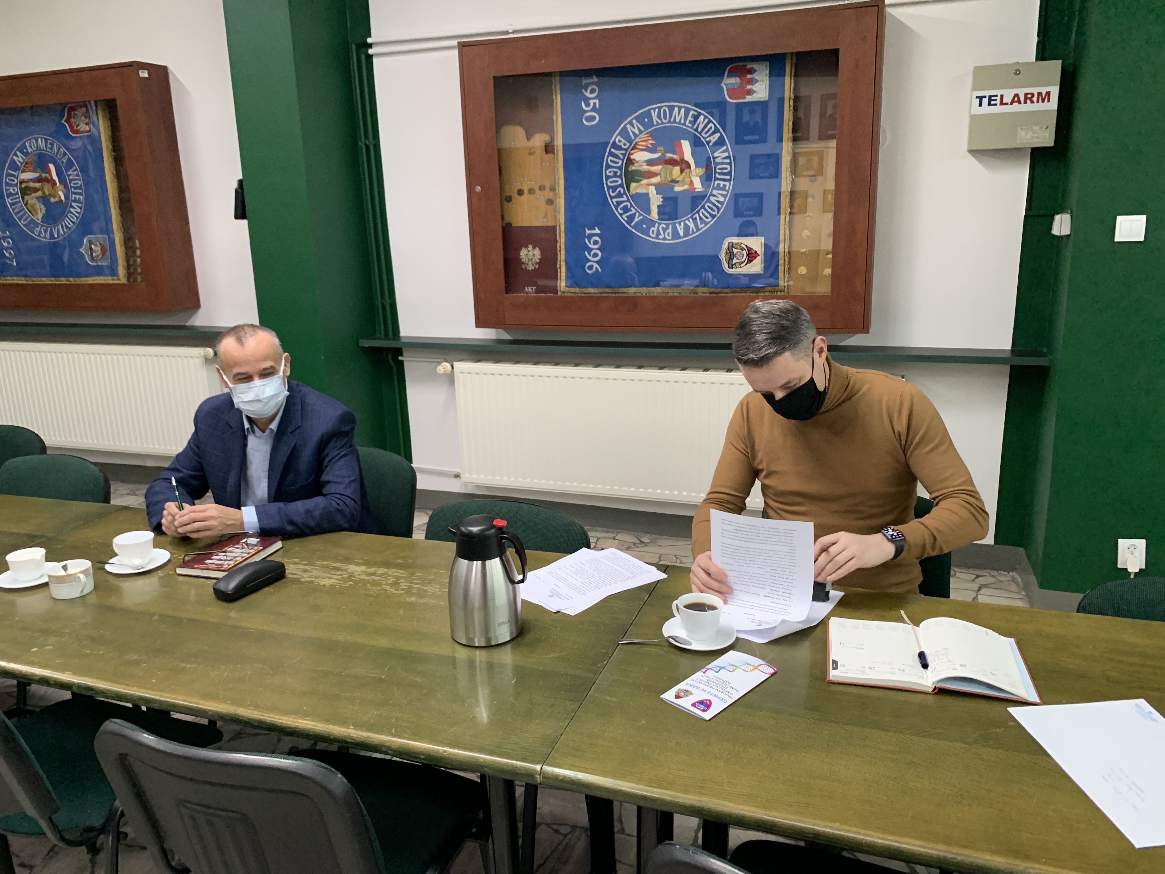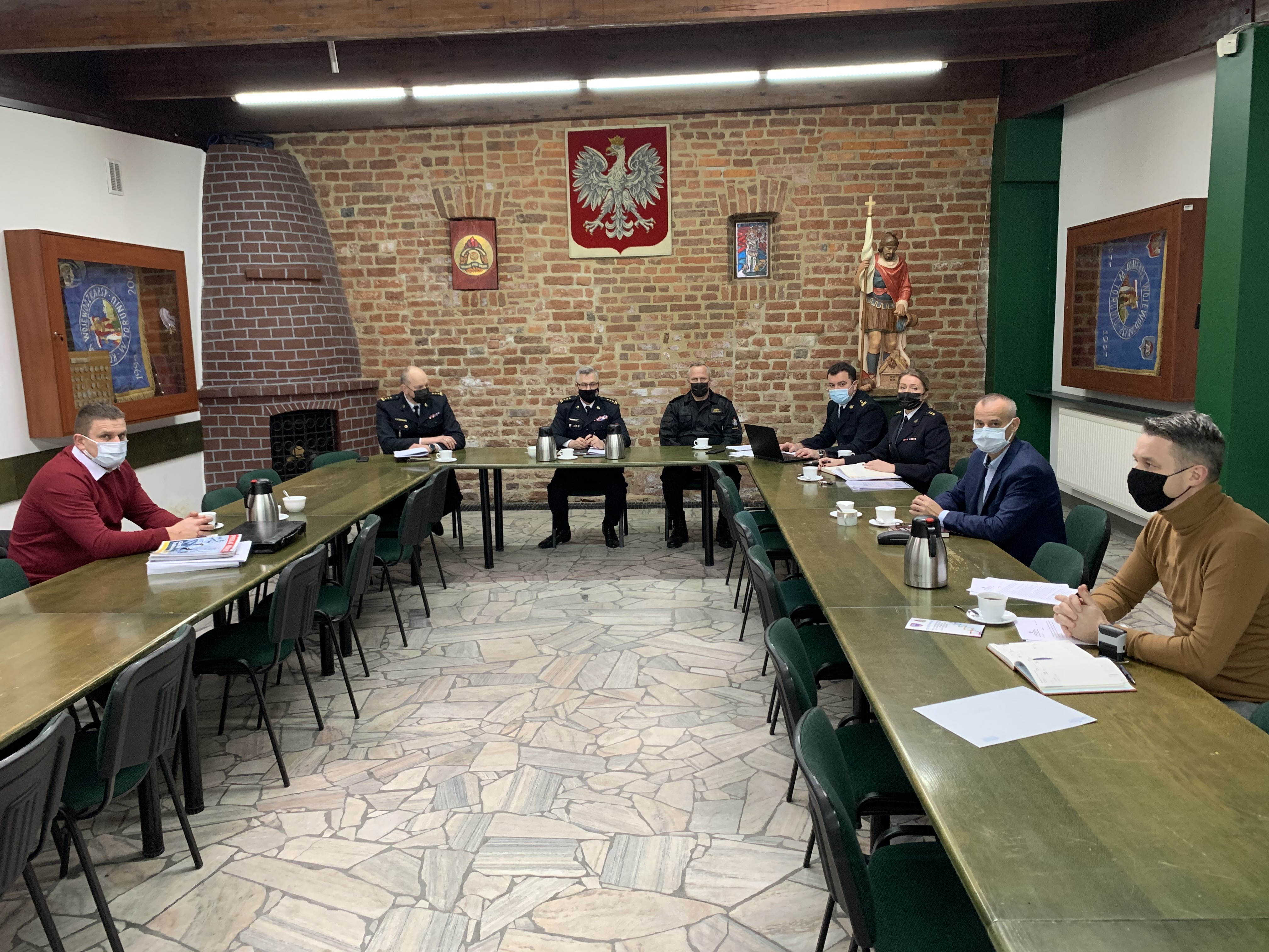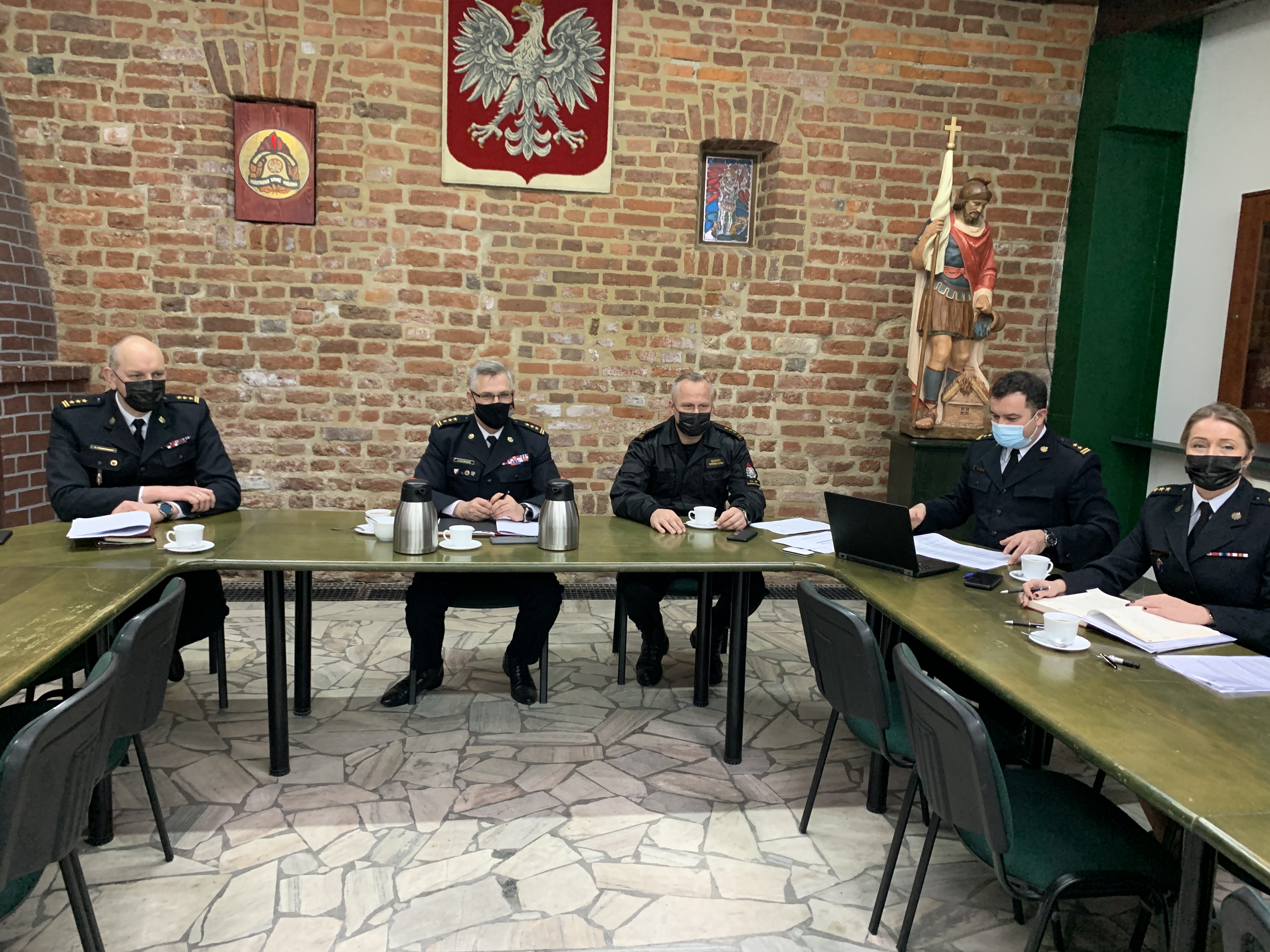 Z zachowaniem reżimu sanitarnego, 27 stycznia br., odbyło się spotkanie Kujawsko-Pomorskiego Komendanta Wojewódzkiego Państwowej Straży Pożarnej st. bryg. Jacka Kaczmarka oraz Jego zastępców st. bryg. Sławomira Herbowskiego i st. bryg. Roberta Wiśniewskiego z Przewodniczącymi wojewódzkich struktur związków zawodowych strażaków Państwowej Straży Pożarnej w regionie. Spotkanie dotyczyło ustalenia zasad rozdziału środków finansowych na uposażenia funkcjonariuszy oraz przedstawiono stronie związkowej rozliczenie funduszu nagród za 2020 rok.