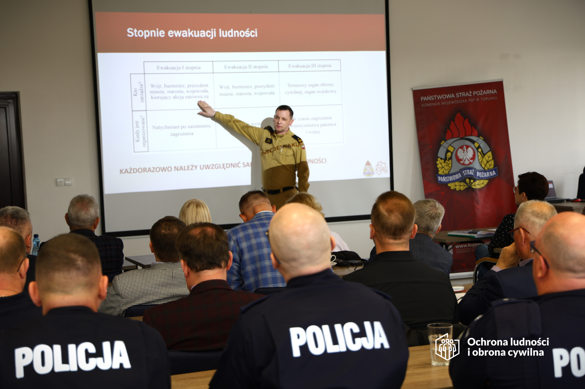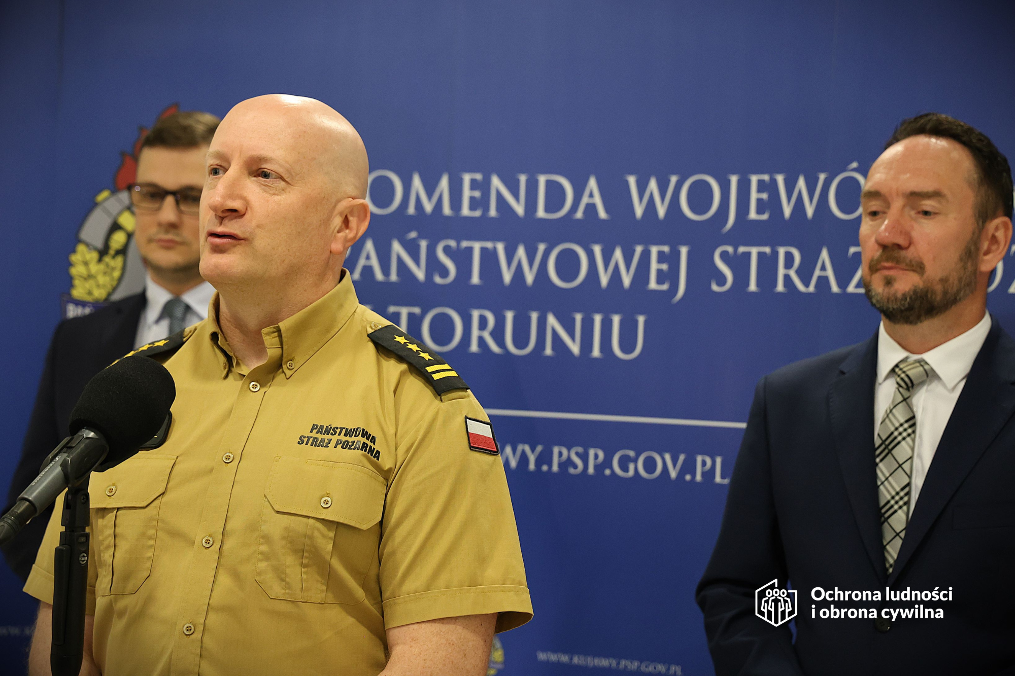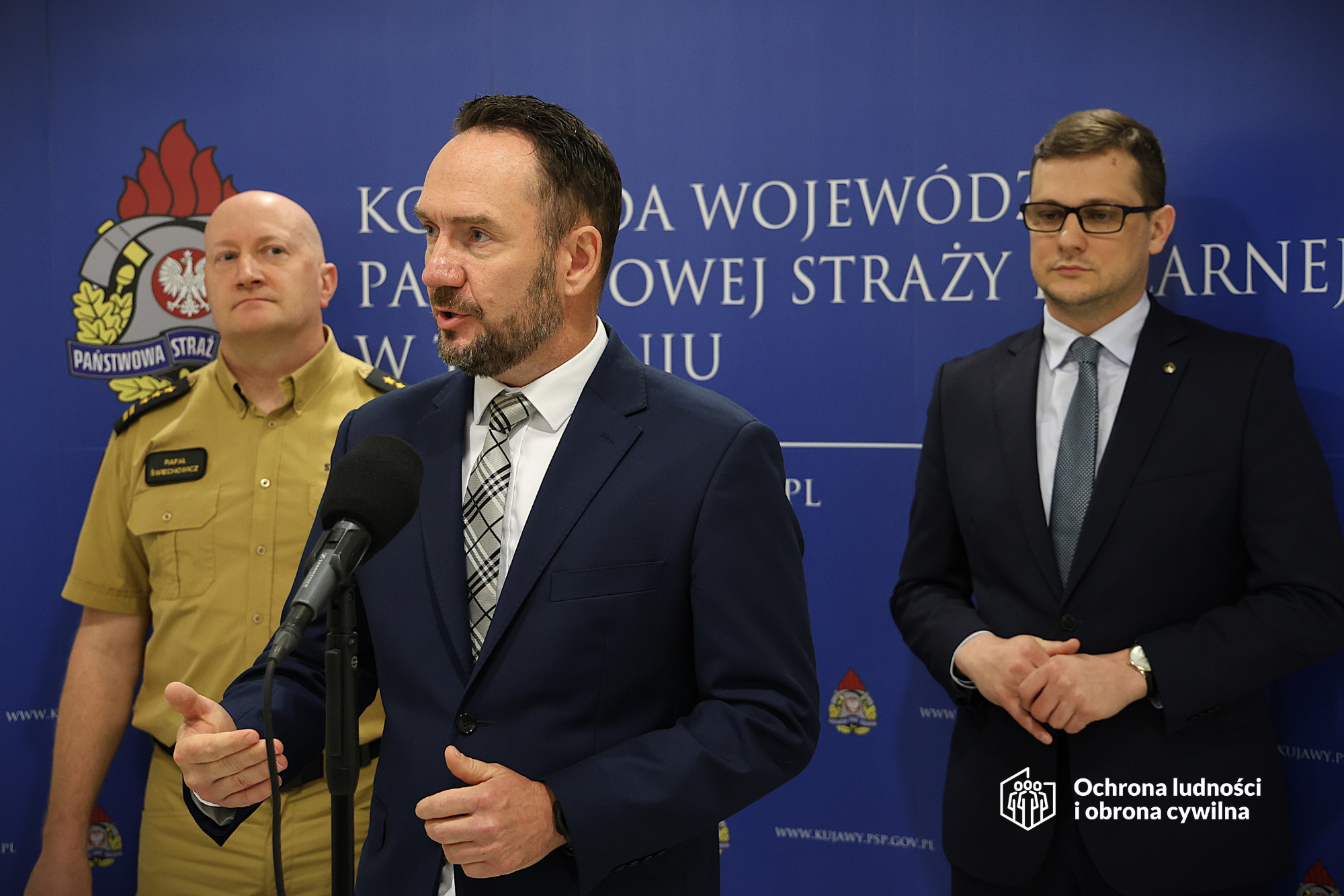 Na spotkanie z wójtami i burmistrzami miast przyjechał Sekretarz Stanu w MSWiA Tomasz Szymański i Wojewoda Kujawsko-Pomorski Michał Sztybel. Razem z Kujawko-Pomorskim Komendantem Wojewódzkim PSP st. bryg. Rafałem Świechowiczem, wzięli udział w konferencji prasowej na temat wdrażania ustawy o ochronie ludności i obronie cywilnej w naszym regionie, mówili też o rządowym wsparciu służb mundurowych.