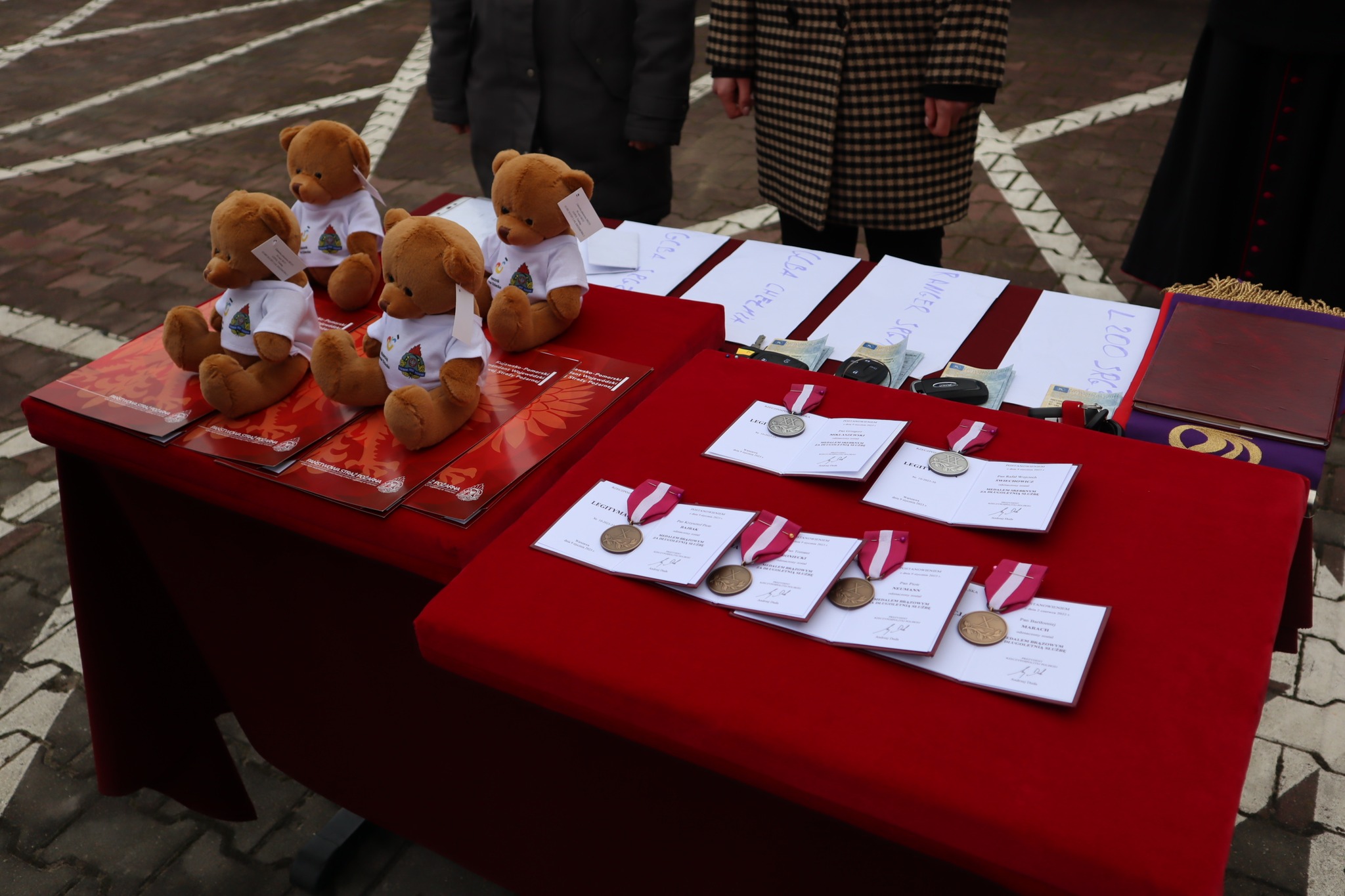 Podwójna uroczystość w toruńskiej strażnicy – odznaczenia państwowe dla funkcjonariuszy i nowe wozy. Medale za długoletnią służbę wręczył strażakom wicewojewoda kujawsko-pomorski Józef Ramlau, a towarzyszyli mu parlamentarzyści – dr Joanna Borowiak i Jan Krzysztof Ardanowski. W wydarzeniu udział wzięli również włodarze, m.in. Prezydent Miasta Michał Zaleski, Starosta Marek Olszewski.