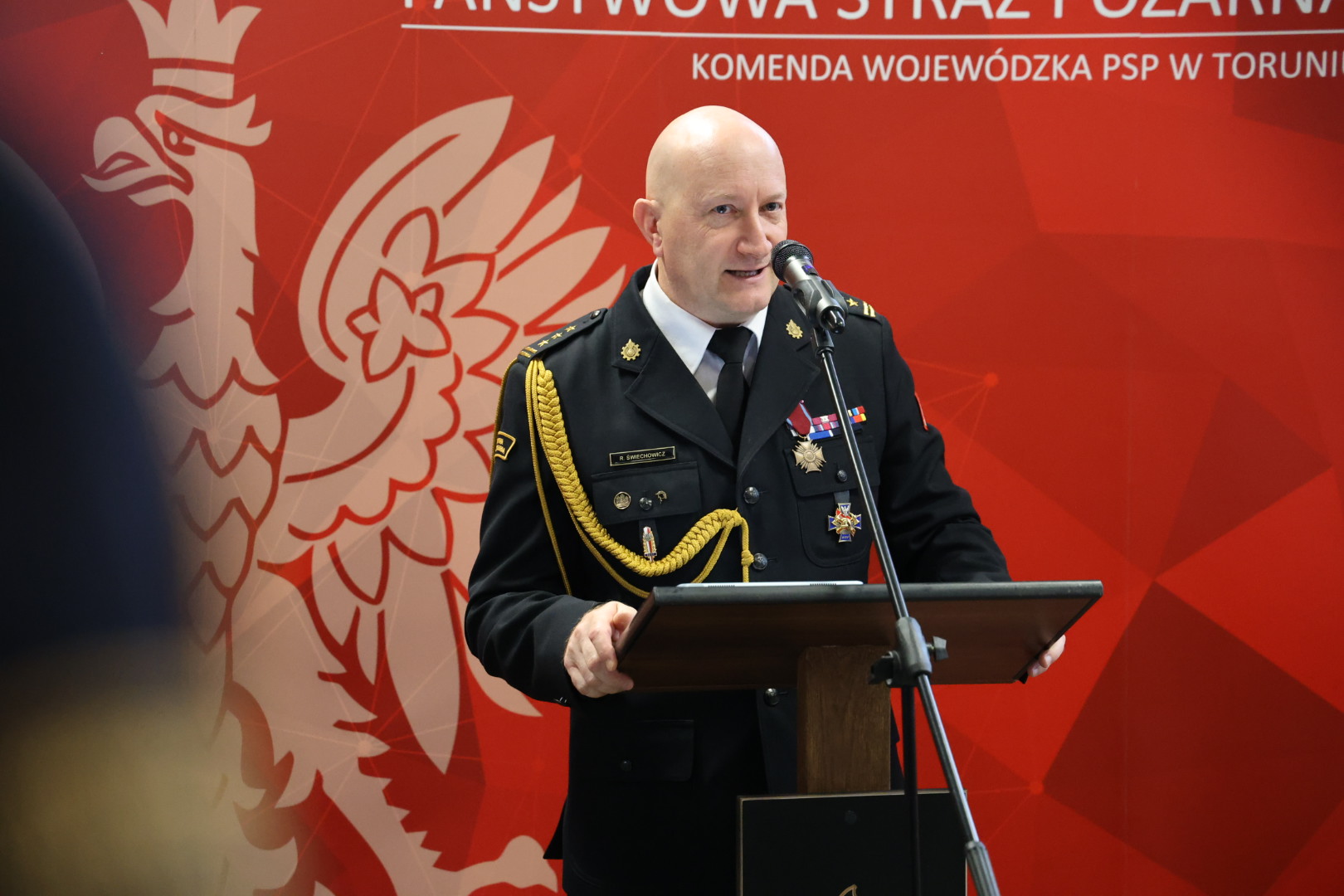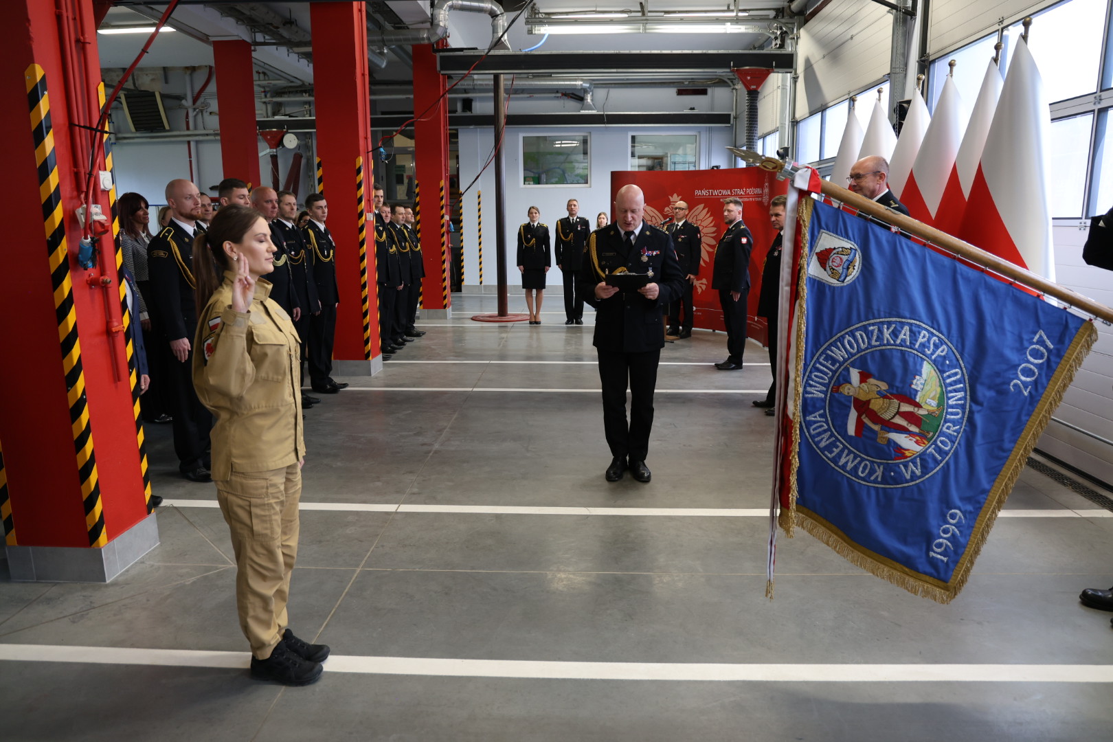 W dniu 16 grudnia 2025 r., w obiekcie Jednostki Ratowniczo-Gaśniczej nr 3 w Toruniu, w tymczasowej siedzibie Komendy Wojewódzkiej PSP w Toruniu, odbyła się uroczysta zbiórka łącząca okoliczność uczczenia 107. rocznicy Odzyskania przez Polskę Niepodległości oraz ślubowania nowo przyjętego do służby strażaka.