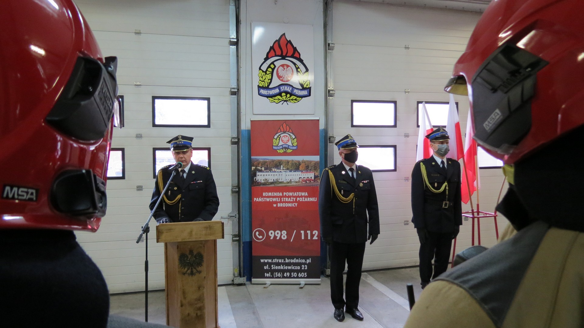 18 listopada 2021 roku w Komendzie Powiatowej Państwowej Straży Pożarnej w Brodnicy z okazji Narodowego Święta Niepodległości odbyła się uroczysta zbiórka z udziałem funkcjonariuszy i pracowników cywilnych tut. komendy. W uroczystości uczestniczył Zastępca Kujawsko-Pomorskiego Komendanta Wojewódzkiego Państwowej Straży Pożarnej st. bryg. Robert Wiśniewski oraz Komendant Powiatowy Państwowej Straży Pożarnej w Brodnicy st. bryg. Waldemar Szrull.
