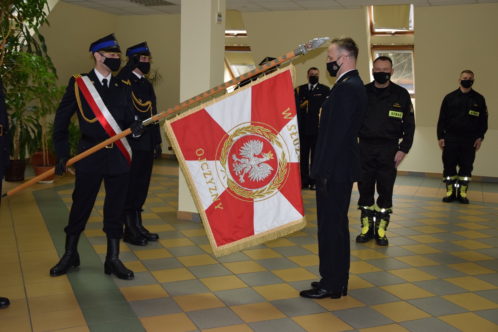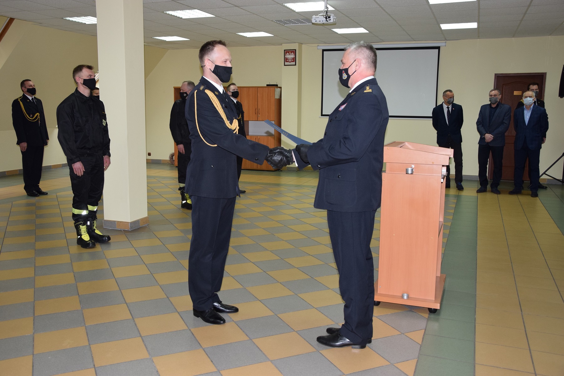 W dalszej części uroczystości Kujawsko-Pomorski Komendant Wojewódzki PSP st. bryg. Jacek Kaczmarek pogratulował oraz życzył nowo powołanemu zastępcy Komendanta Powiatowego st. kpt. Dawidowi Tarkowskiemu sukcesów, wytrwałości na objętym stanowisku oraz przypomniał o nowych obowiązkach, które będą na nim spoczywać.