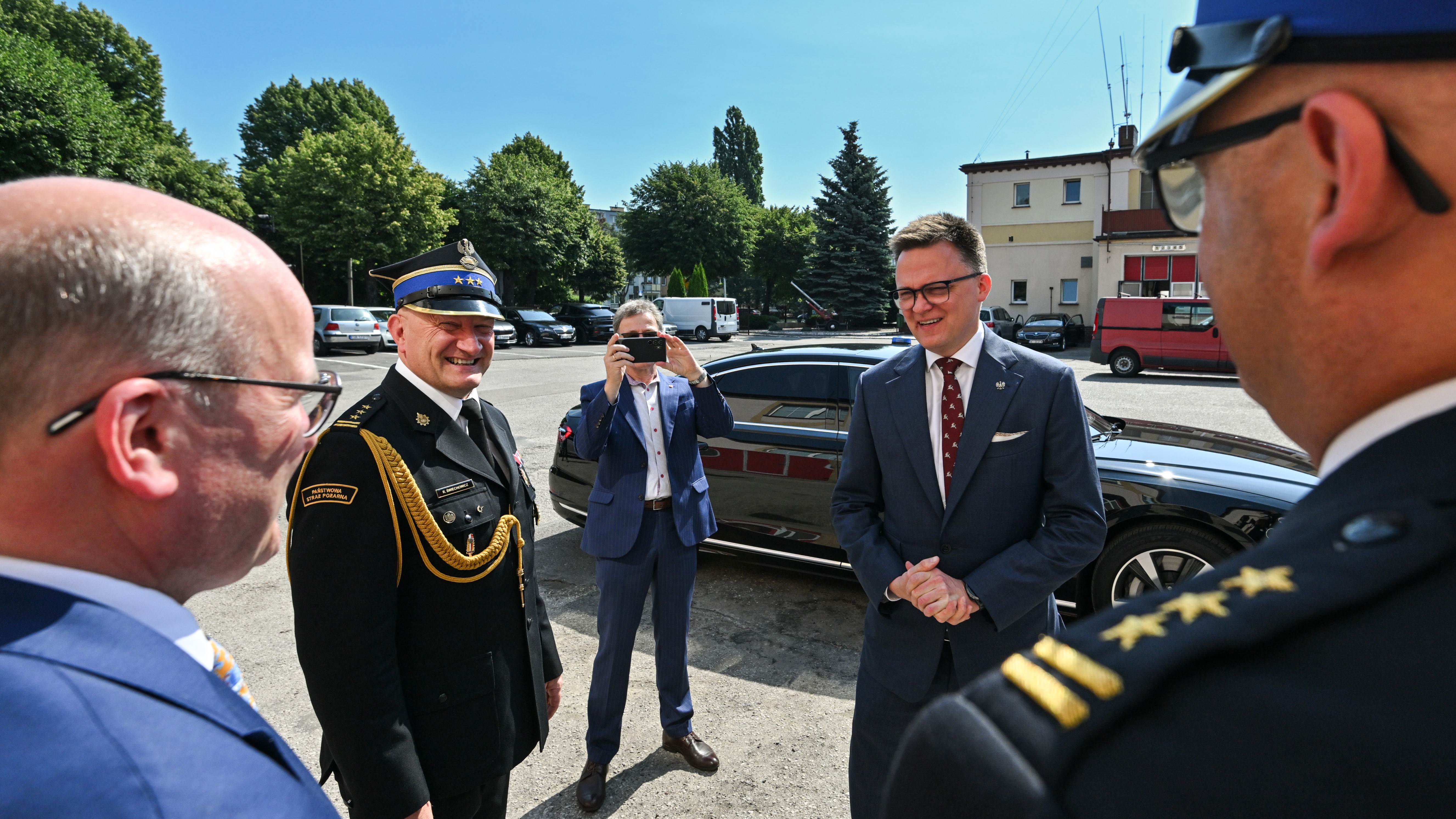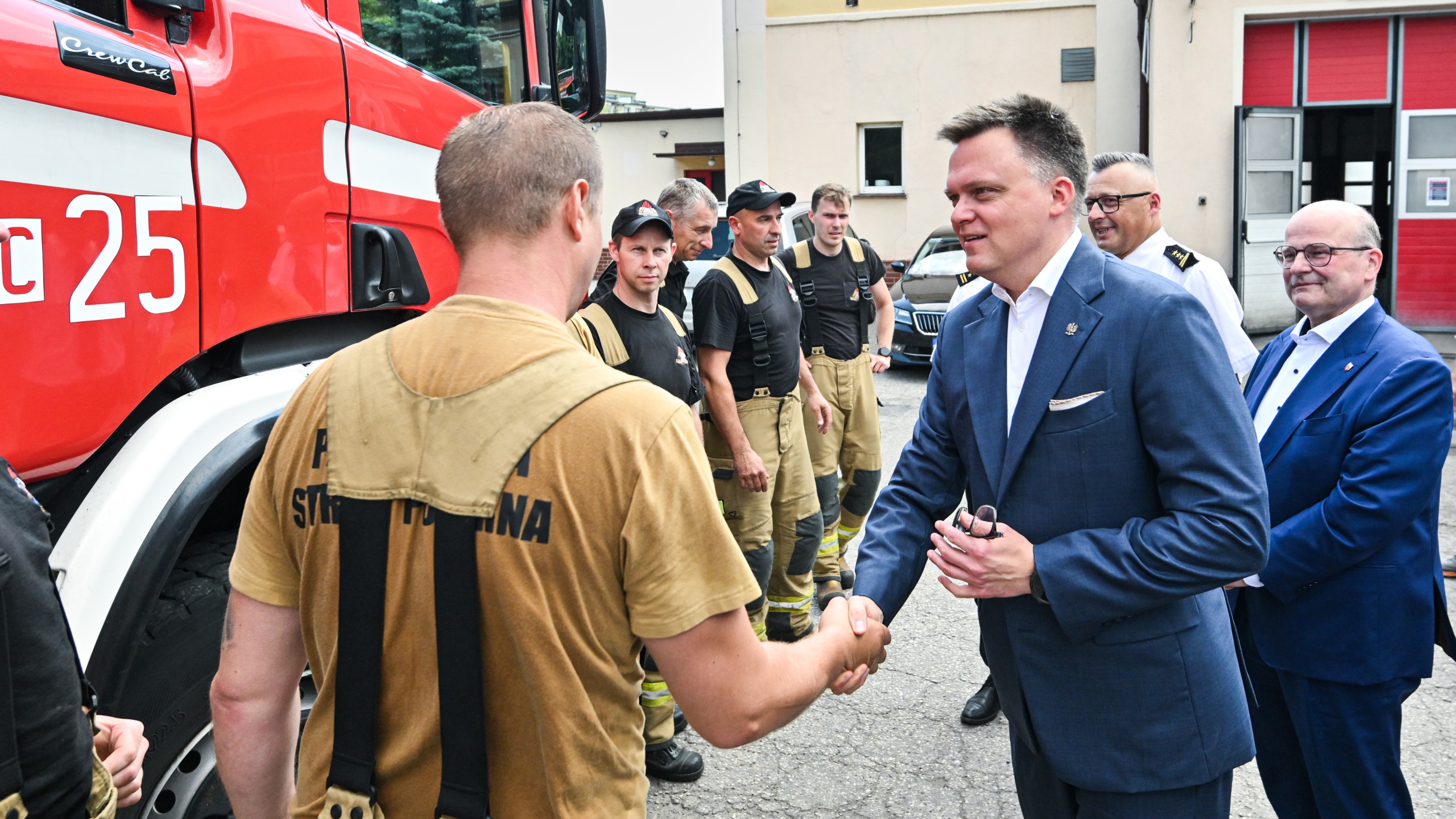 3 lipca 2025 r. Marszałek Sejmu RP Szymon Hołownia gościł przejazdem u strażaków w Grudziądzu. Odwiedził siedzibę komendy i jednostki ratowniczo-gaśniczej przy ul. Piłsudskiego... i choć nie zdołał odwiedzić nowo powstającej strażnicy, na ręce komendanta miejskiego PSP przekazał biało-czerwony prezent - flagę Rzeczpospolitej Polskiej. 🇵🇱