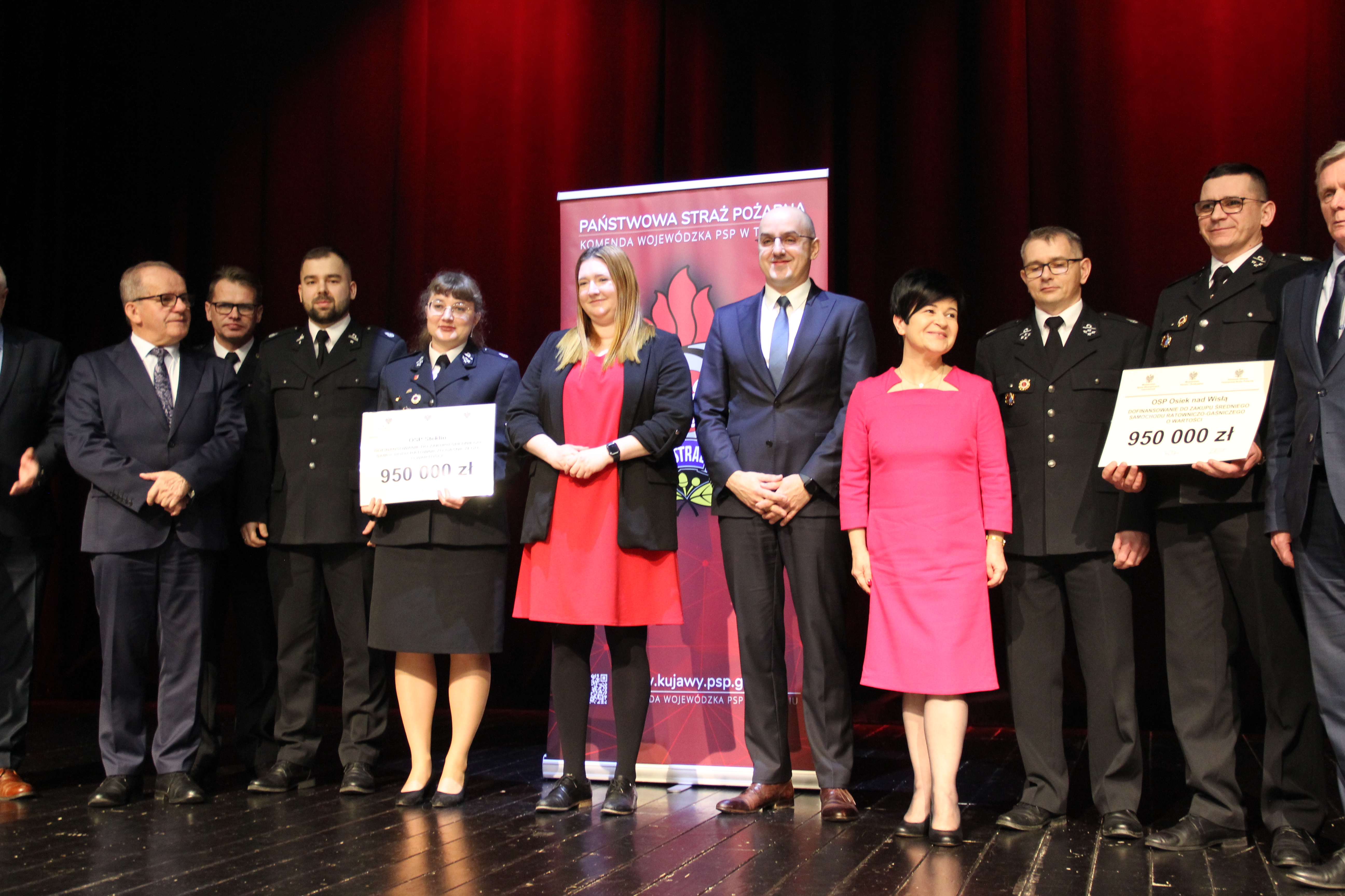 Uroczystego przekazania promes dokonali parlamentarzyści z regionu i goście. W Świeciu byli to Posłowie na Sejm RP Tomasz Latos, Ewa Kozanecka i Piotr Król. Do gratulacji dołączyli Kujawsko-Pomorski Komendant Wojewódzki PSP nadbryg. Jacek Kaczmarek, Jego zastępca st. bryg. Marek Rusoń oraz Prezes WFOŚ i GW Ireneusz Stachowiak. W Brześciu Kujawskim dokonali tego: Sekretarz Stanu w Ministerstwie Rolnictwa i Rozwoju Wsi Anna Gembicka, Poseł na sejm RP dr Joanna Borowiak oraz Senator RP Józef Łyczak. Towarzyszyli im komendanci wojewódzcy PSP oraz wiceprezes WFOŚiGW Dariusz Wrzos. W obu wydarzeniach uczestniczył również Prezes Zarządu Oddziału Wojewodzkiego ZOSP RP dh Jarosław Herbowski.