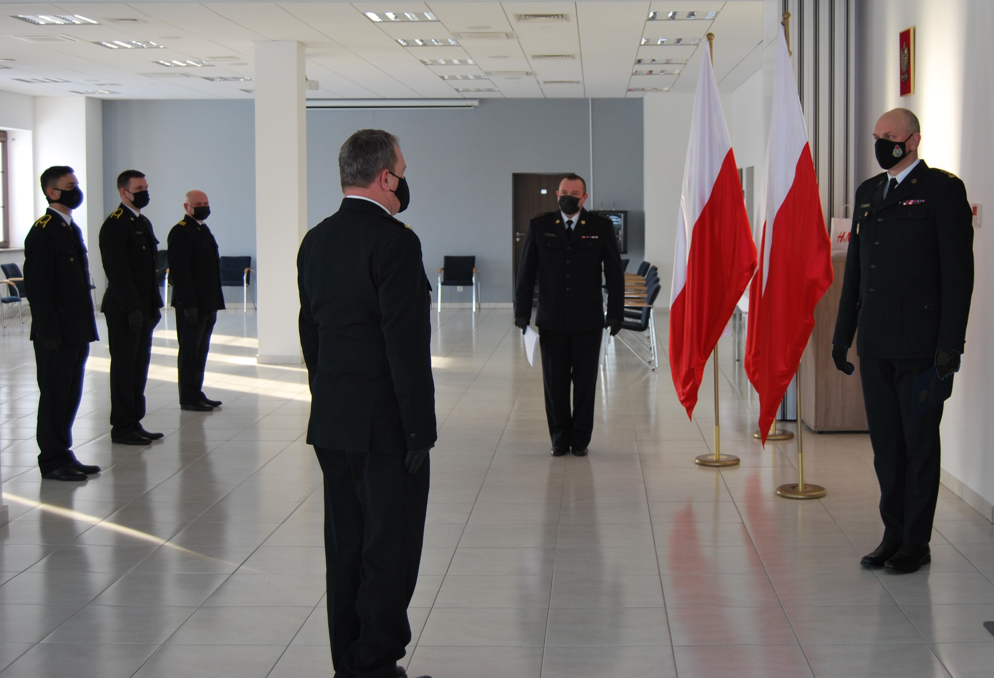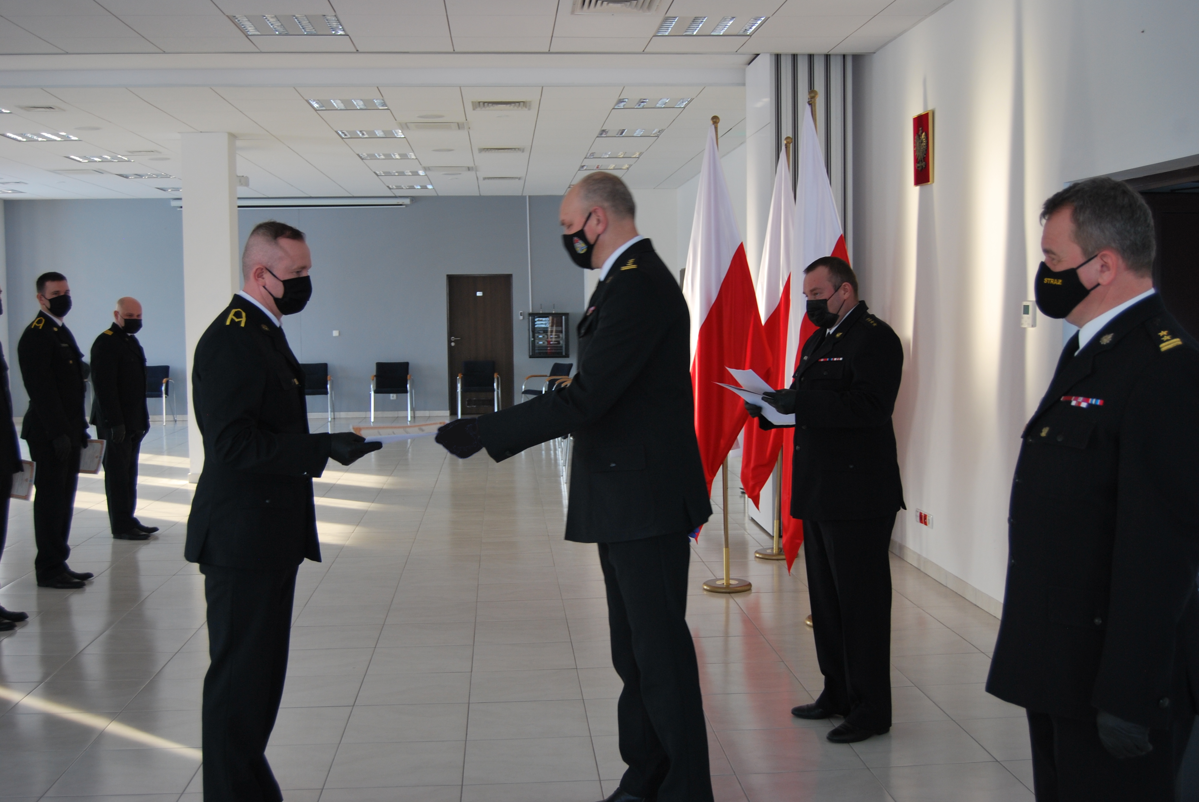 W imieniu Komendanta Szkoły Aspirantów PSP w Poznaniu, Zastępca Kujawsko-Pomorskiego Komendanta Wojewódzkiego PSP st. bryg. Sławomir Herbowski , wręczył „przyszłym aspirantom” świadectwa, potwierdzające kwalifikacje zawodowe oraz zaświadczenia o zaliczeniu pierwszego etapu szkolenia.