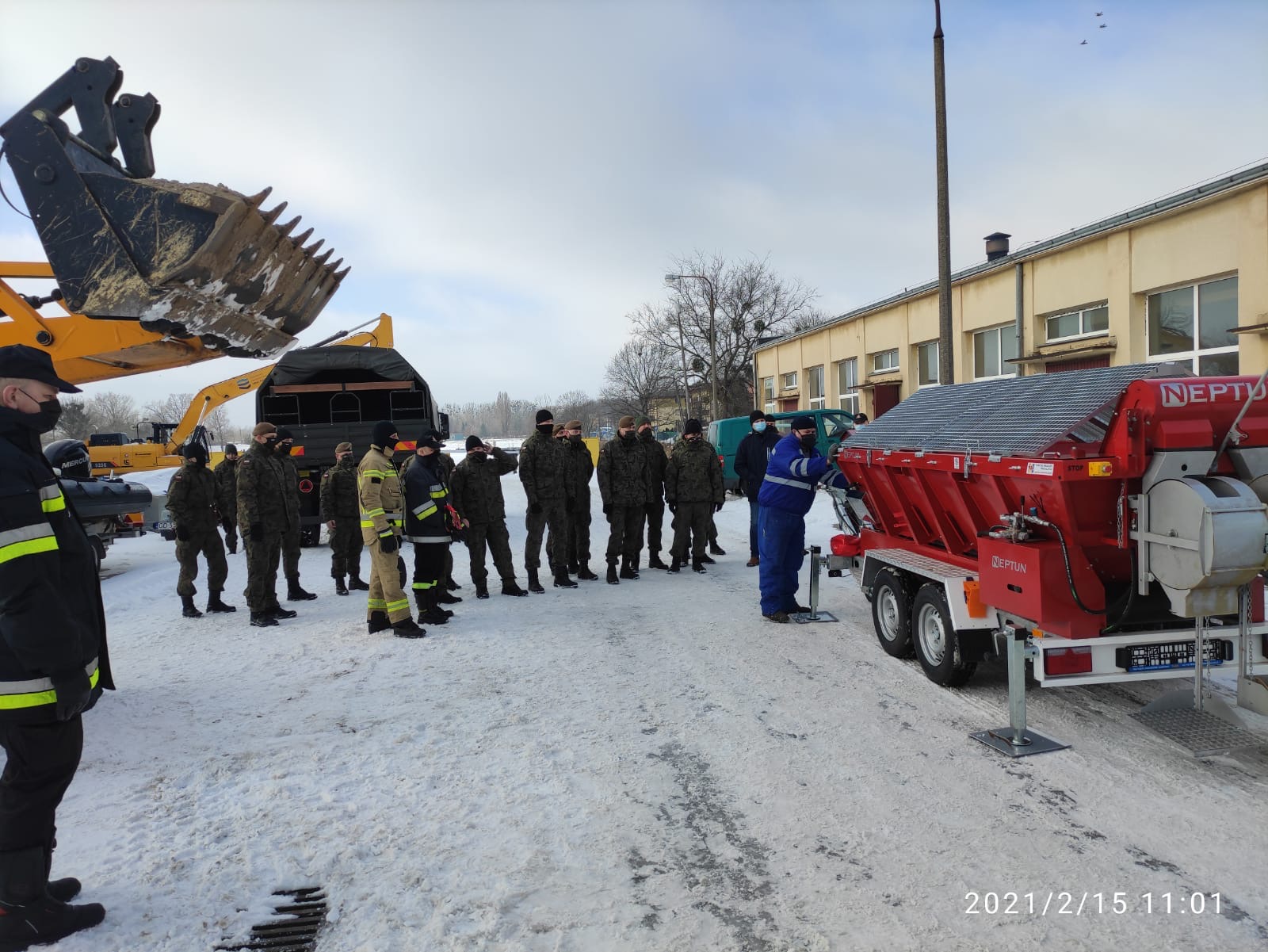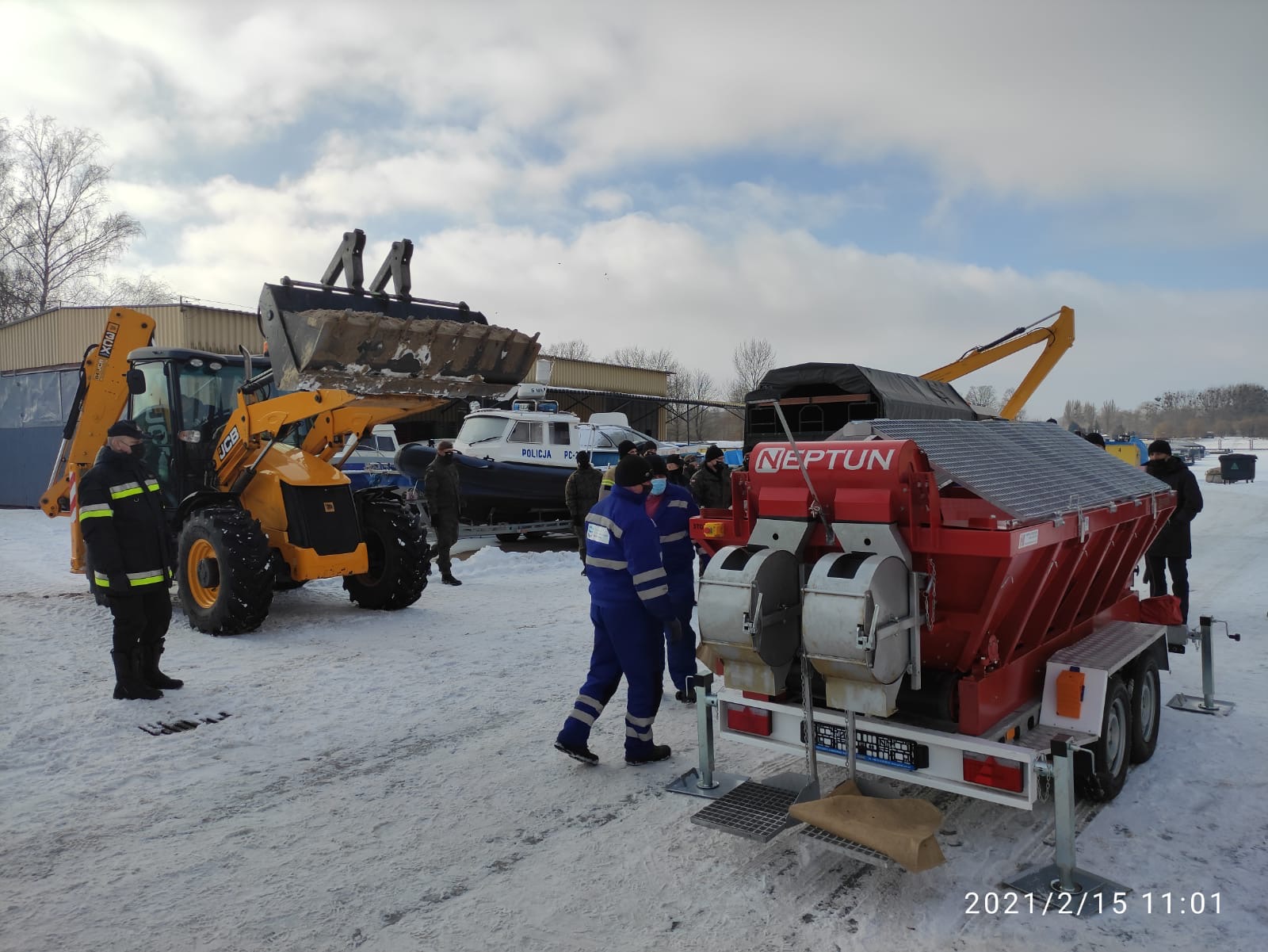 Gwałtowna zmiana pogody i wzrost temperatury powietrza może grozić skutkami podtopień i niebezpiecznych wezbrań. 15 lutego br., Zastępca Kujawsko-Pomorskiego Komendanta Wojewódzkiego st. bryg. Sławomir Herbowski, Dyrektor Wydziału Bezpieczeństwa i Zarządzania Kryzysowego UW w Bydgoszczy, Rafał Rewoliński, żołnierze 8. Kujawsko-Pomorskiej Brygady Wojsk Obrony Terytorialnej i in., sprawdzali stan wyposażenia magazynu przeciwpowodziowego, przy ul. ks. J. Popiełuszki w Toruniu.