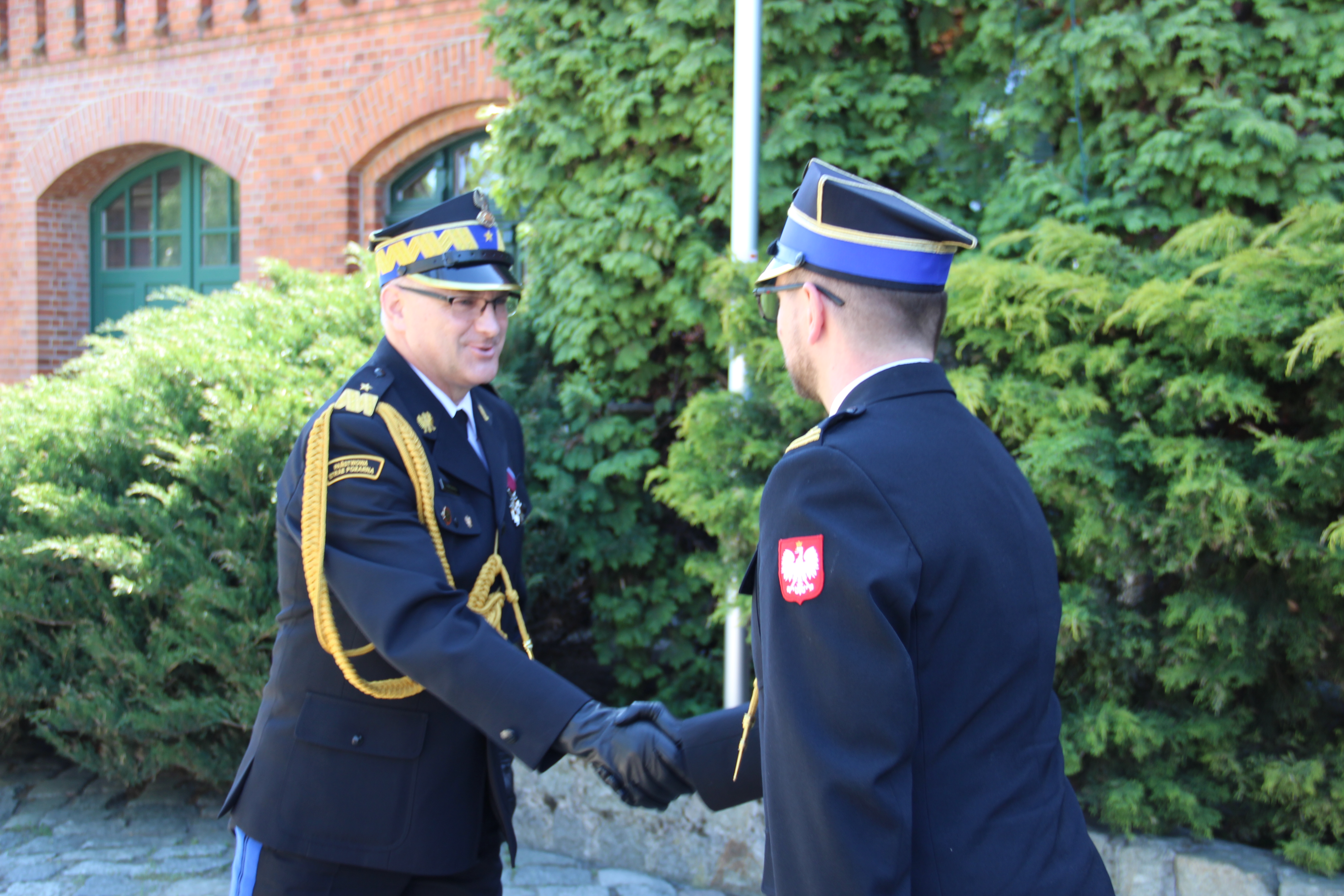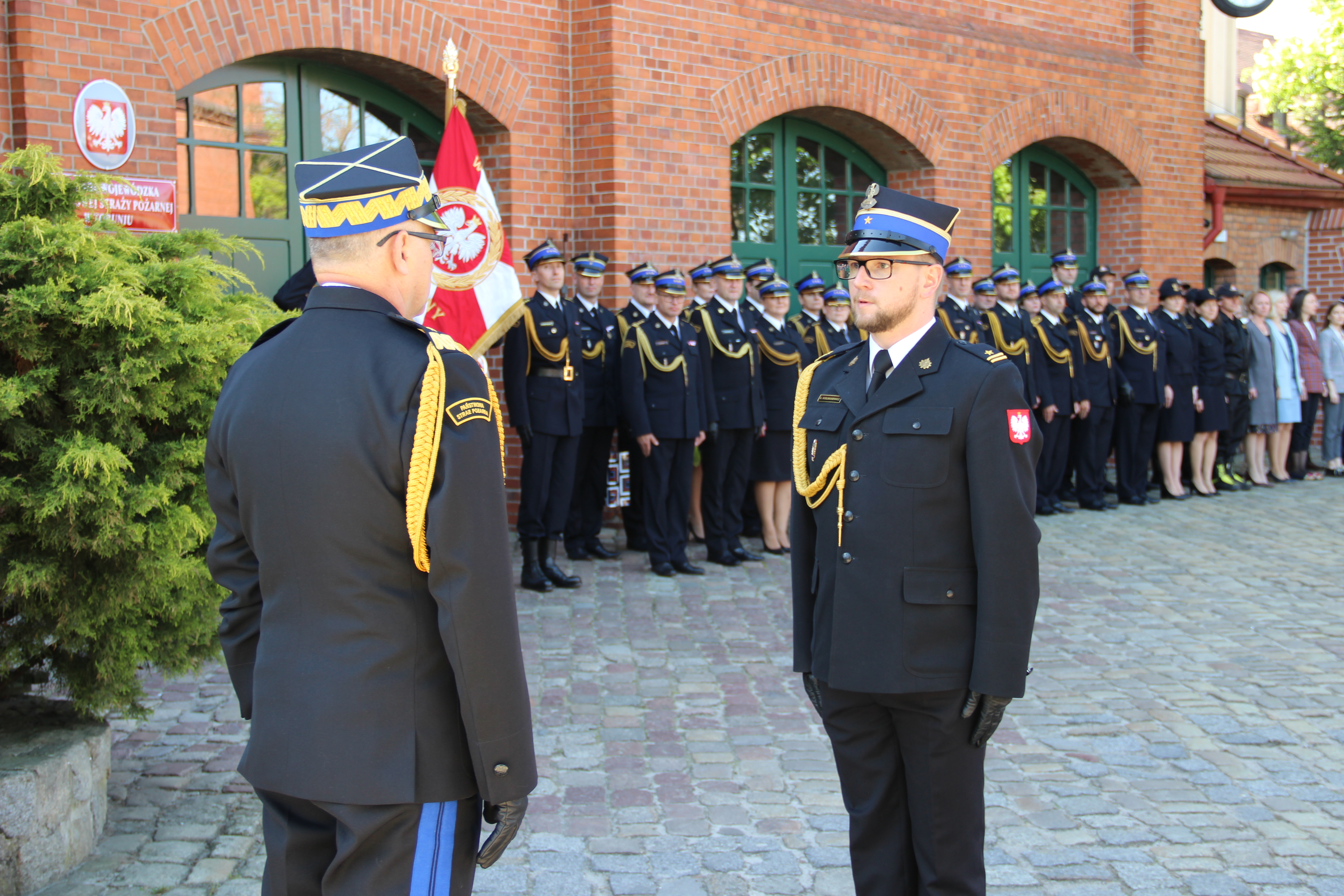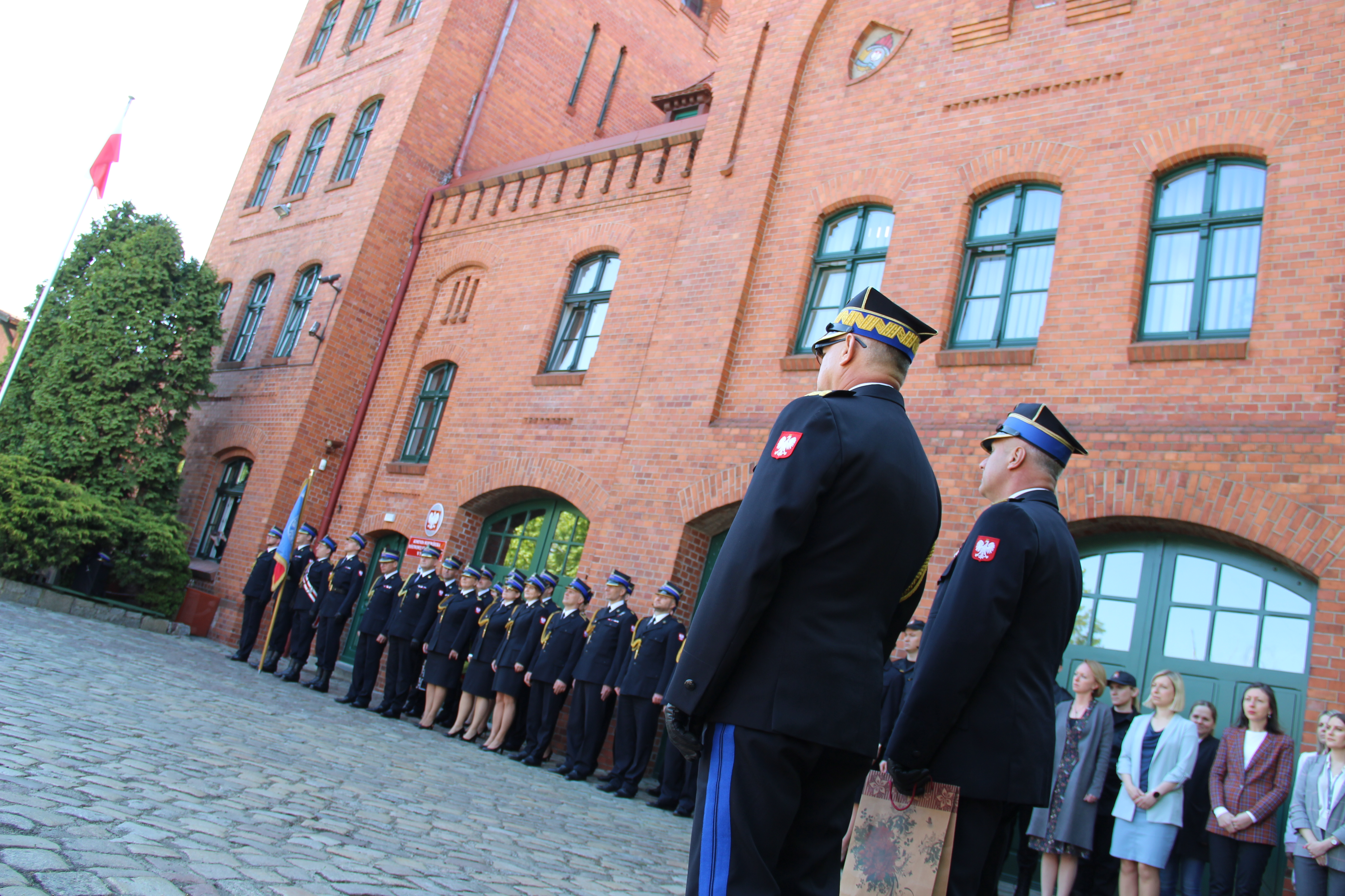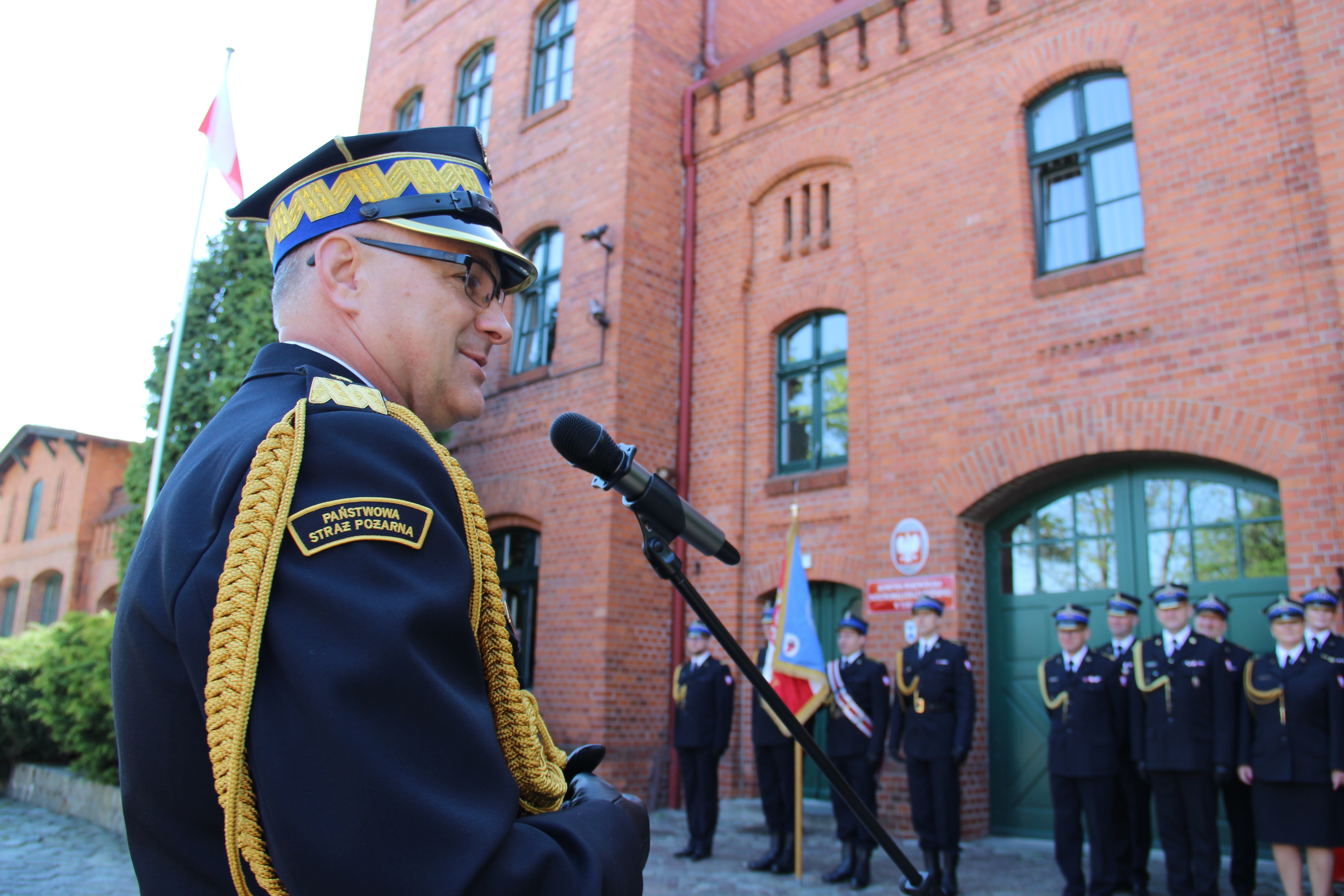 W poniedziałek rano, 9. maja br. funkcjonariusze i pracownicy cywilni KW PSP w Toruniu przywitali swojego komendanta, który trzy dni wcześniej, na Placu J. Piłsudskiego w Warszawie, podczas Centralnych Obchodów Dnia Strażaka, odebrał z rąk Prezydenta RP nominację na stopień nadbrygadiera. Uroczysta zbiórka była uhonorowaniem tego wydarzenia.