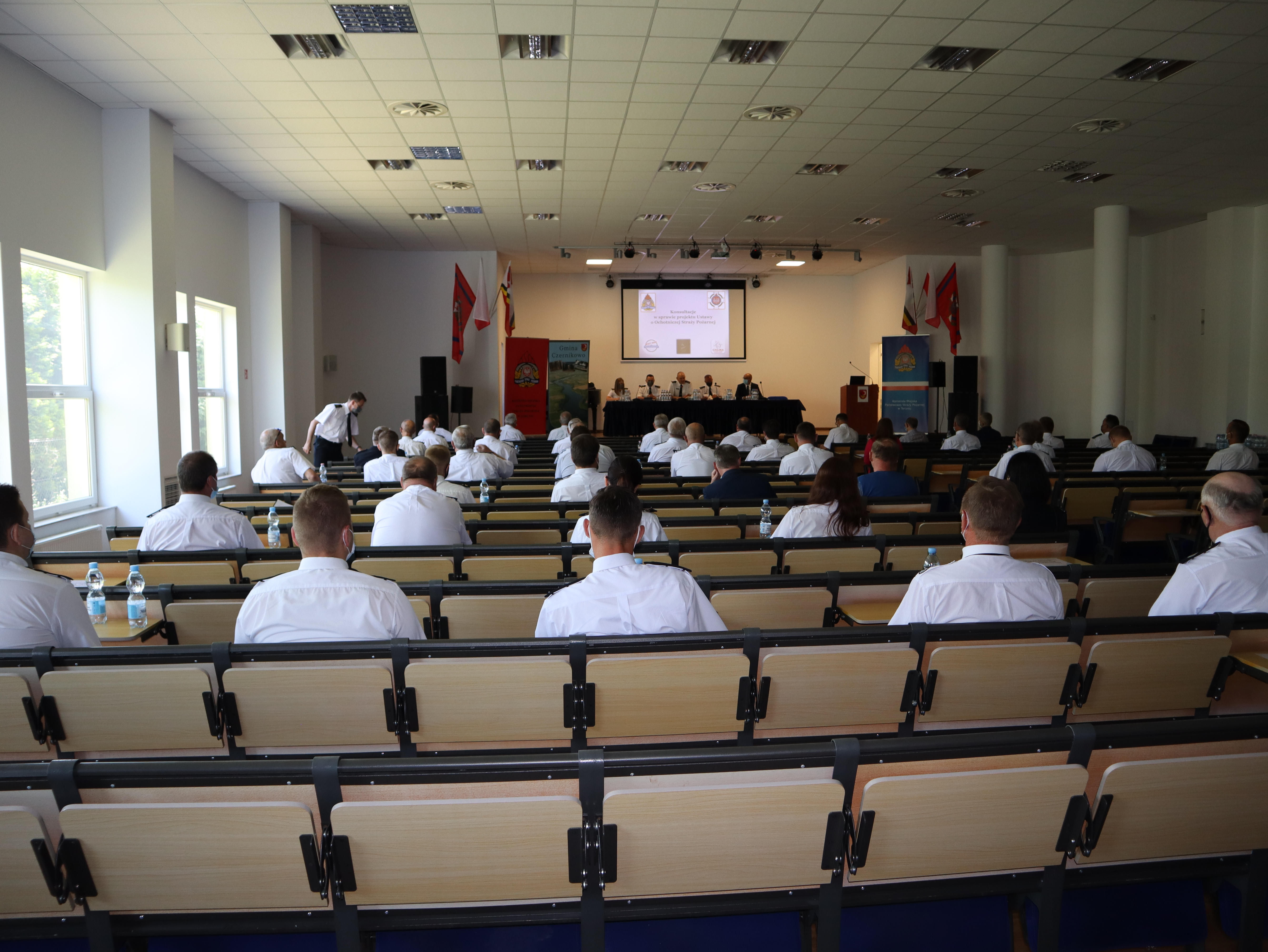 W pierwszym z nich udział wzięli m.in. st. bryg. Sławomir Herbowski i st. bryg. Robert Wiśniewski – Zastępcy Kujawsko-Pomorskiego Komendanta Wojewódzkiego, st. bryg. Sławomir Reszkowski – Komendant Miejski PSP w Toruniu wraz ze swoim Zastępcą st. bryg. Rafałem Świechowiczem oraz Tomasz Krasicki – Wójt Gminy Czernikowo, gospodarz spotkania.