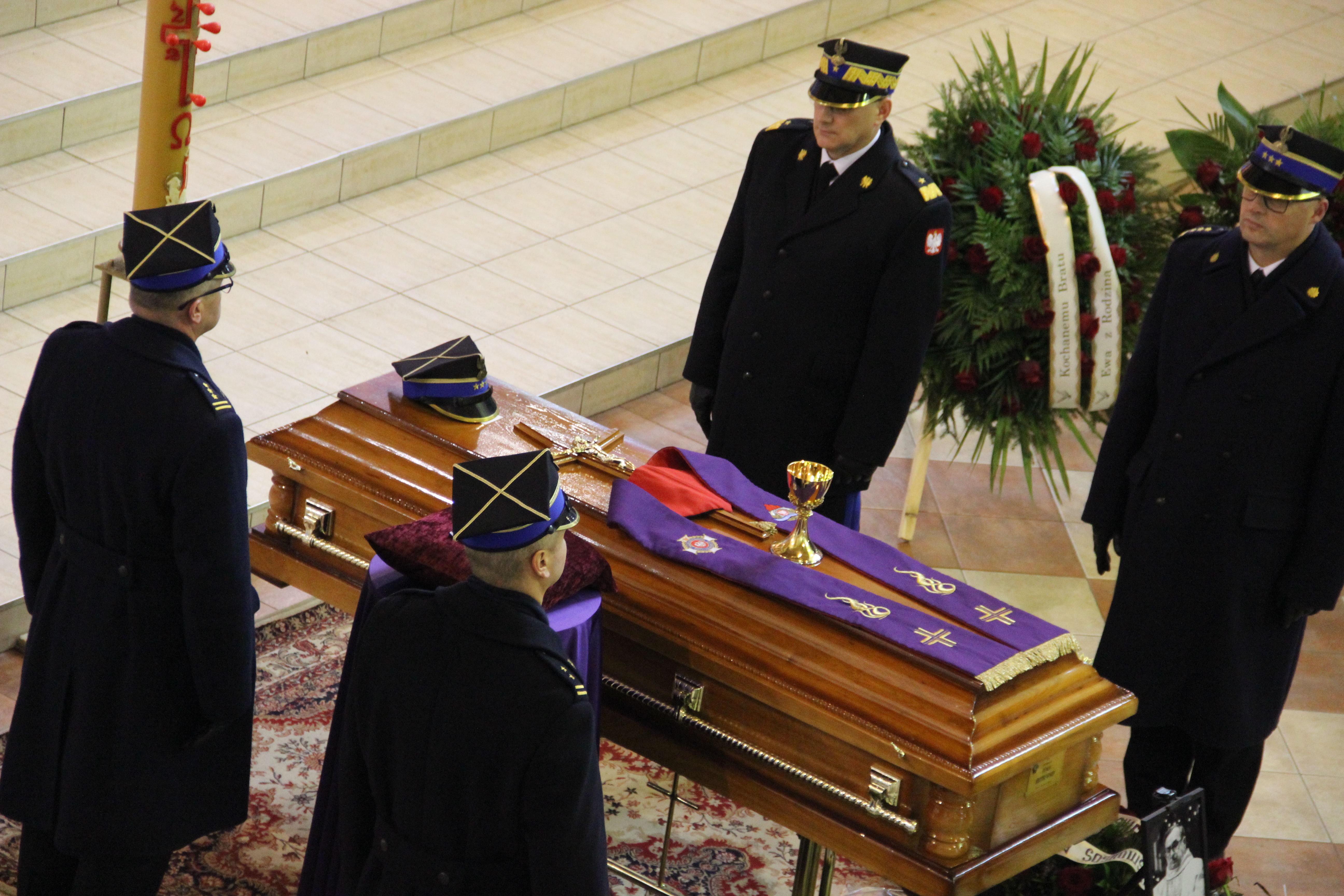 Msza żałobna odbyła się w Jego parafialnym Kościele pw. Św. Jadwigi Królowej w Inowrocławiu. Stamtąd orszak wyruszył do Gniewkowa na cmentarz, gdzie spoczął zmarły kapelan. Odprowadził go tłum złożony z niezliczonej rzeszy przyjaciół, współtowarzyszy kapłańskiej posługi, parafian, podopiecznych, strażaków, policjantów, żołnierzy, harcerzy, strażników miejskich, leśników, lekarzy i ratownków medycznych, nauczycieli i wielu innych.