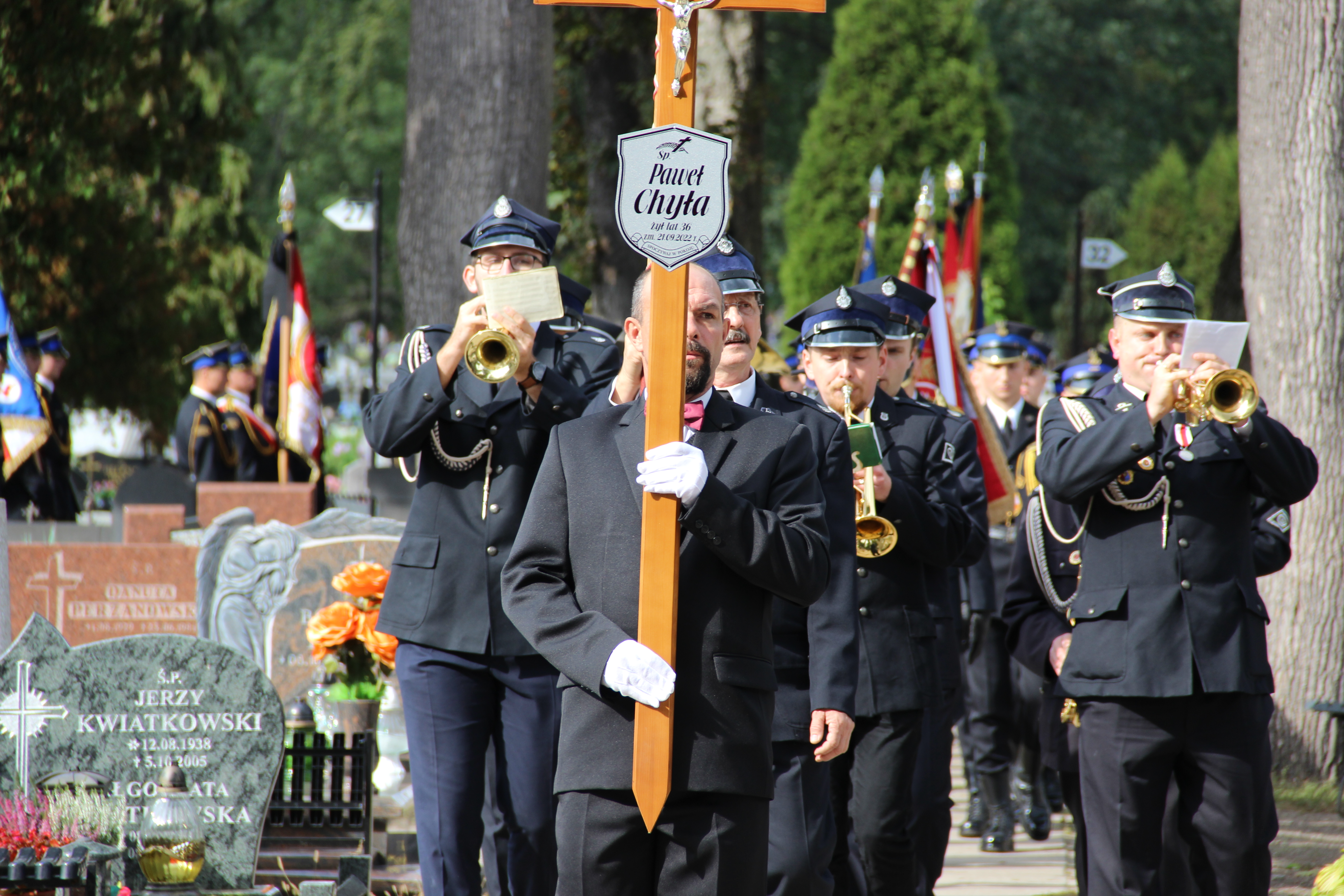 Rodzina, najbliżsi, przyjaciele, znajomi... 24 września br. żegnali starszego ogniomistrza Pawła Chyłę, zmarłego niespodziewanie trzy dni wcześniej, w czasie służby. Żegnały Go tłumy strażaków państwowej i ochotniczych straży pożarnych, kilkadziesiąt pocztów sztandarowych... W uroczystości wziął udział komendant główny PSP gen. brygadier Andrzej Bartkowiak, kujawsko-pomorski komendant wojewódzki nadbryg. Jacek Kaczmarek razem z zastępcami, zastępca komendanta pomorskich strażaków, komendanci powiatowi i miejscy PSP z regionu, Prezydent Miasta, Starosta i inni samorządowcy, grudziądzanie...