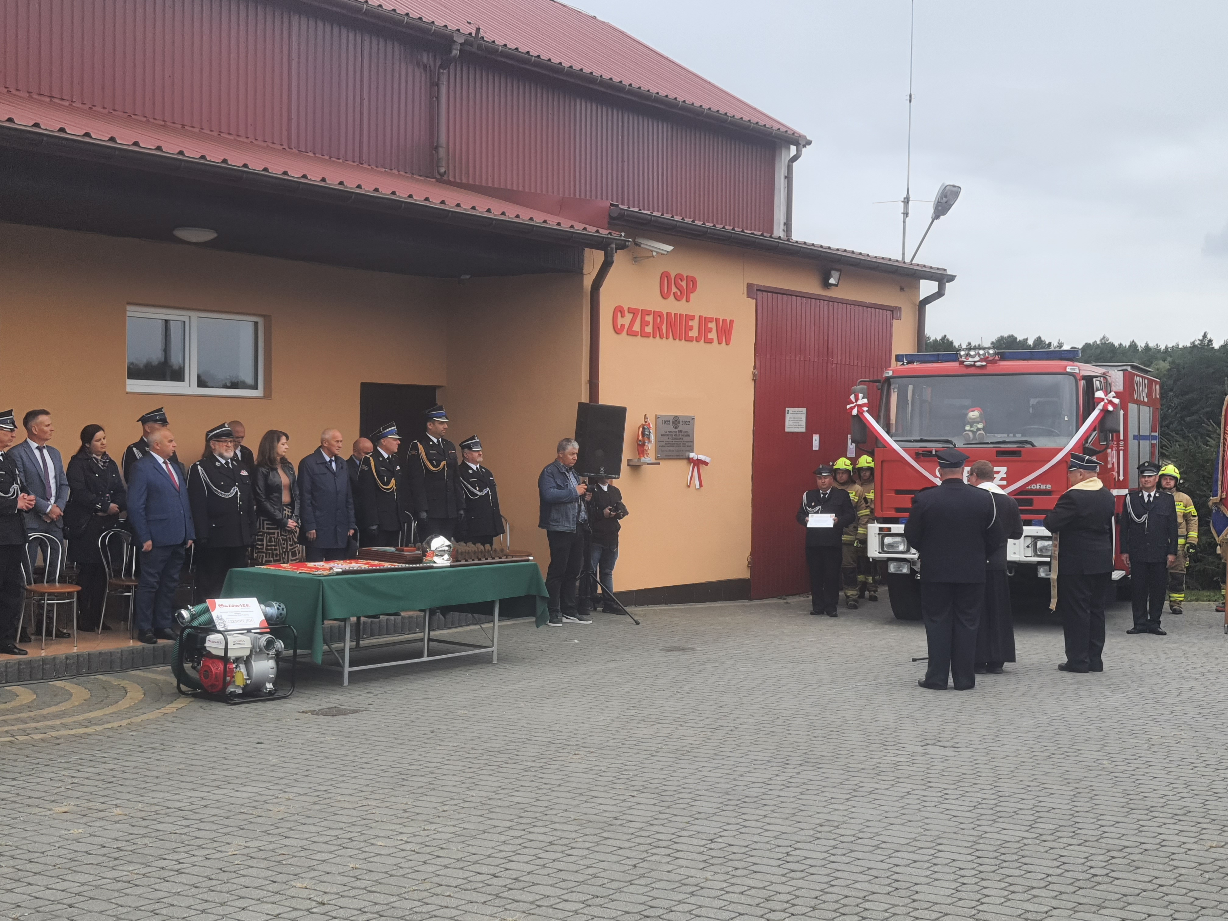 Podczas uroczystego apelu dokonano przekazania używanego średniego samochodu ratowniczo-gaśniczego GBA 2,4/16 marki Iveco, który został zakupiony ze środków własnych gminy Skórzec. Odsłonięto i poświęcono figurę św. Floriana, a także pamiątkową tablicę, w hołdzie założycielom jednostki OSP Czerniejew oraz strażakom biorącym udział w rozwoju organizacji i niesieniu pomocy bliźnim.