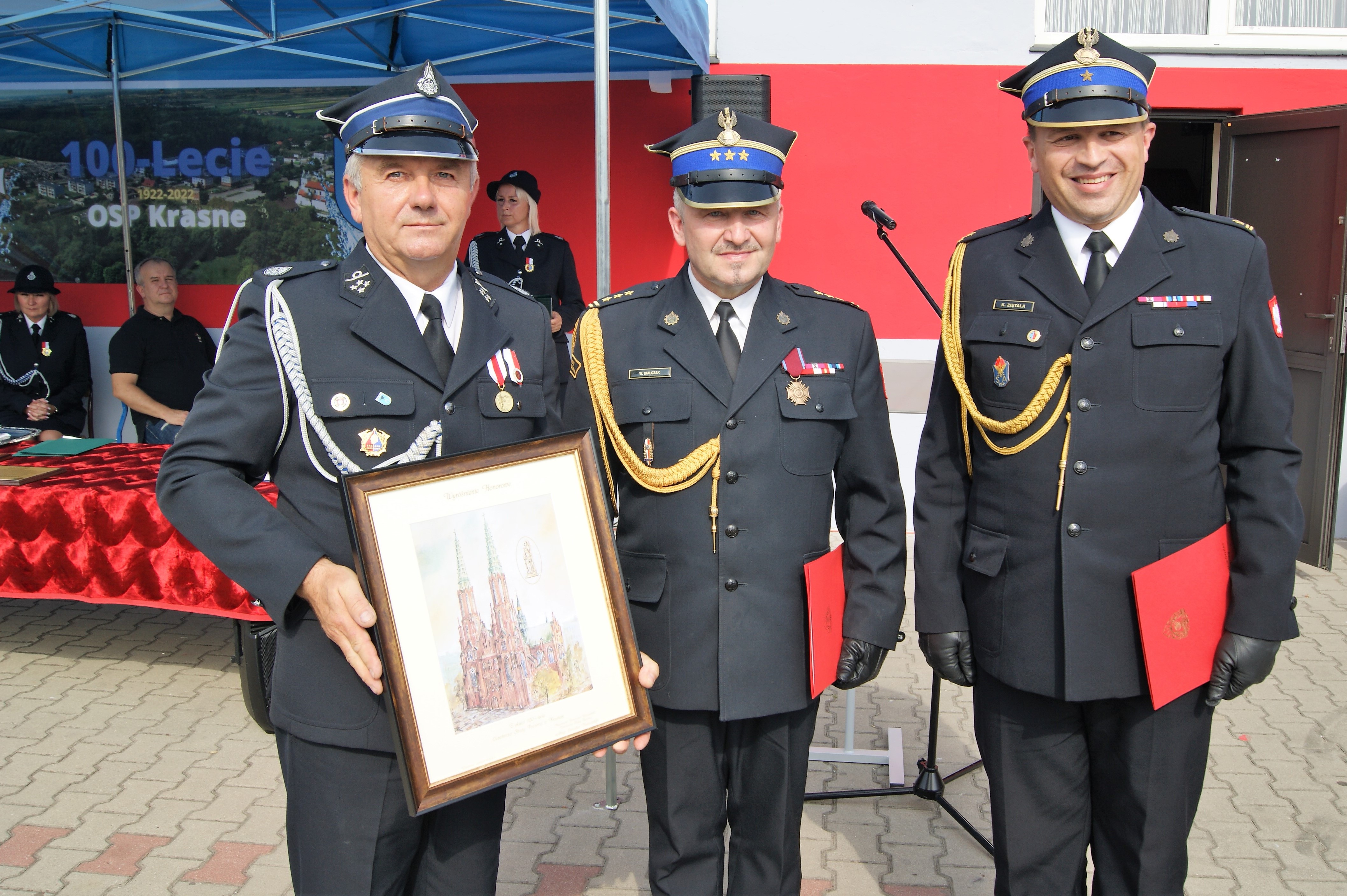 Ponadto przedstawiciel Mazowieckiego Komendanta Wojewódzkiego PSP mł. bryg. Karol Ziętala z okazji 100-lecia OSP w Krasnem na ręce Prezesa dh. Marka Balcerzaka wręczył pamiątkowy obraz przedstawiający Katedrę św. Michała Archanioła i św. Floriana Męczennika w Warszawie.