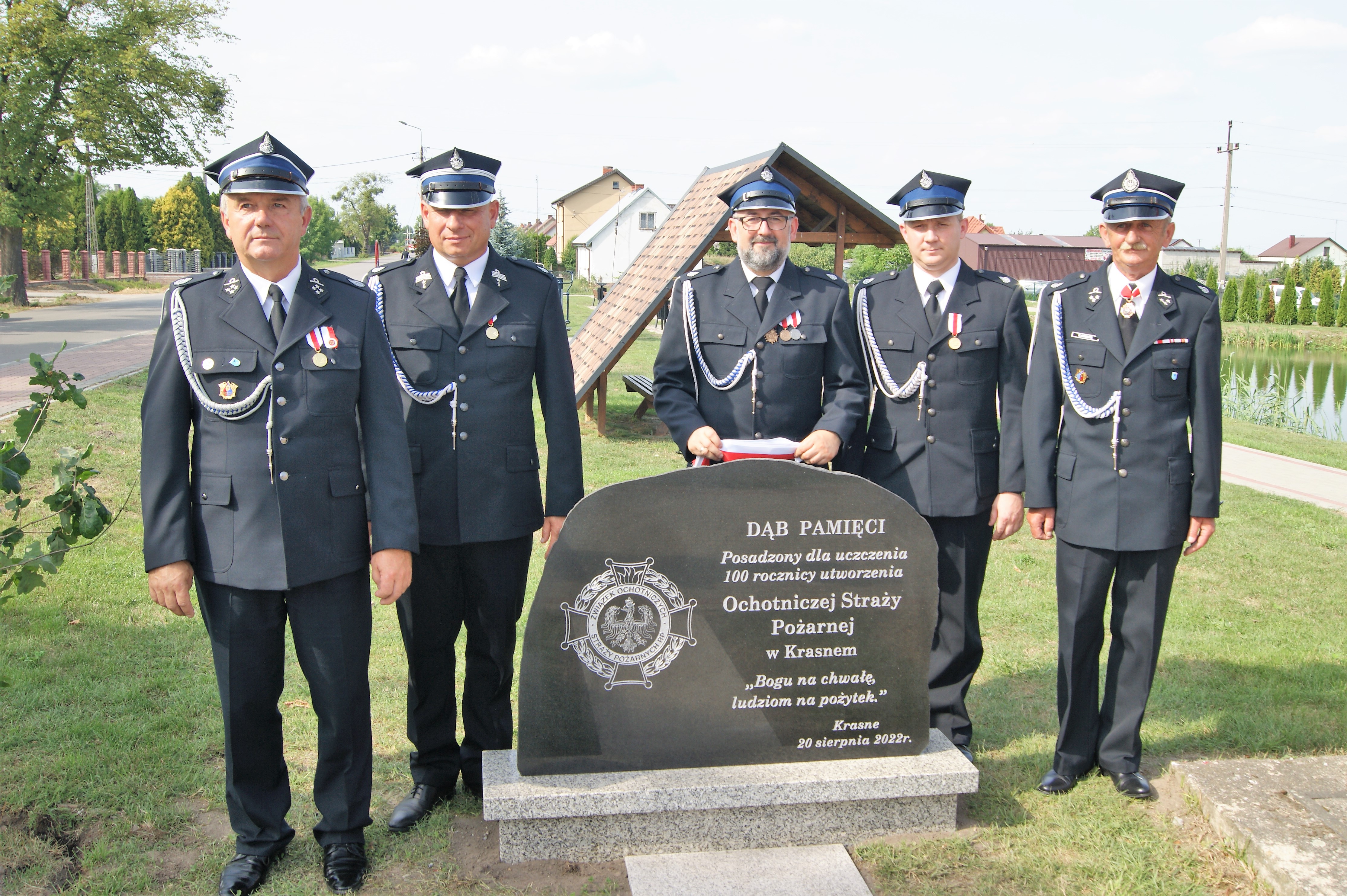Pamiątką jaką strażacy z OSP Krasne pozostawili następnym pokoleniom było posadzenie dębu i odsłonięcie tablicy pamiątkowej nieopodal strażnicy.