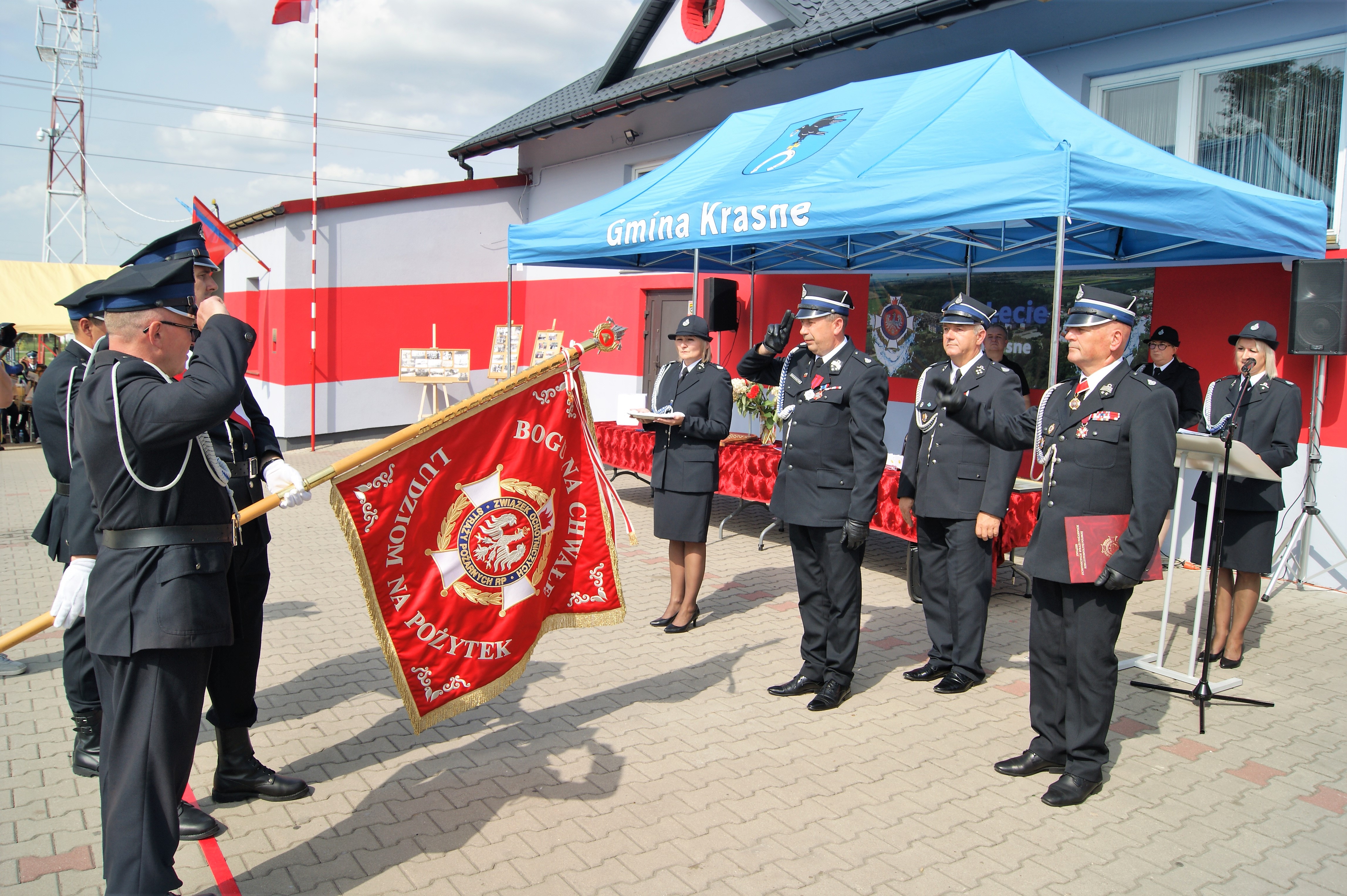 20 sierpnia 2022 roku miały miejsce obchody 100-lecia istnienia Jednostki Ochotniczej Straży Pożarnej w Krasnem (powiat przasnyski). Jubileusz rozpoczął się uroczystą Mszą Świętą w intencji strażaków sprawowaną w kościele Św. Jana Chrzciciela w Krasnem. Po jej zakończeniu nastąpił przemarsz pododdziałów i zaproszonych gości na plac przed strażnicę Ochotniczej Straży Pożarnej, gdzie odbył się uroczysty apel. Tam zgodnie z ceremoniałem pożarniczym Wiceprezes Zarządu Oddziału Wojewódzkiego ZOSP RP Województwa Mazowieckiego dh. Mirosław Augustyniak przyjął meldunek i dokonał przeglądu pododdziałów, następnie podniesiono flagę państwową na maszt oraz odegrano hymn narodowy.