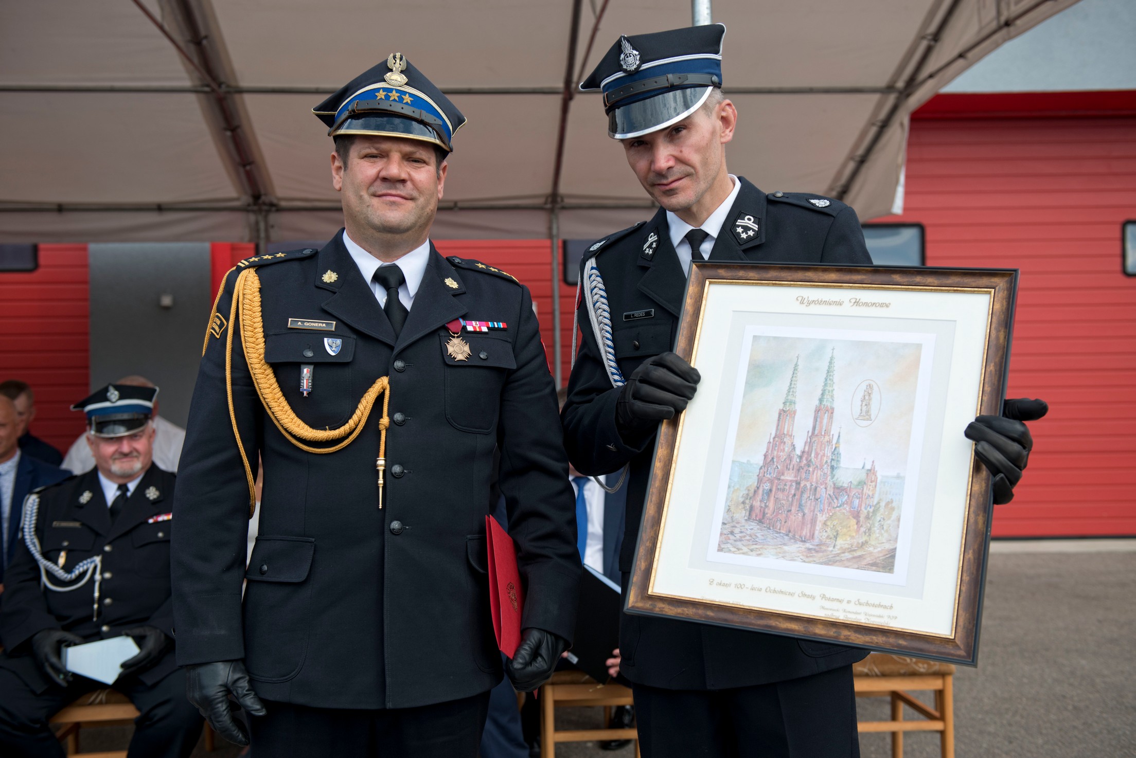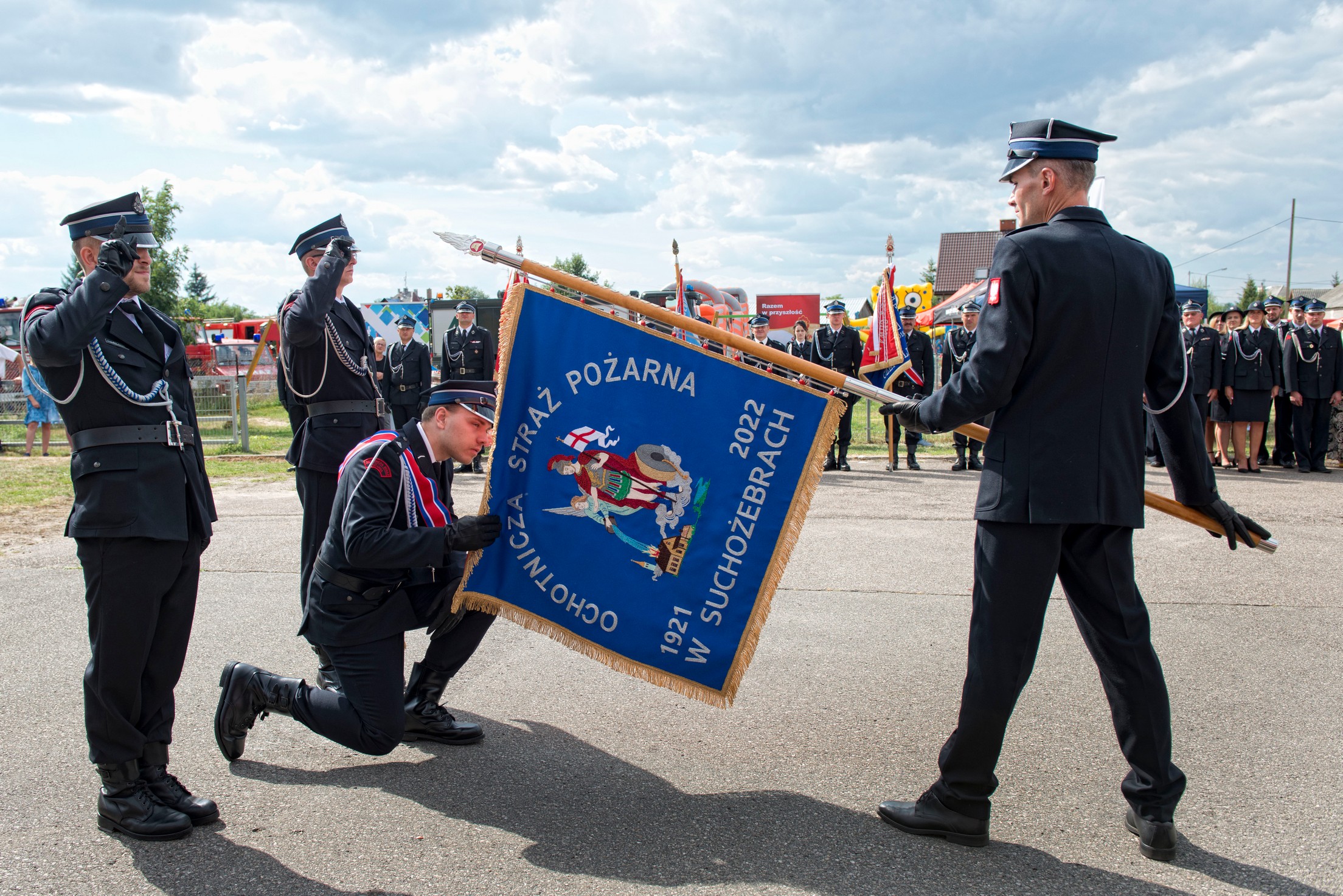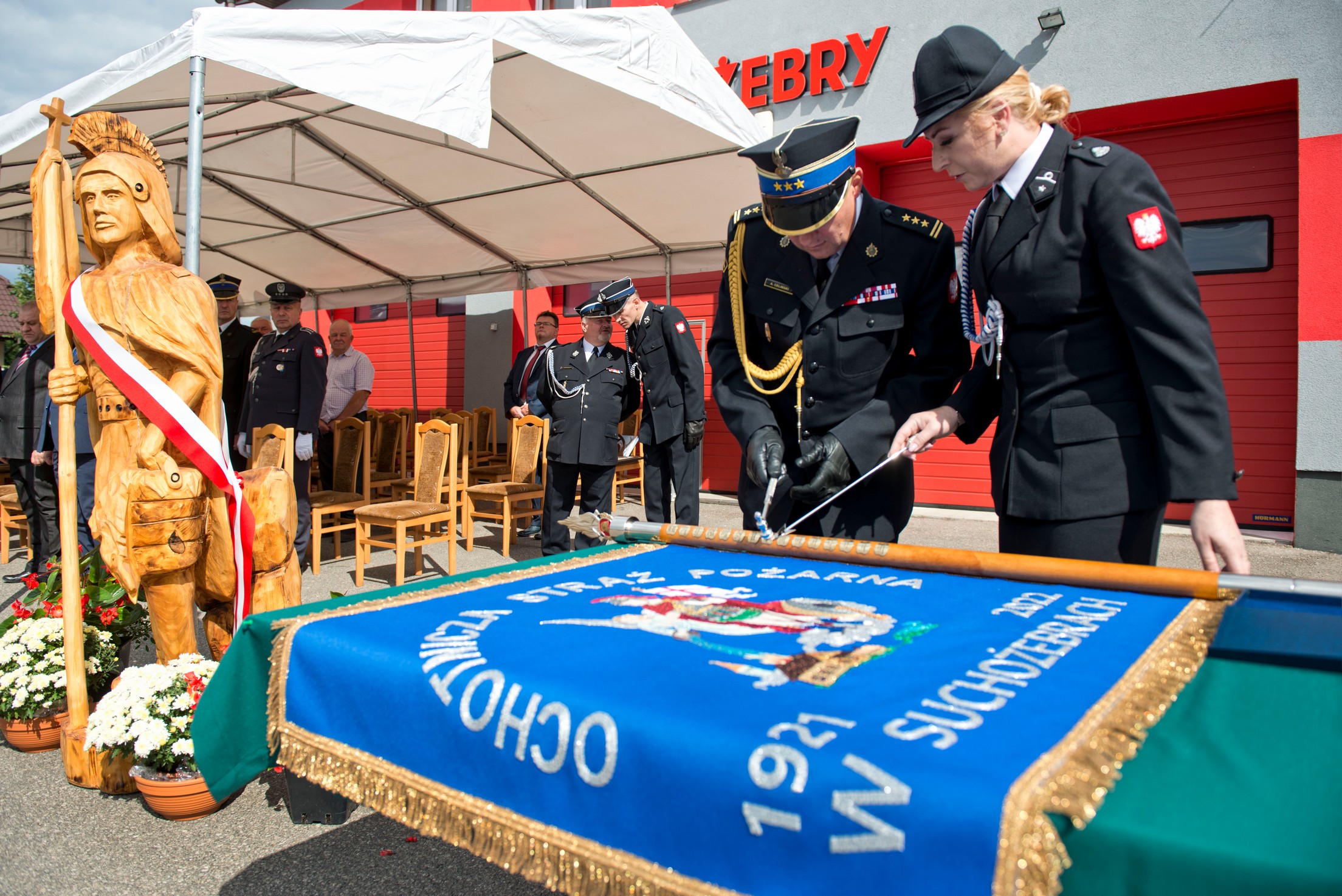 Ważnym momentem było przekazanie jednostce OSP w Suchożebrach nowego sztandaru, ufundowanego przez Państwa Monikę i Wiesława Sarnowskich, a następnie odznaczenie jednostki Złotym Znakiem Związku Ochotniczych Straży Pożarnych Rzeczypospolitej Polskiej za 100 lat działalności. Jest to najważniejsze odznaczenie Związku OSP RP.
