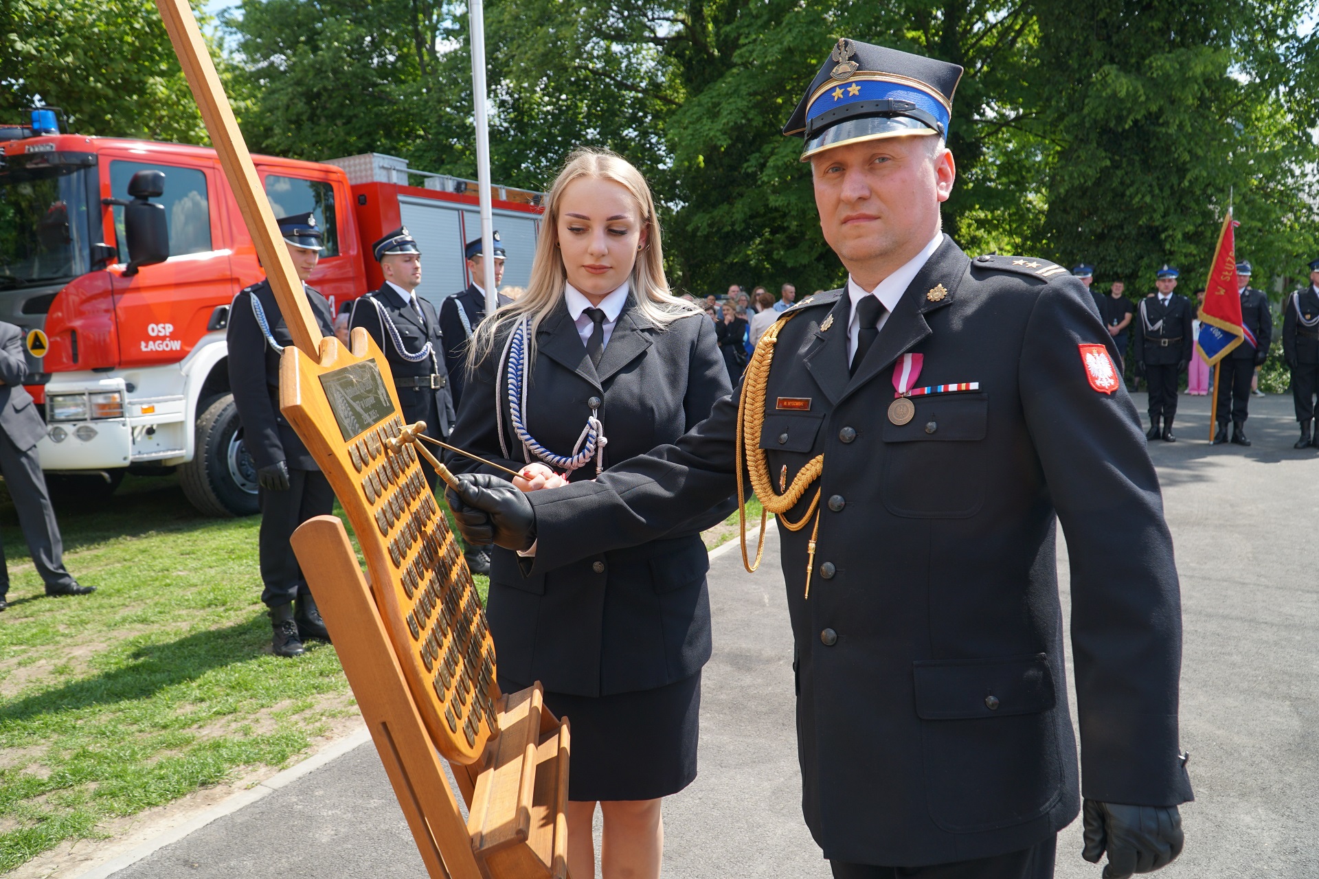 Po podniesieniu flagi państwowej i odegraniu hymnu, Wójt Gminy Przyłęk Pan Jerzy Kamionka przywitał wszystkich gości przybyłych na uroczystość. Następnie Prezes Ochotniczej Straży Pożarnej w Łagowie druh Ryszard Bienias przybliżył rys historyczny jednostki.