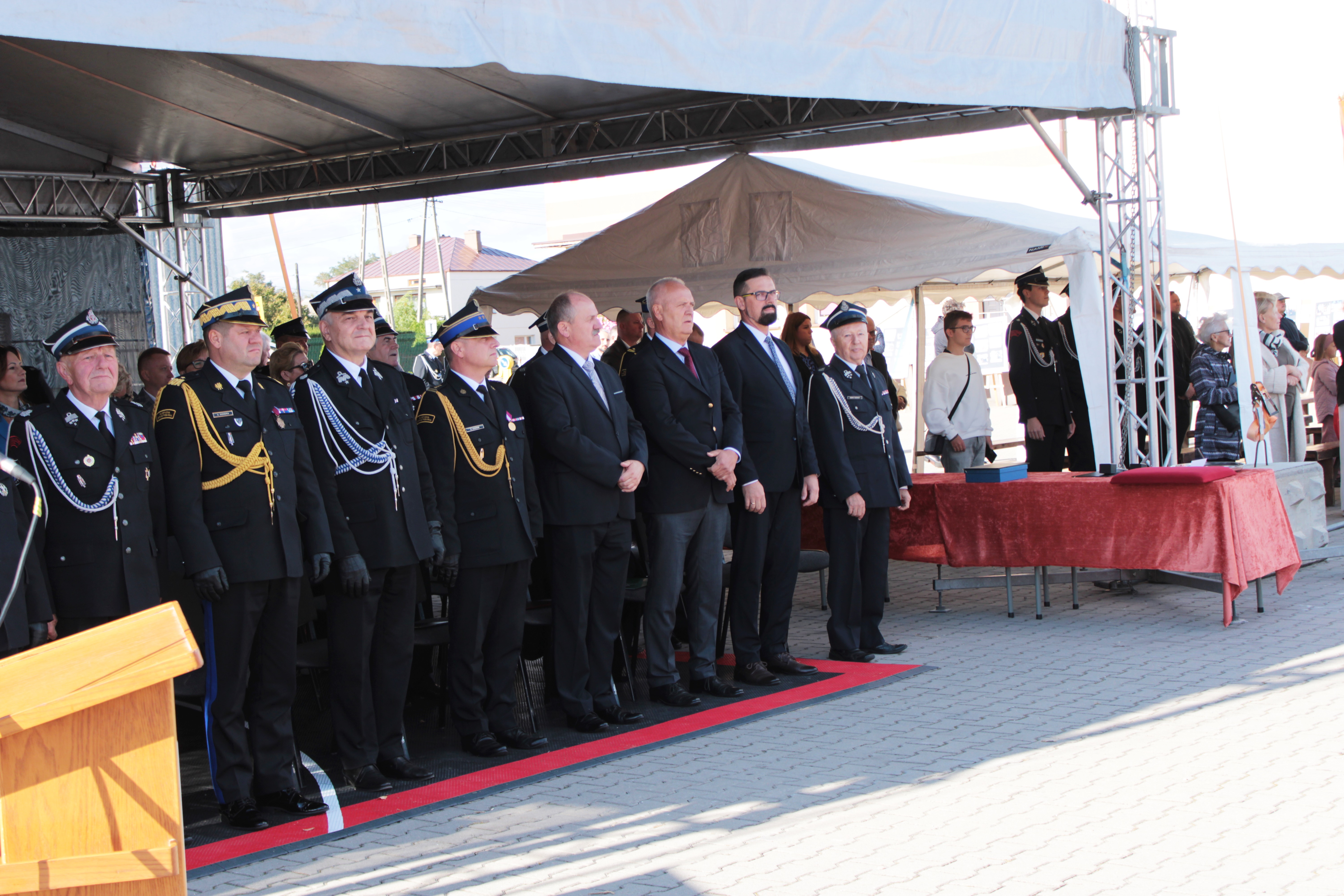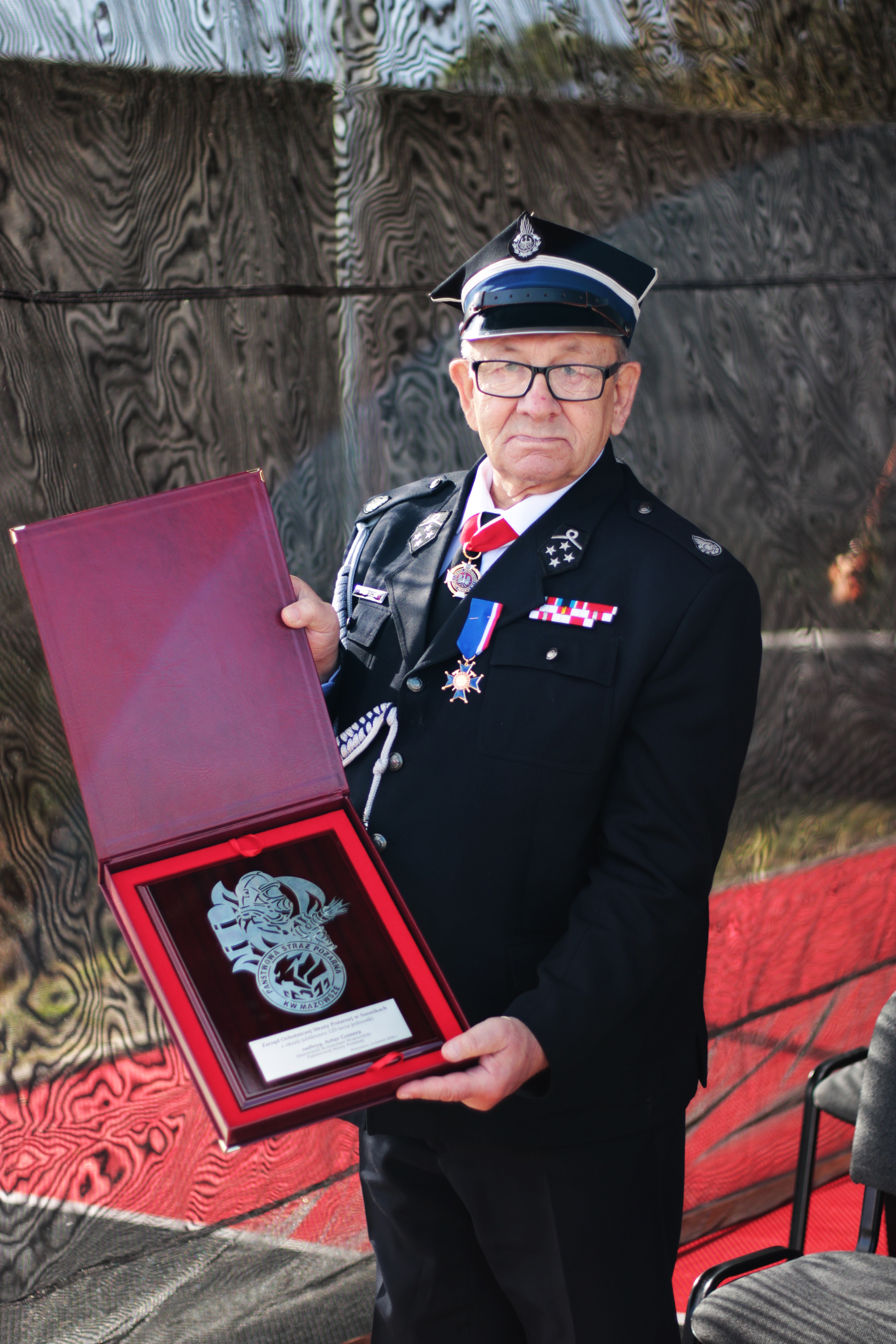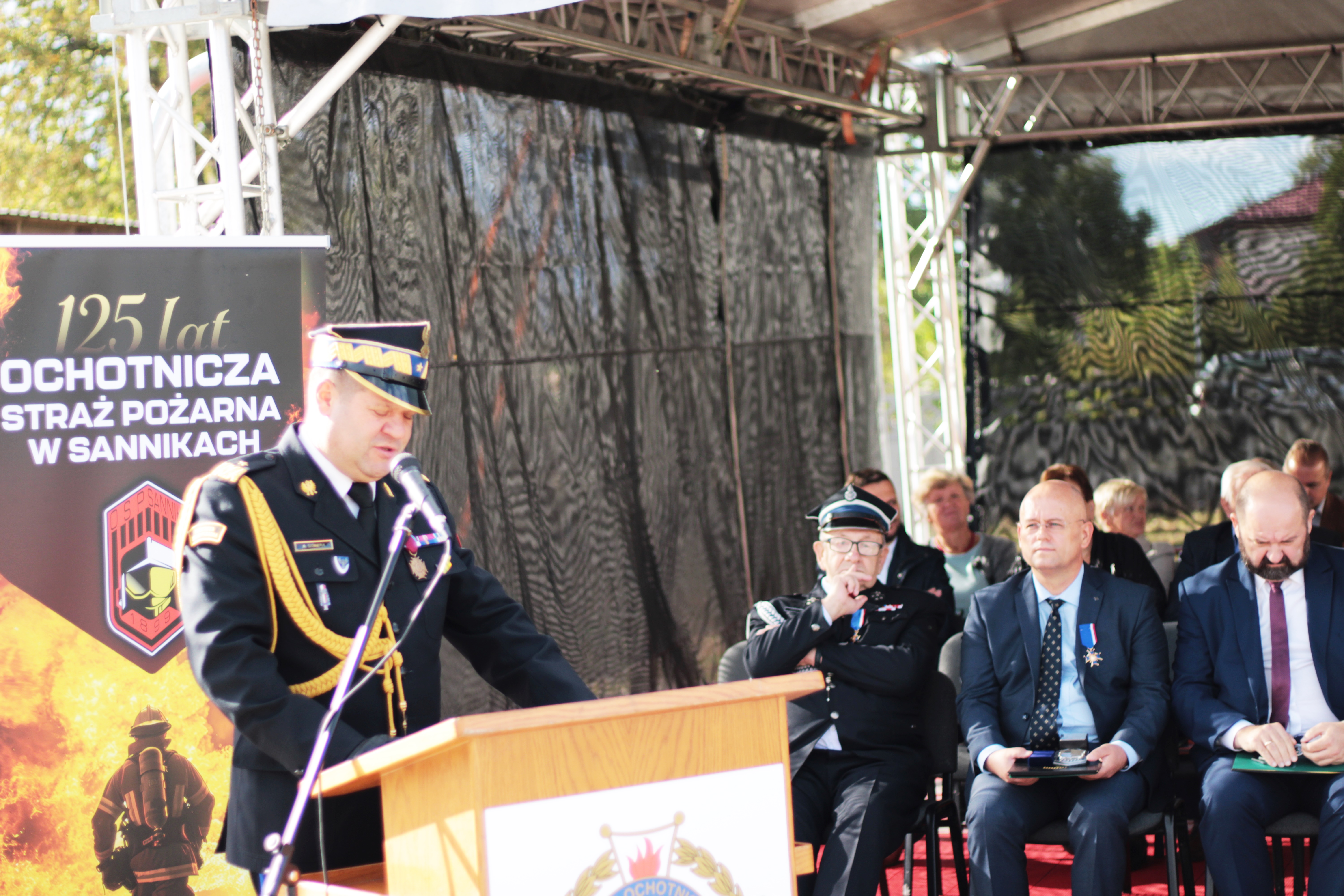 125-lecia powstania jednostki wręczył Prezesowi OSP w Sannikach pamiątkowy ryngraf. Podczas swojego wystąpienia podziękował druhnom i druhom, podkreślając ich zaangażowanie w codzienną, często niebezpieczną służbę, a także złożył serdeczne życzenia ich rodzinom.