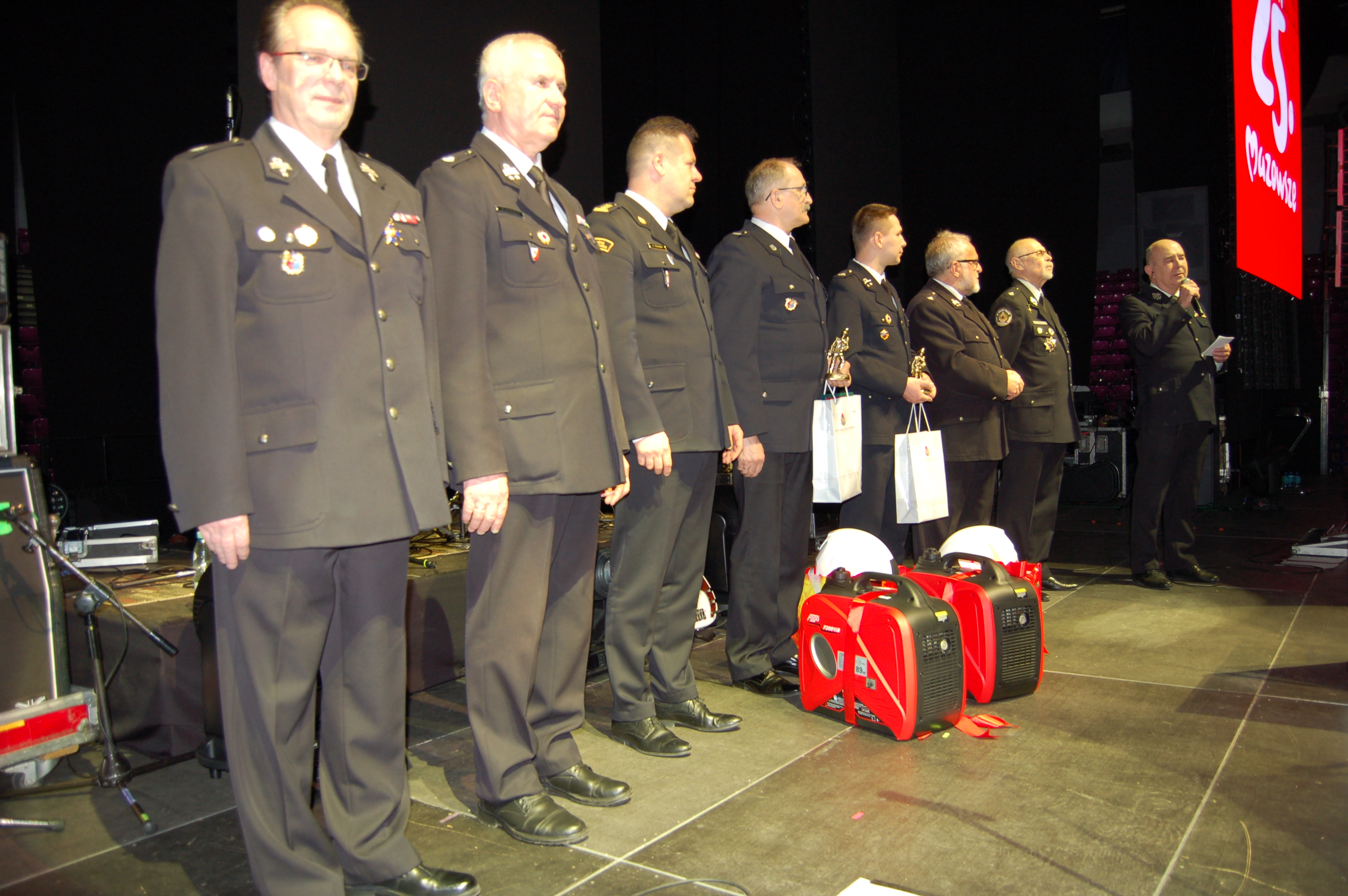 Nagrodę rzeczową – agregaty prądotwórcze oraz okolicznościowe statuetki i dyplomy wręczył Mazowiecki Komendant Wojewódzki Państwowej Straży Pożarnej st. bryg. Artur Gonera.