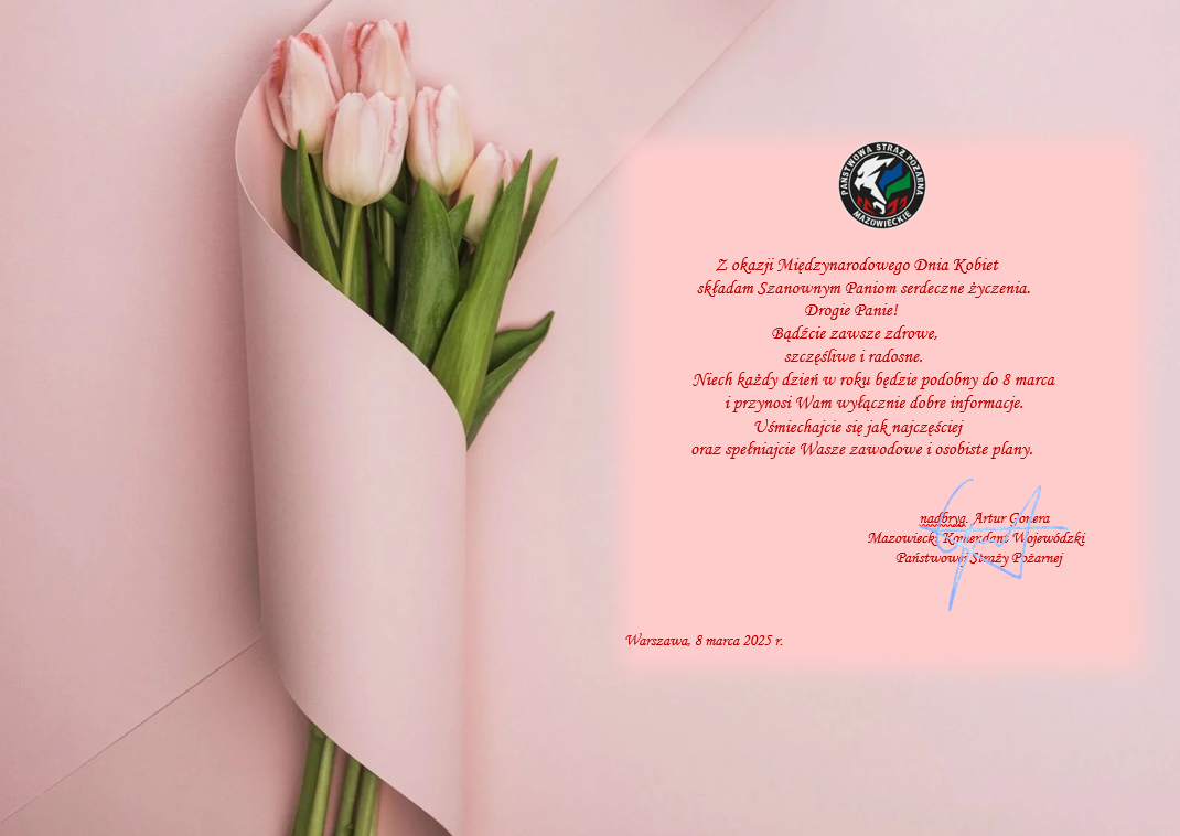8 marca - życzenia Mazowieckiego Komendanta Wojewódzkiego PSP z okazji Dnia Kobiet