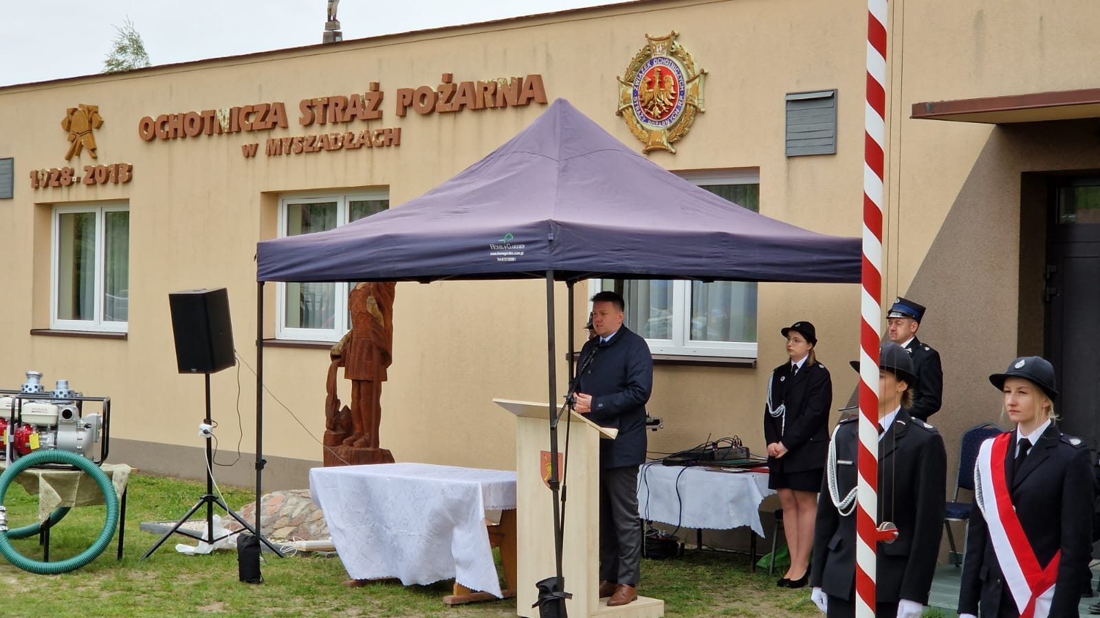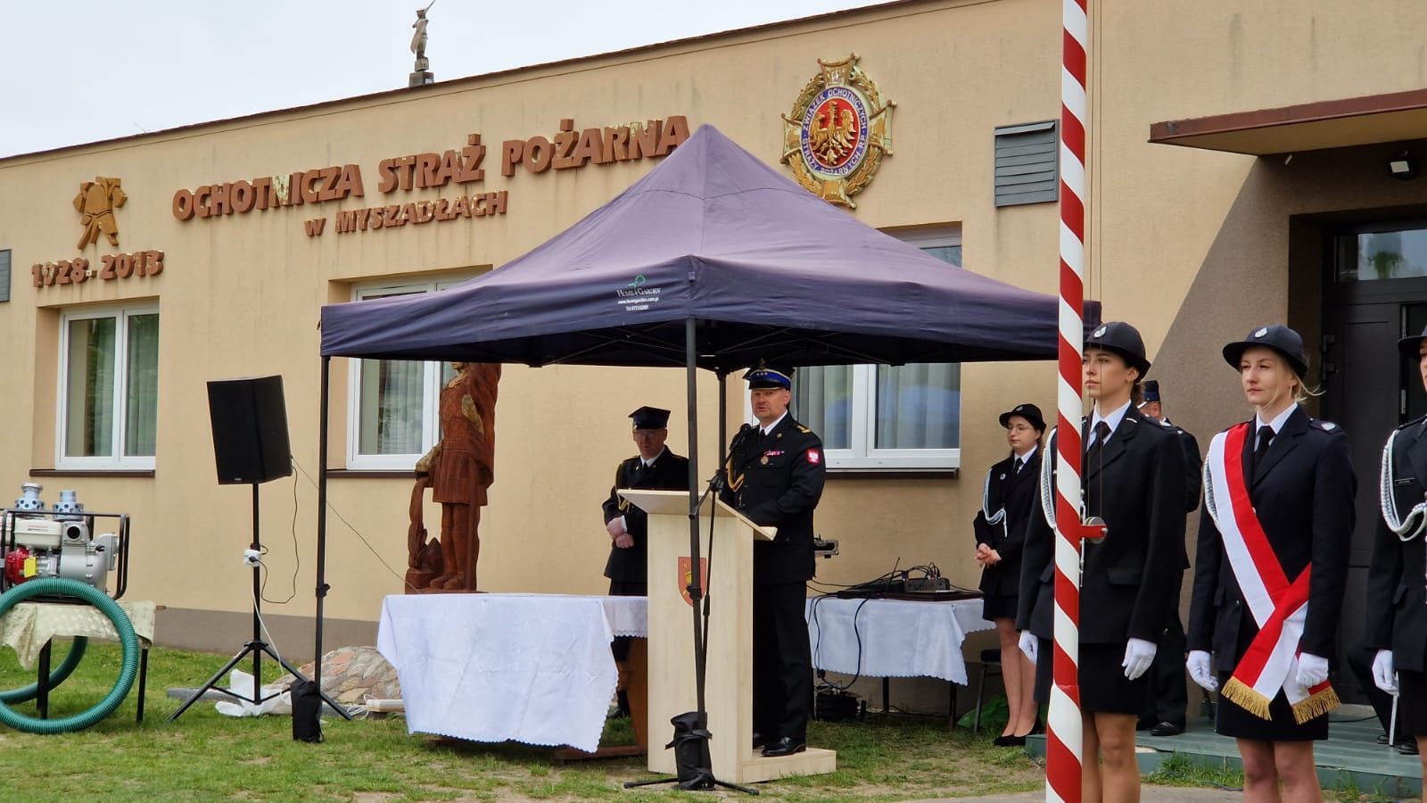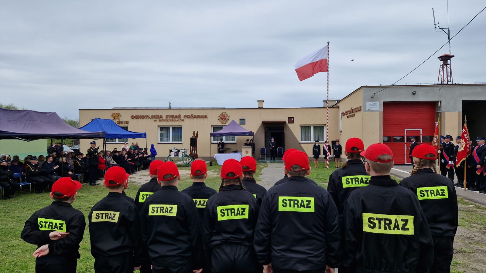 Po meldunku, podniesieniu flagi państwowej oraz odegraniu hymnu, nastąpiło uroczyste ślubowanie członków Młodzieżowej Drużyny Pożarniczej jednostki Ochotniczej Straży Pożarnej w Myszadłach. Łącznie ślubowanie złożyło 12 młodych członków MDP.