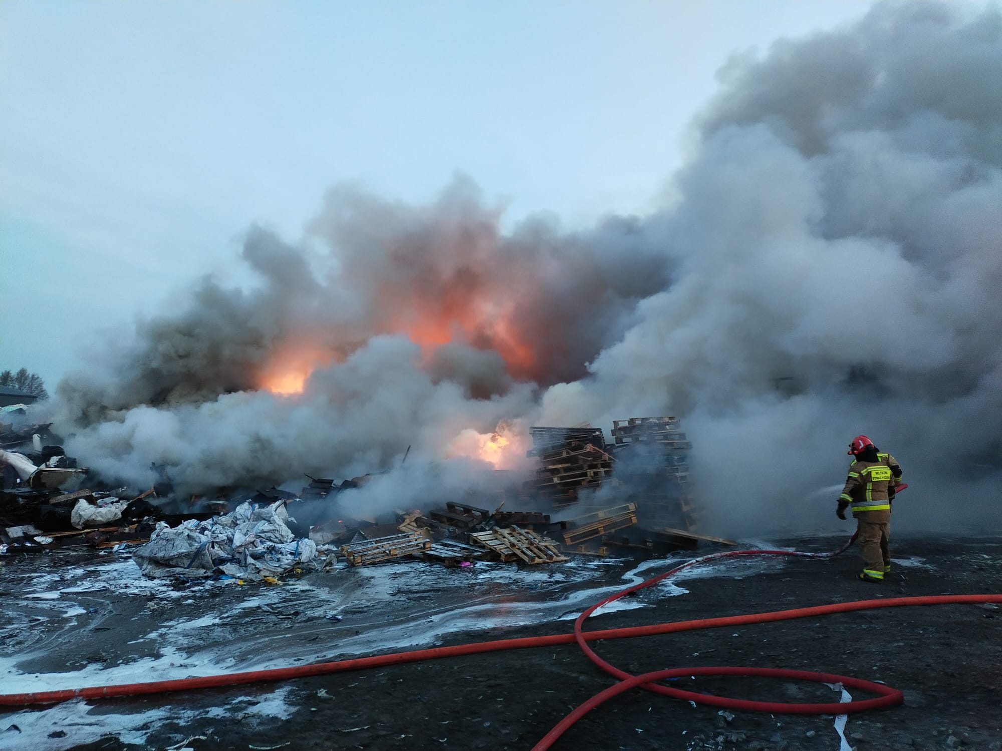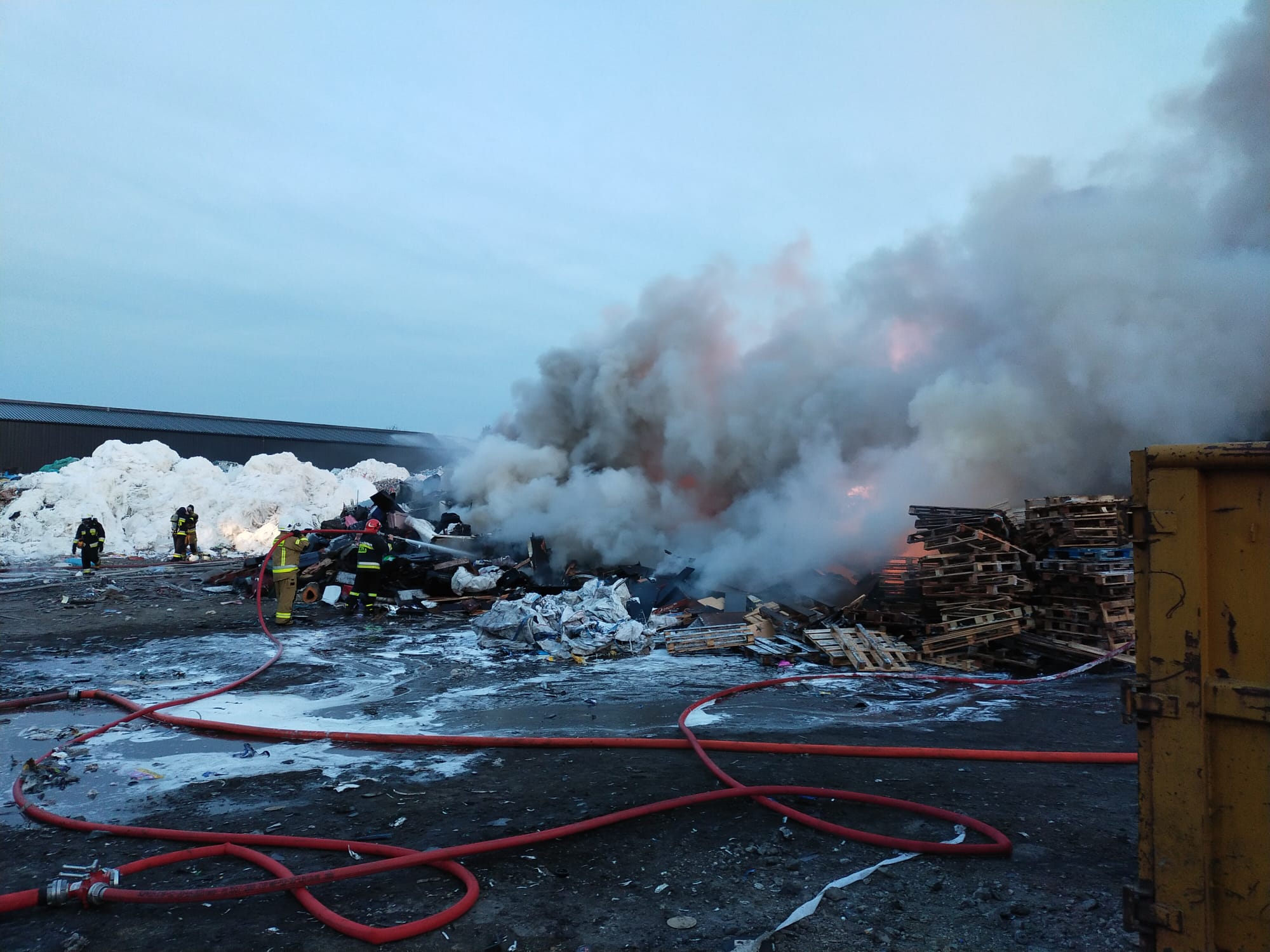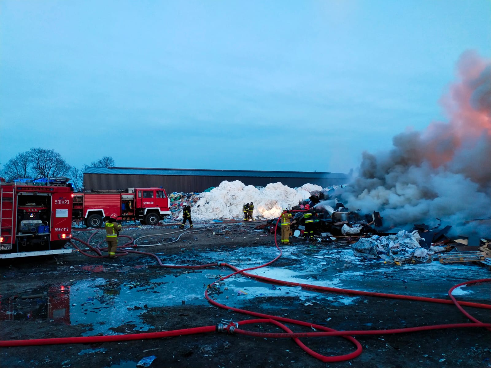 Bardzo duży pożar składowiska odpadów w miejscowości Nowy Modlin (powiat nowodworski)