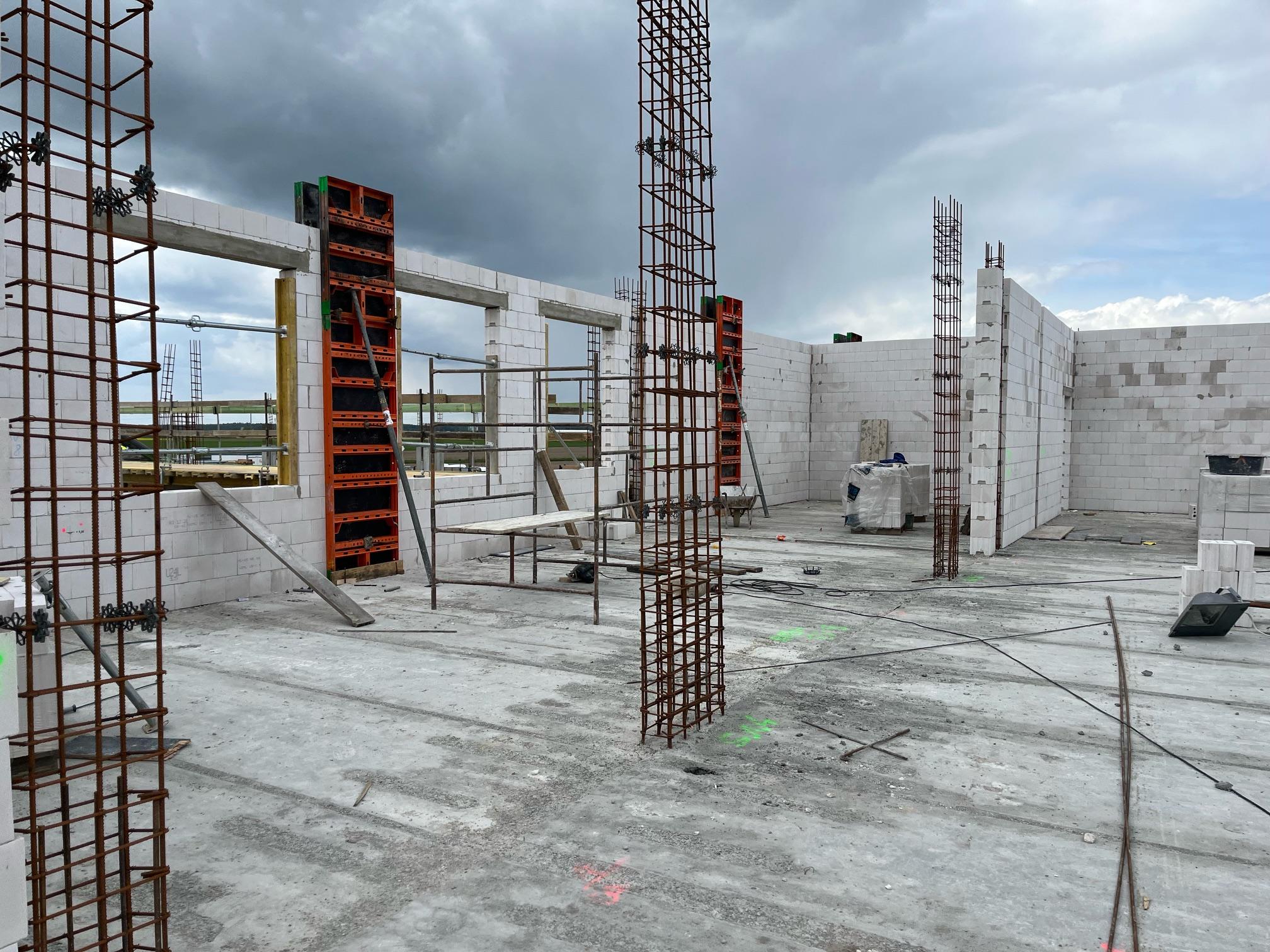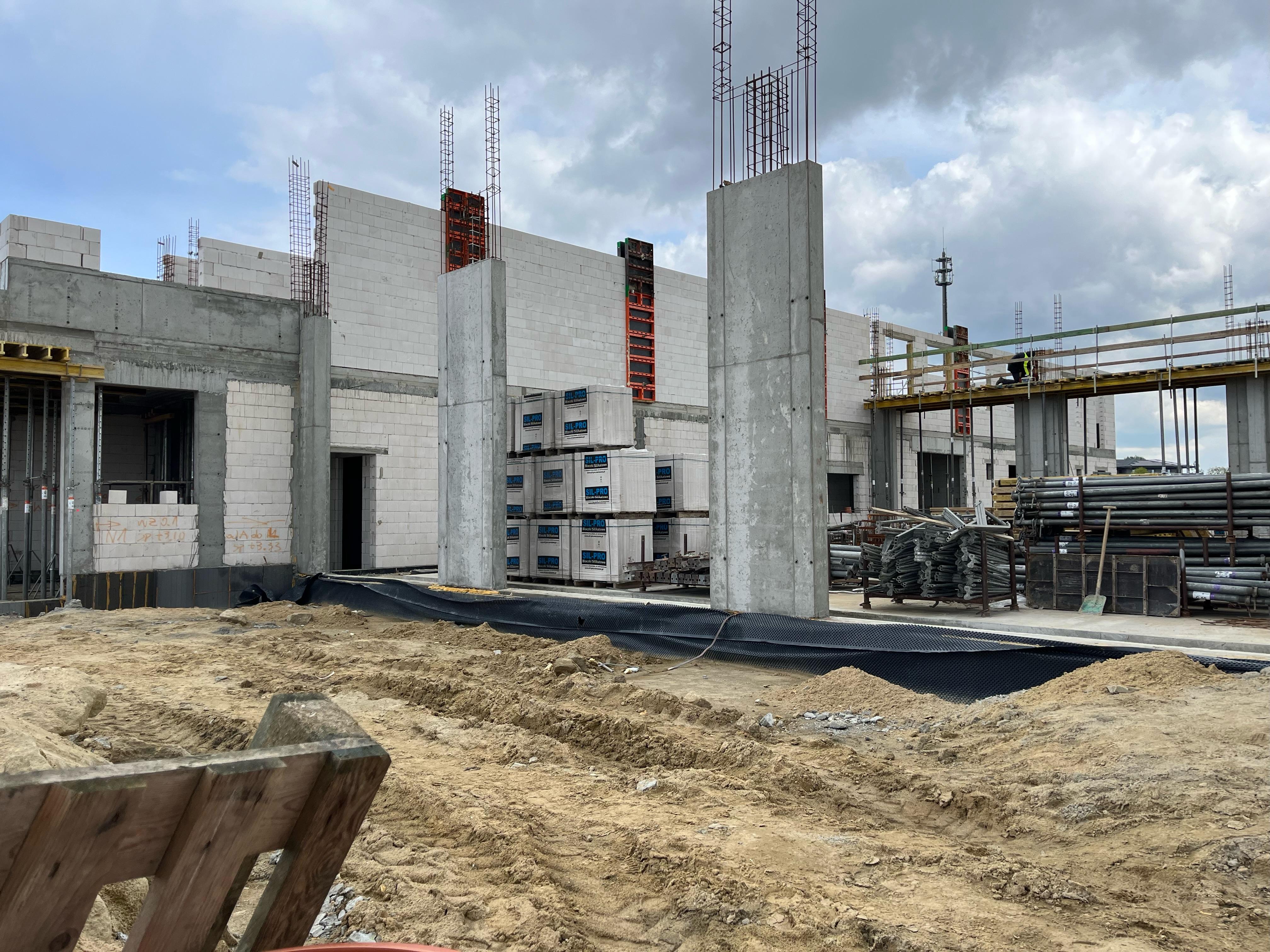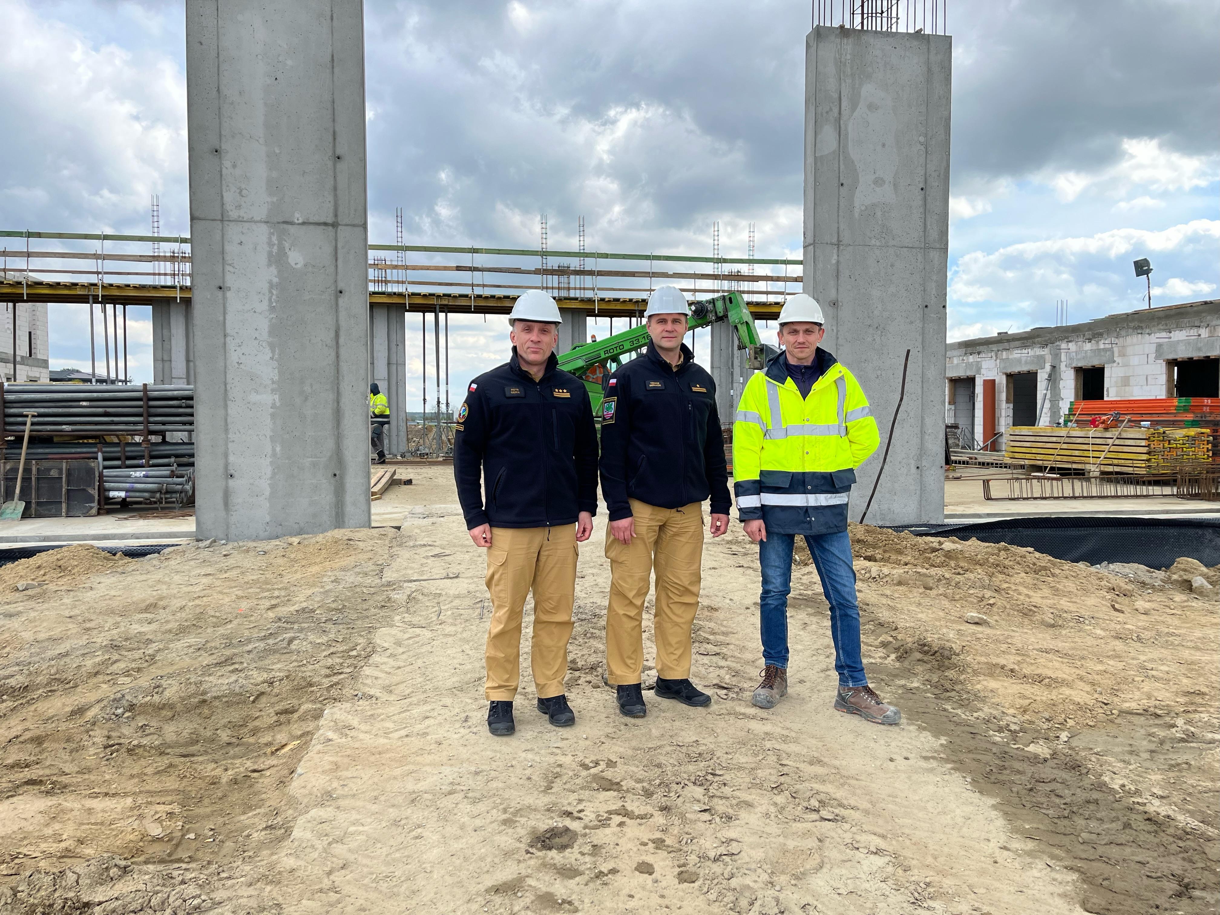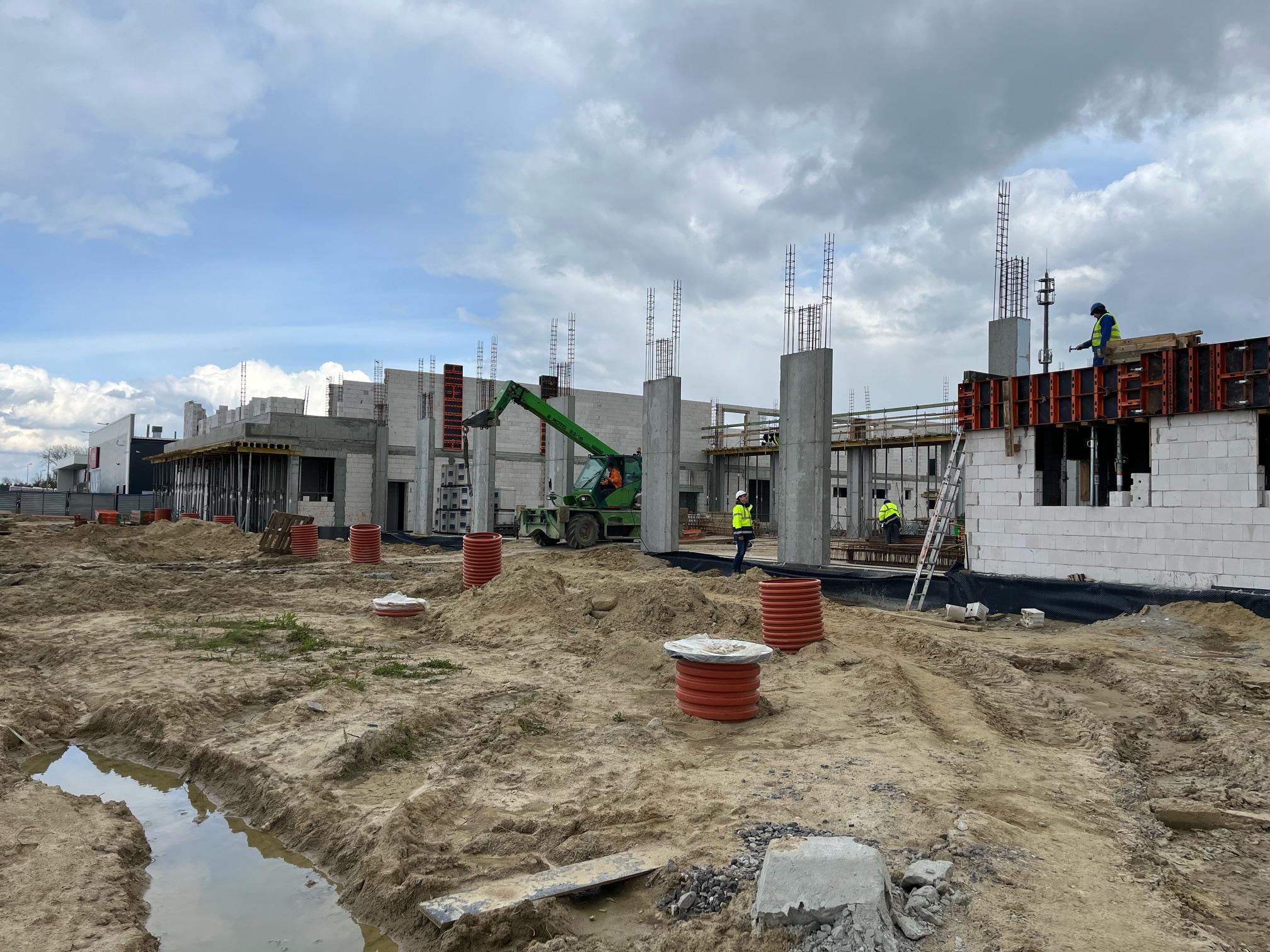 Roboty budowlane przebiegają zgodnie z harmonogramem, obecnie wykonywane są prace konstrukcyjne na poziomie parteru części garażowej oraz prace murarskie na I piętrze strażnicy. Planowany termin zakończenia I etapu inwestycji przewidziany jest na 2025 rok.