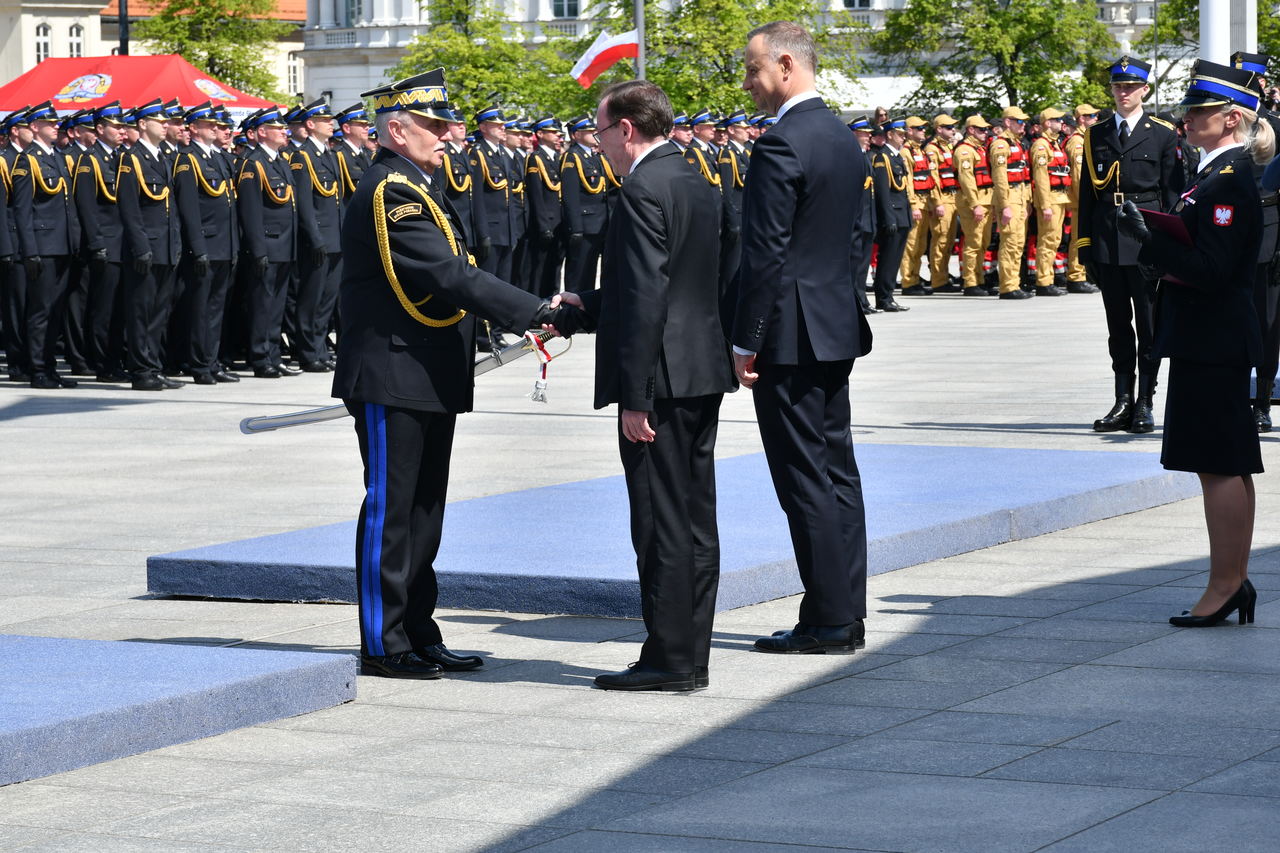 O godz. 12.00 na Placu Marszałka Józefa Piłsudskiego w Warszawie odbyły się główne uroczystości Centralnych Obchodów Dnia Strażaka, które rozpoczął meldunek złożony przez Komendanta Głównego PSP gen. brygadiera Andrzeja Bartkowiaka Prezydentowi RP Andrzejowi Dudzie.