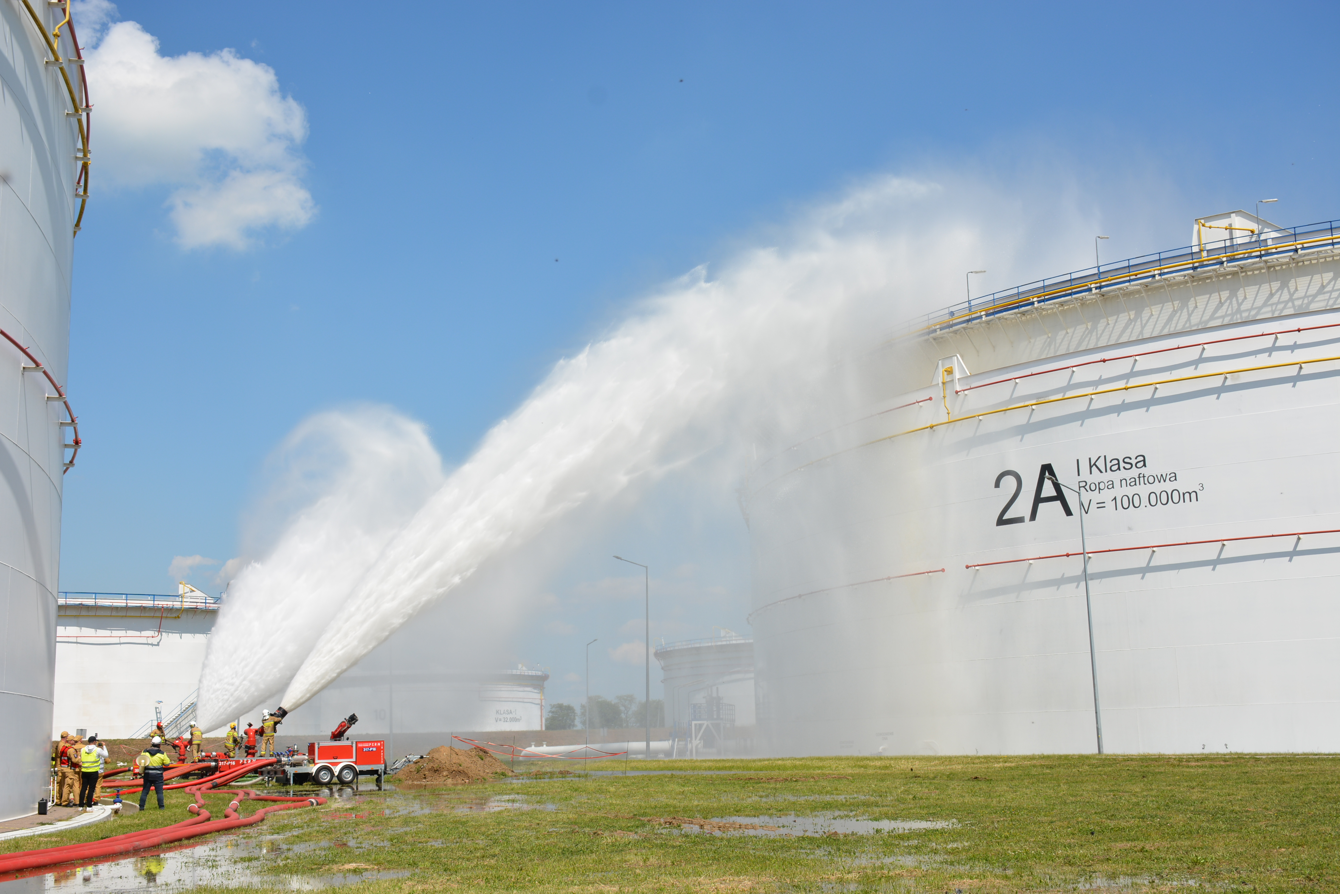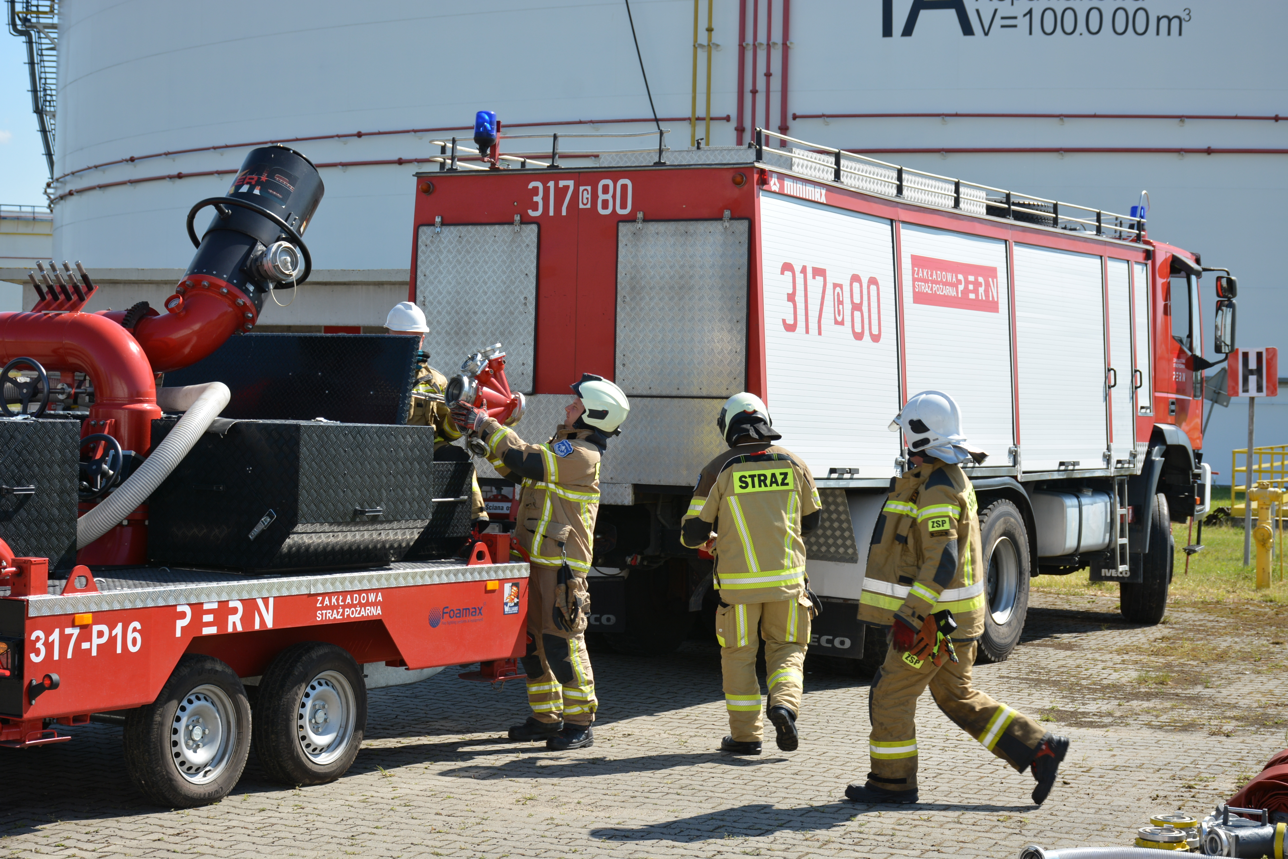 - Głównym celem ćwiczeń było sprawdzenie funkcjonowania wewnętrznego i zewnętrznego planu operacyjno-ratowniczego dla założonego scenariusza, a także czasu dojazdu sił i środków, możliwości zasilania i wykorzystania przez PERN działa gaśniczego. Pożary zbiorników w przemyśle naftowym, na szczęście, nie zdarzają się często. Każda taka symulacja zdarzeń jest dla wszystkich służb ratowniczych okazją do tego, by sprawdzić w praktyce taktykę gaszenia z wykorzystaniem m.in. bezfluorowych środków pianotwórczych, a także doskonalić umiejętność organizowania i kierowania działaniami z zakresu zwalczania pożarów, udzielania pierwszej pomocy i ewakuacji – podkreśla Roman Jaroszewski, kierownik Działu Bezpieczeństwa Pożarowego.