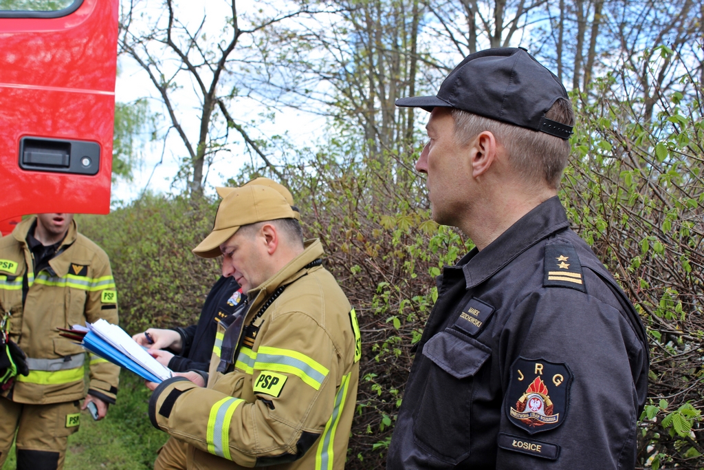 Ćwiczenia śledził Komendant Powiatowy PSP w Łosicach st. bryg. Mariusz Popławski, a także przedstawiciele służby leśnej z terenu nadleśnictwa Sarnaki.