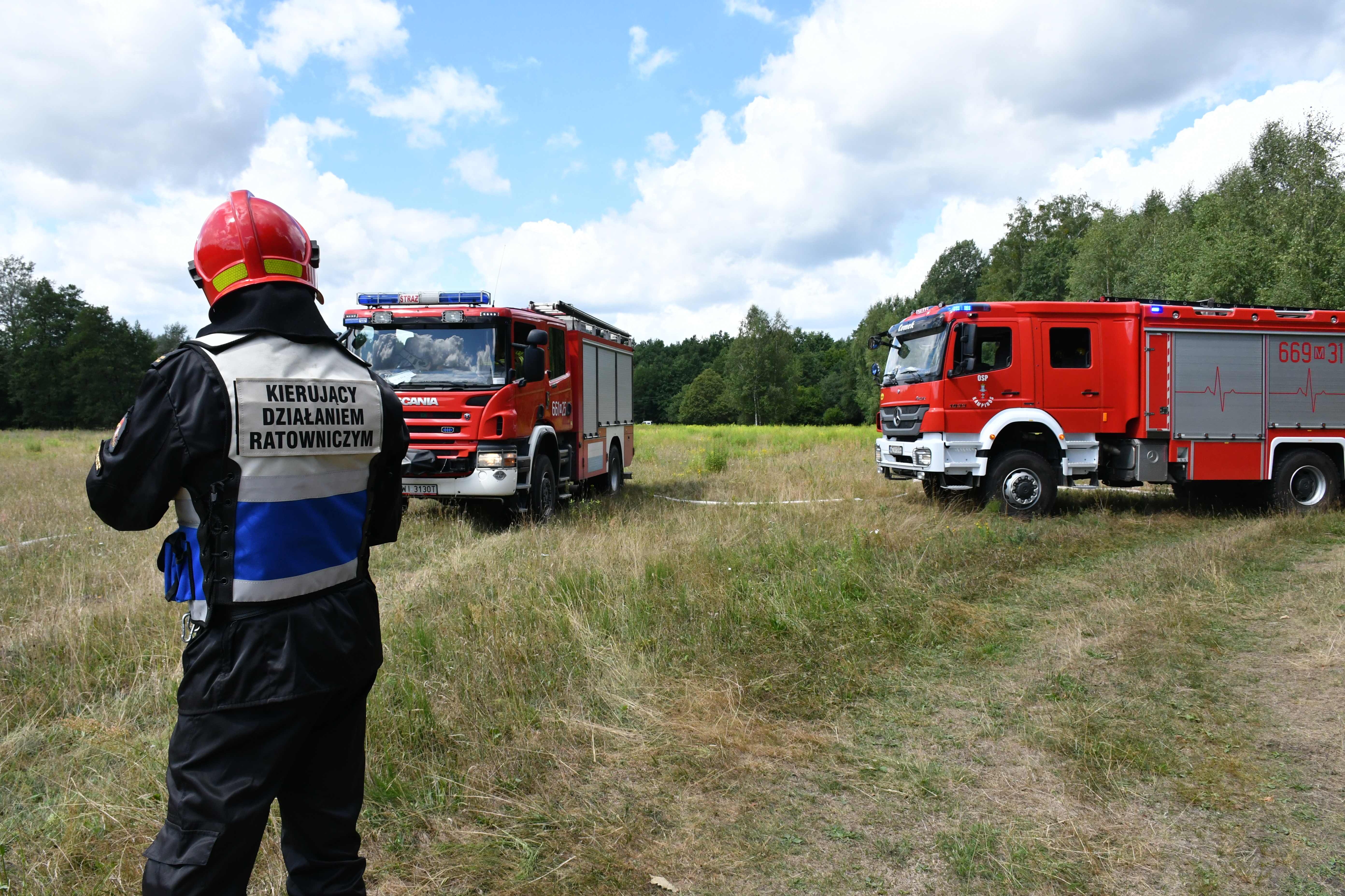 Scenariusz ćwiczeń przewidywał zapalenie się poszycia leśnego w Kampinoskim Parku Narodowym, gdzie wiejący z kierunku północnego wiatr powoduje dalszy rozwój pożaru w kierunku południowym i obejmuje kolejne obszary lasu. Front pożaru rozciąga się na odcinku około 40 m i stale się poszerza. Dodatkowo zagrożone są zabudowania. Na miejsce dysponowane siły i środki I rzutu, których dowódca po przybyciu na miejsce i przeprowadzonym rozpoznaniu stwierdza, iż potrzebne będą dodatkowe siły i środki. W trakcie prowadzonych działań KDR otrzymuje informację od leśniczego, że w kolejnym miejscu doszło do zapalenia się ściółki, przez co zagrożone są drewniane obiekty skansenu budownictwa puszczańskiego.