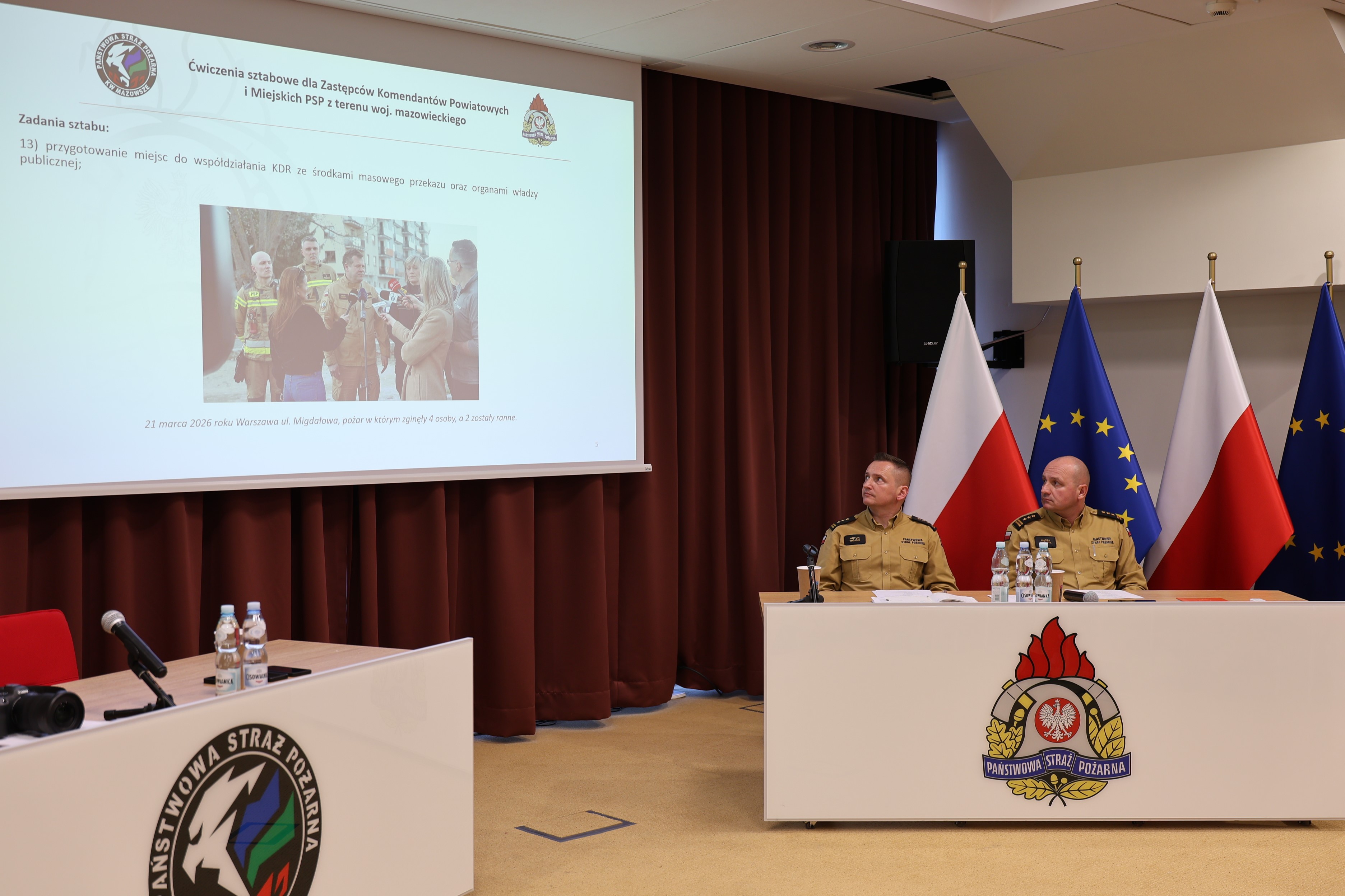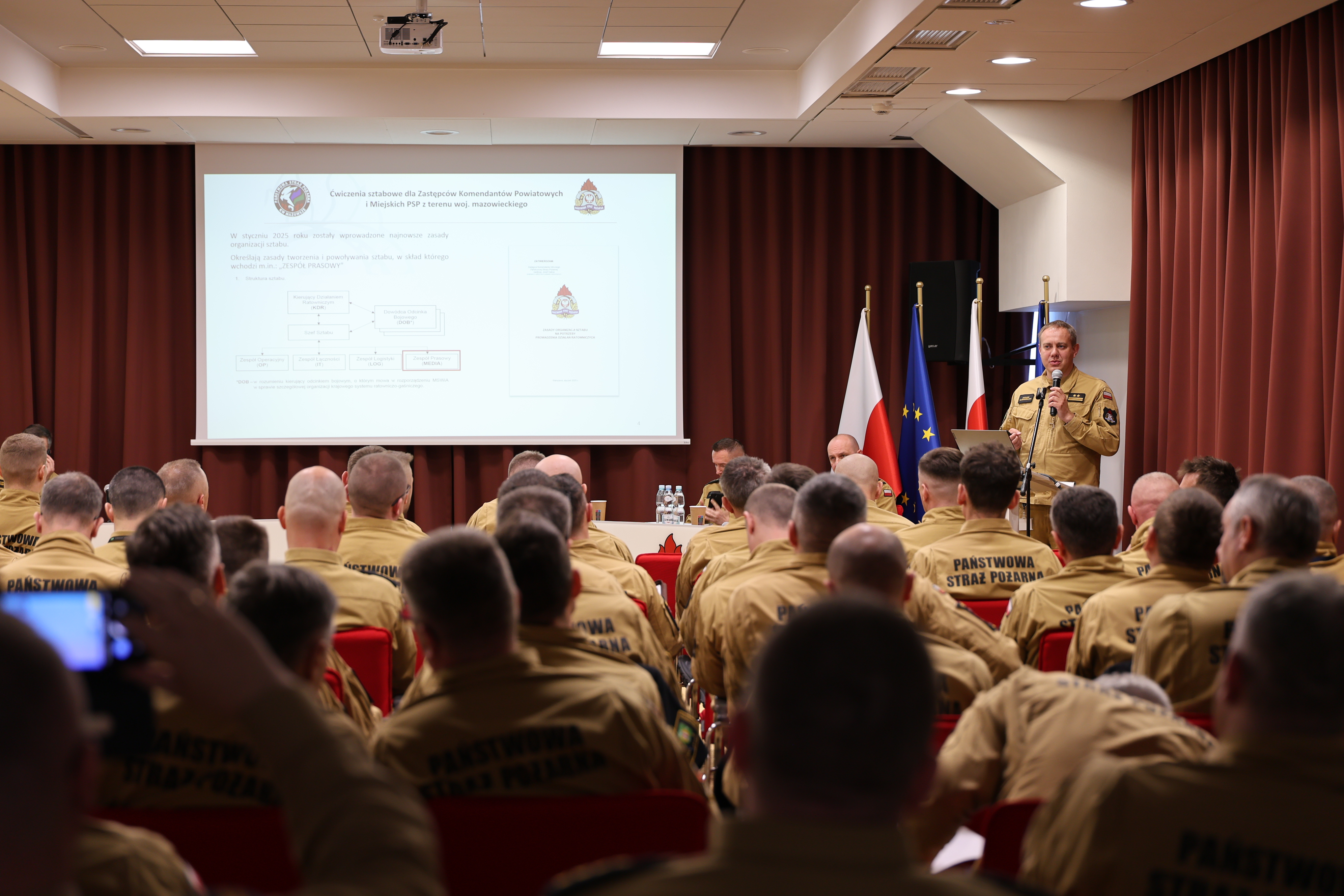 28 kwietnia 2026 r. Zastępcy Komendantów Powiatowych i Miejskich PSP woj. mazowieckiego uczestniczyli w ćwiczeniach sztabowych przygotowanych przez Wydział Operacyjny Komendy Wojewódzkiej PSP w Warszawie. Ćwiczenia rozpoczął Zastępca Mazowieckiego Komendanta Wojewódzkiego PSP st. bryg. Maciej Bieńczyk.