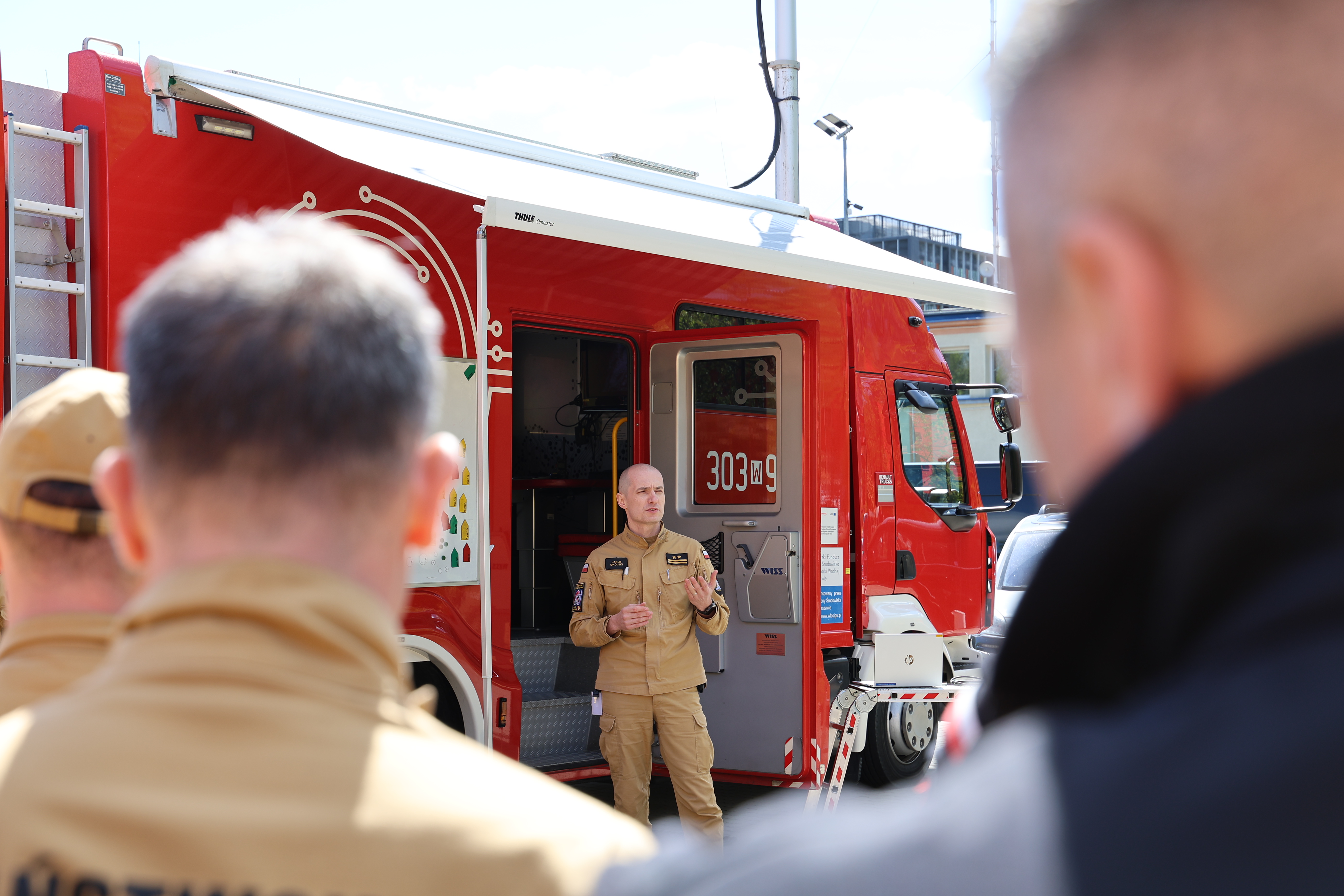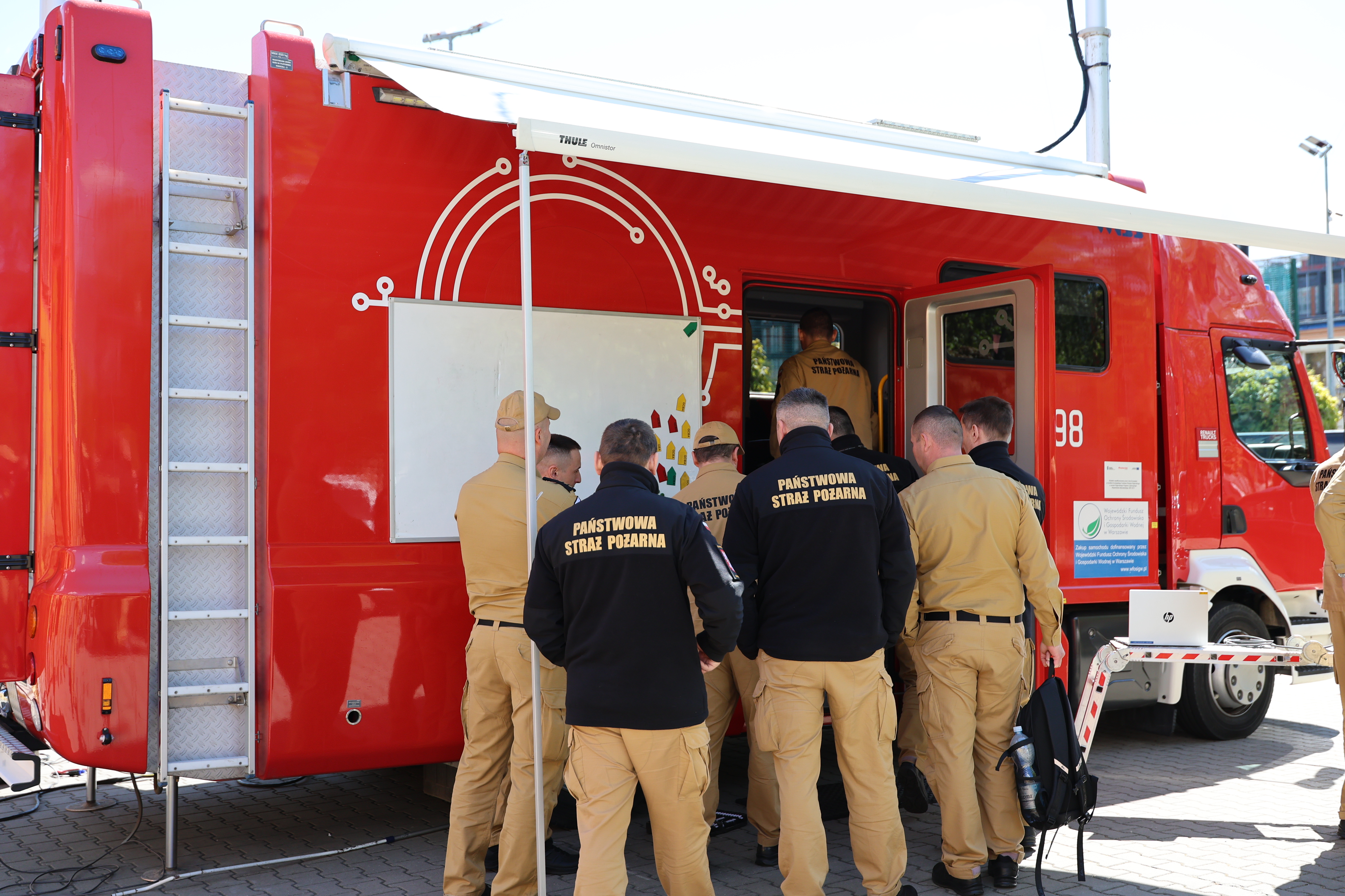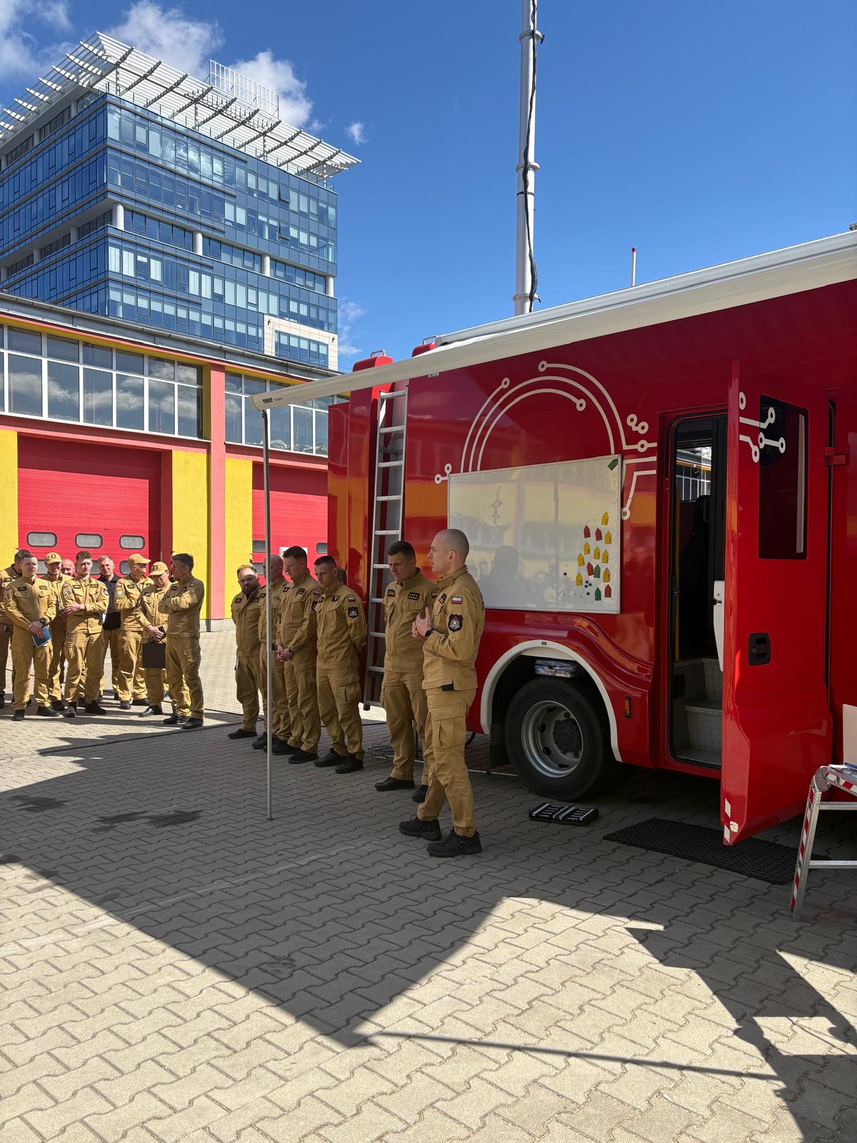 Omówiono również potencjał do budowy sztabu i organizacji łączności w oparciu o Batalionowy Samochód Dowodzenia i Łączności z JRG 3 KM PSP m.st. Warszawy.