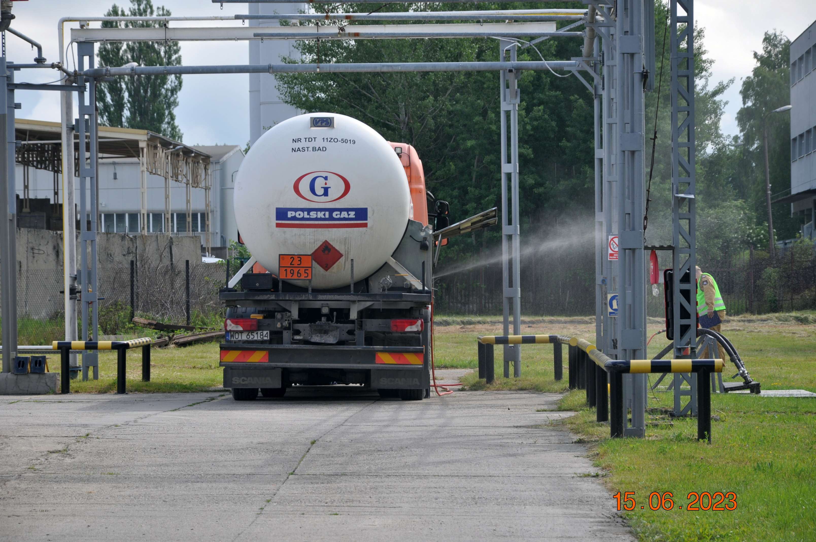 W scenariuszu ćwiczeń przyjęto zdarzenie związane z przepełnieniem autocysterny w trakcie napełniania i uszkodzeniem jednego ze stałych elementów przyłączeniowych w cysternie. Wskutek zdarzenia doszło do wycieku fazy ciekłej.