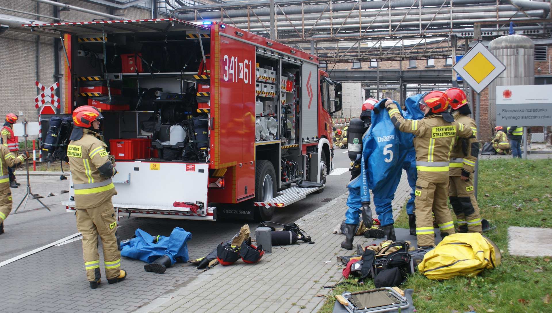 Okazuje się, że po ugaszeniu pożaru strażacy otrzymują informację o rozszczelnieniu instalacji na stanowisku rozładunku cystern z kwasem siarkowym. Zadaniem strażaków ze Specjalistycznej Grupy Ratownictwa Chemicznego było uszczelnienie wycieku kwasu z rurociągu, a następnie wypompowanie kwasu siarkowego z misy zabezpieczającej. To były założenia do drugiego epizodu ćwiczeń.