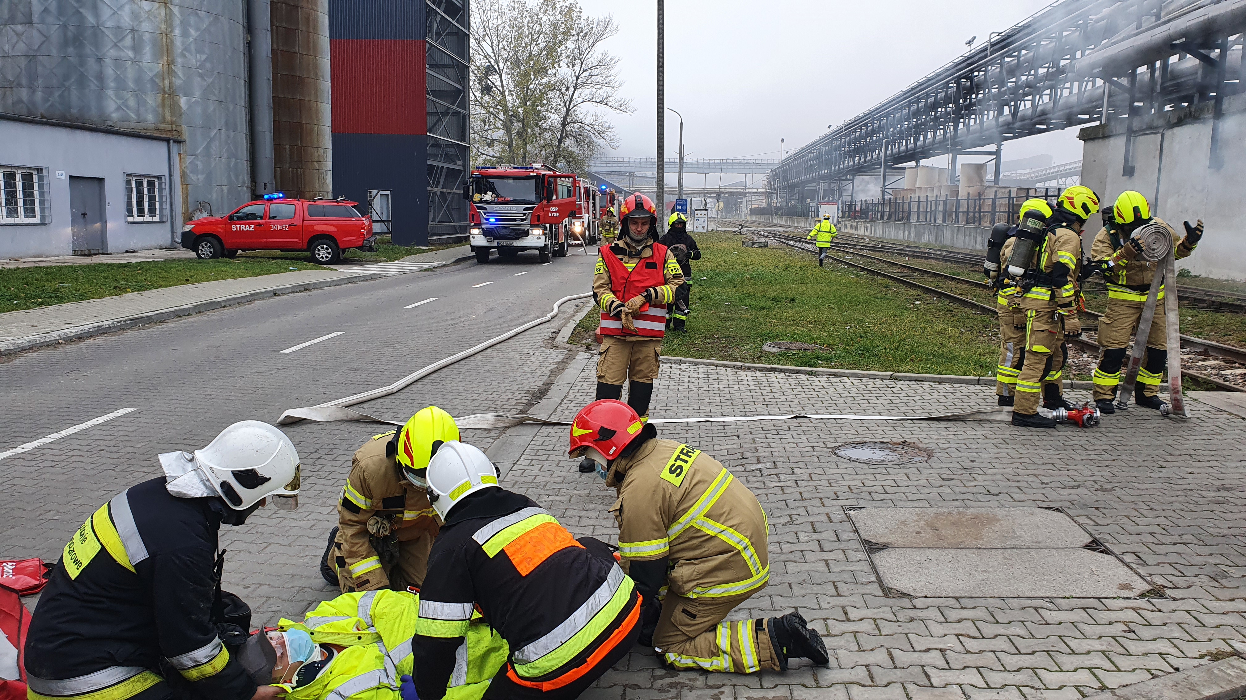 9 listopada 2021 roku o godzinie 11.00 Dyżurny Stanowiska Kierowania PSP w Ostrołęce otrzymał zgłoszenie o pożarze taśmociągu w zakładzie Stora Enso Poland S.A. w Ostrołęce. Ponadto jeden z pracowników podczas próby gaszenia doznał poważnych obrażeń i znajduje się wewnątrz budynku makulaturowni. W trakcie działań gaśniczych jeden z ratowników również ulega wypadkowi, potrzebna jest ewakuacja ze strefy zagrożenia i udzielenie pomocy. Takie były założenia do ćwiczeń.