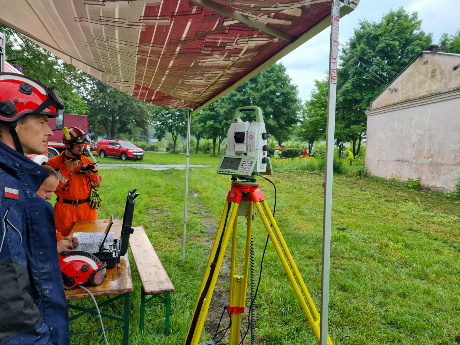 - stabilizacja ściany w pomieszczeniu, która jest naruszona i przechylona do środka, wykonanie otworu na przeciwległej ścianie w celu włożenia kamery i rozpoznaniu, w którym miejscu znajduje się poszkodowany;
