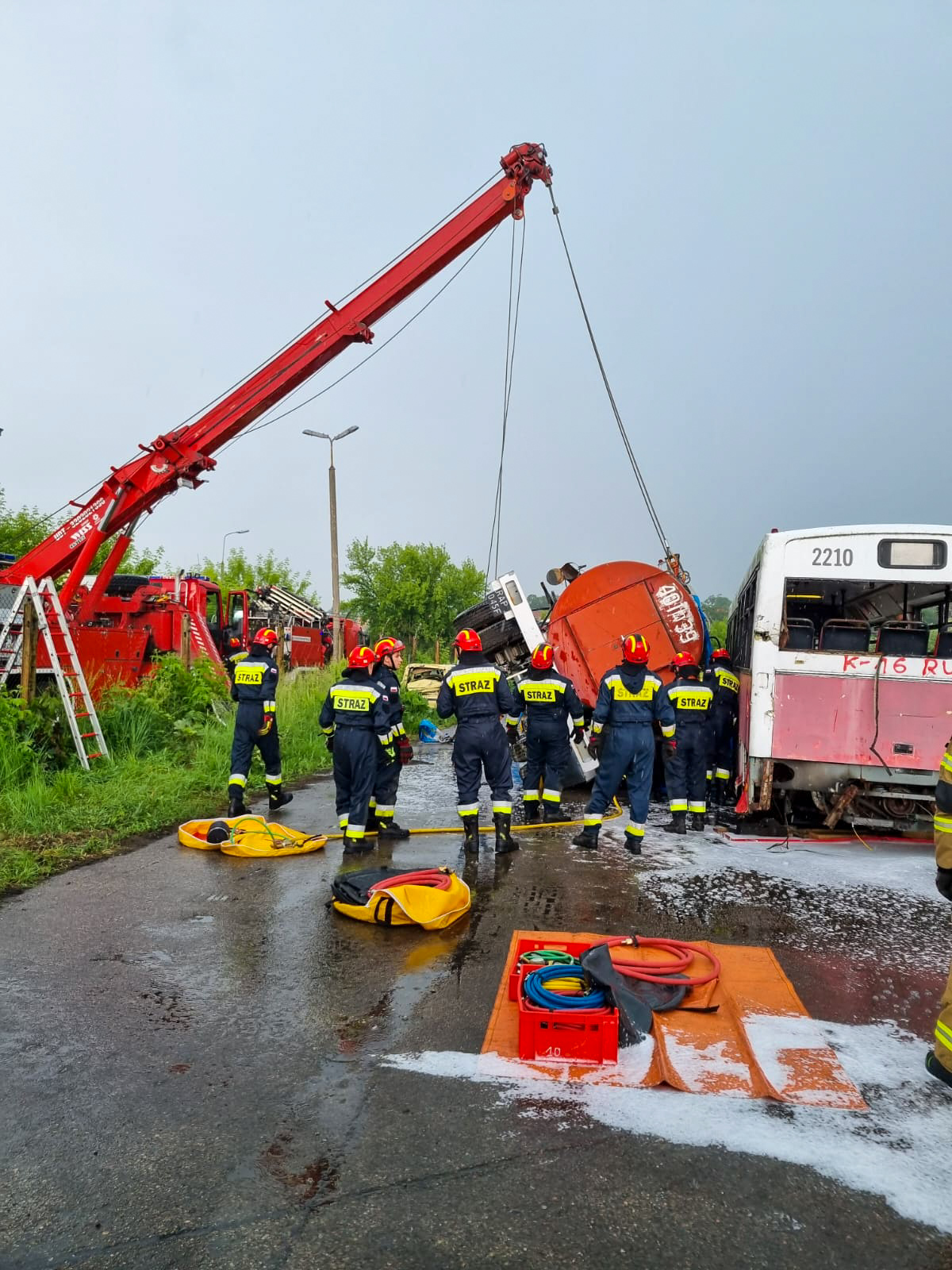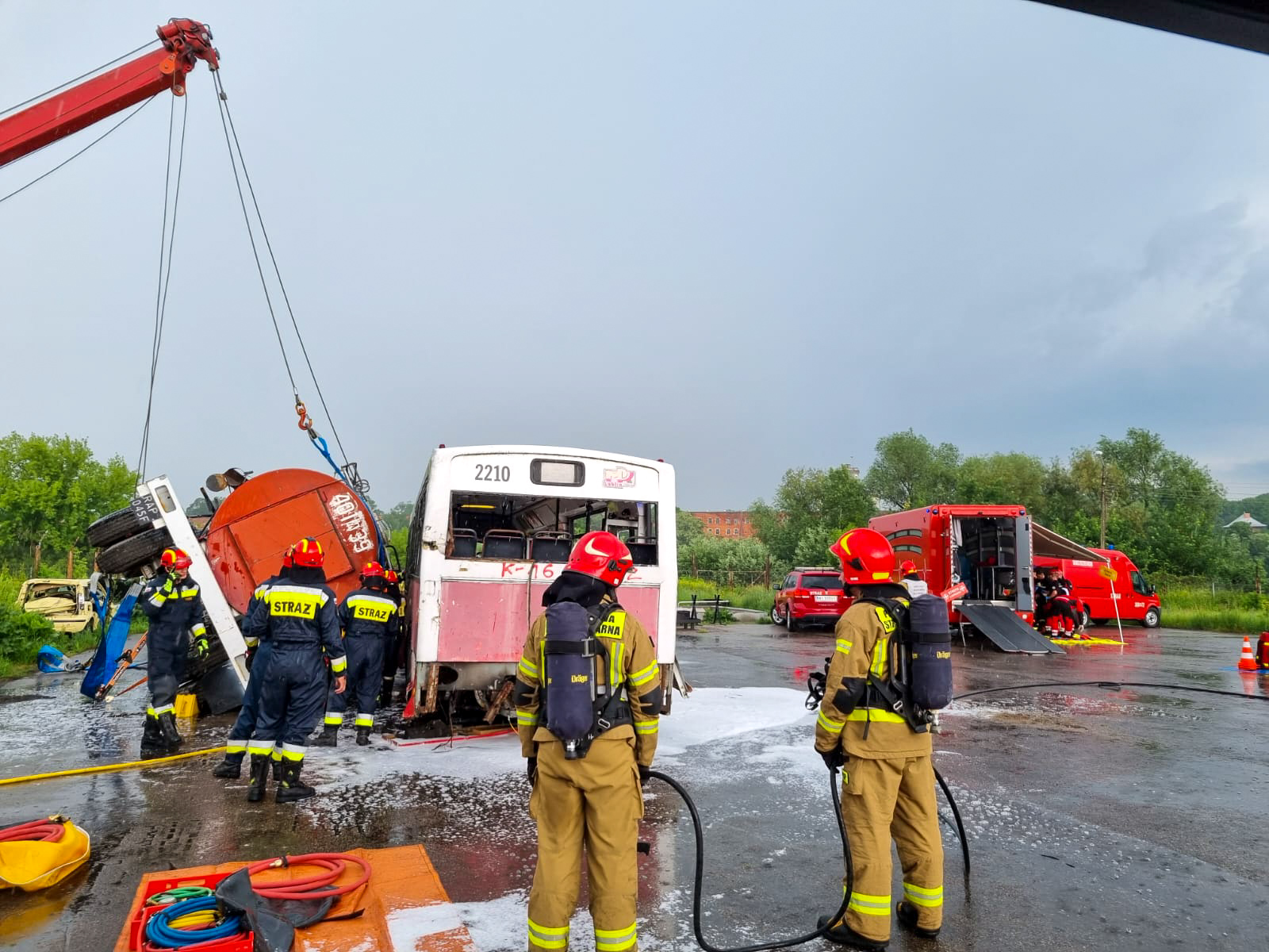 - ratownictwem technicznym – stabilizacja pojazdów i postawienie na koła, umieszczenie samochodu osobowego w kontenerze z wodą, odholowanie pojazdów we wskazane miejsce