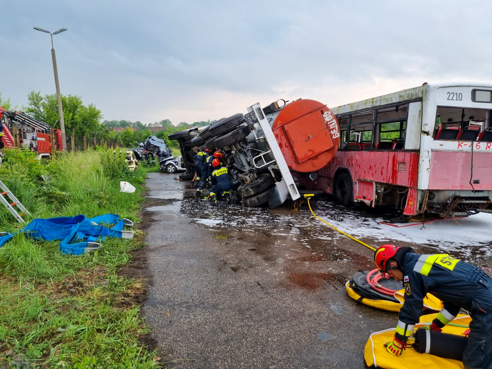 Epizod 1: wypadek komunikacyjny, zderzenie samochodu autocysterny przewożącej olej napędowy z samochodem osobowym o napędzie elektrycznym i autobusu komunikacji miejskiej, wskutek czego cysterna przewróciła się na samochód osobowy,który uległ zapaleniu, poszkodowanych łącznie 16 osób.