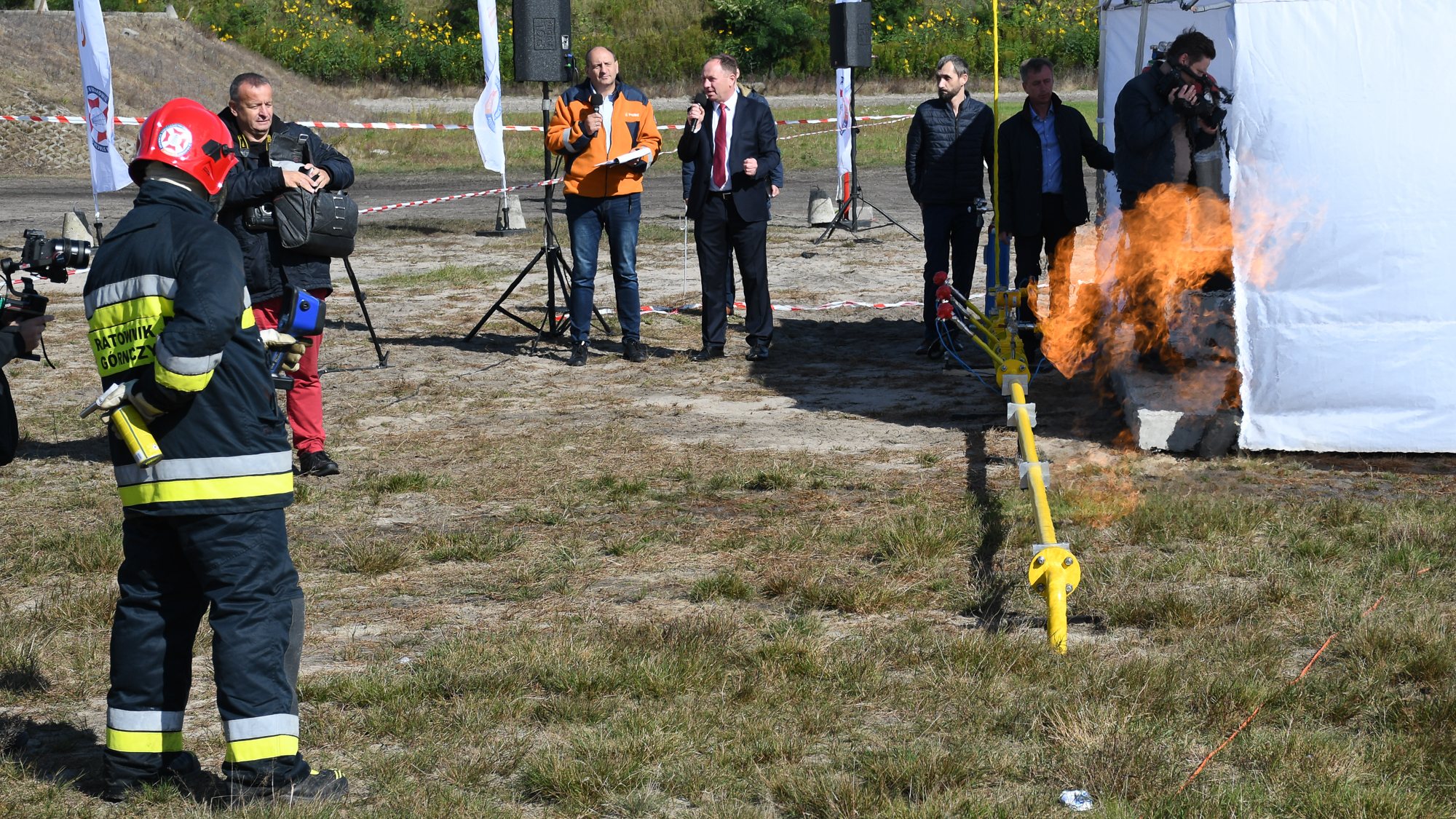 Podczas części praktycznej sprawdzono metody gaszenia pożaru rozlewiska LNG za pomocą wody, piany ciężkiej, piany średniej oraz proszku gaśniczego. Następnie ratownicy górniczy PGNiG przeprowadzili akcję likwidowania pożaru w wyniku rozszczelnienia zaworu w głowicy służącej do wydobycia gazu ziemnego.