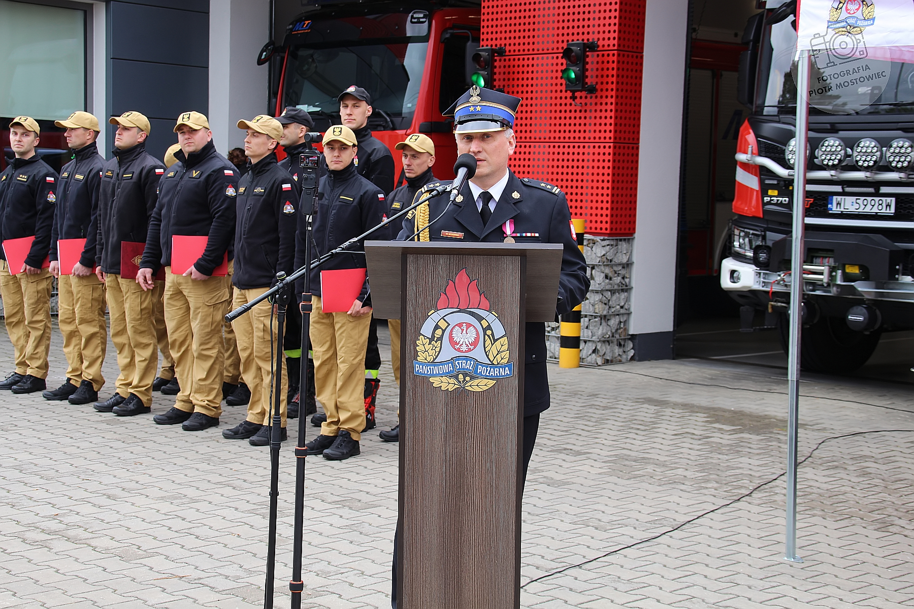 W imieniu odznaczonych i awansowanych głos zabrał kpt. Norbert Janik, który podziękował za doceniony trud służby i pracy, z jakim codziennie mierzy się środowisko strażackie oraz zapewnił o dalszym, niesłabnącym zaangażowaniu w strażacką służbę.