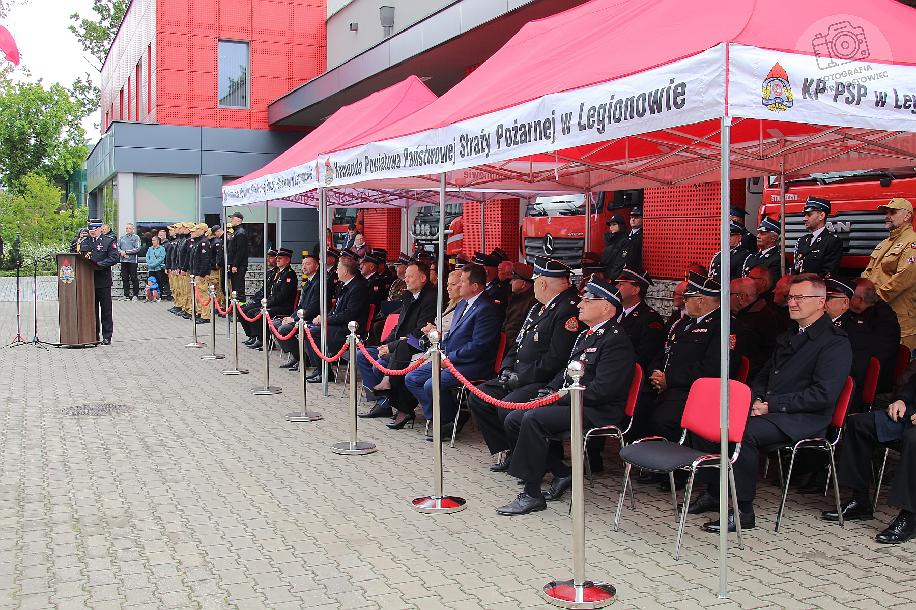 Po podniesieniu biało-czerwonej flagi i odśpiewaniu hymnu państwowego Rzeczypospolitej Polskiej Komendant Powiatowy PSP w Legionowie bryg. Karol Mendak przywitał wszystkich przybyłych na uroczystość. W swoim przemówieniu podziękował wszystkim strażakom za codzienną służbę, a obecnym samorządowcom za nieocenioną pomoc w budowaniu potencjału Krajowego Systemu Ratowniczo-Gaśniczego na terenie powiatu legionowskiego.