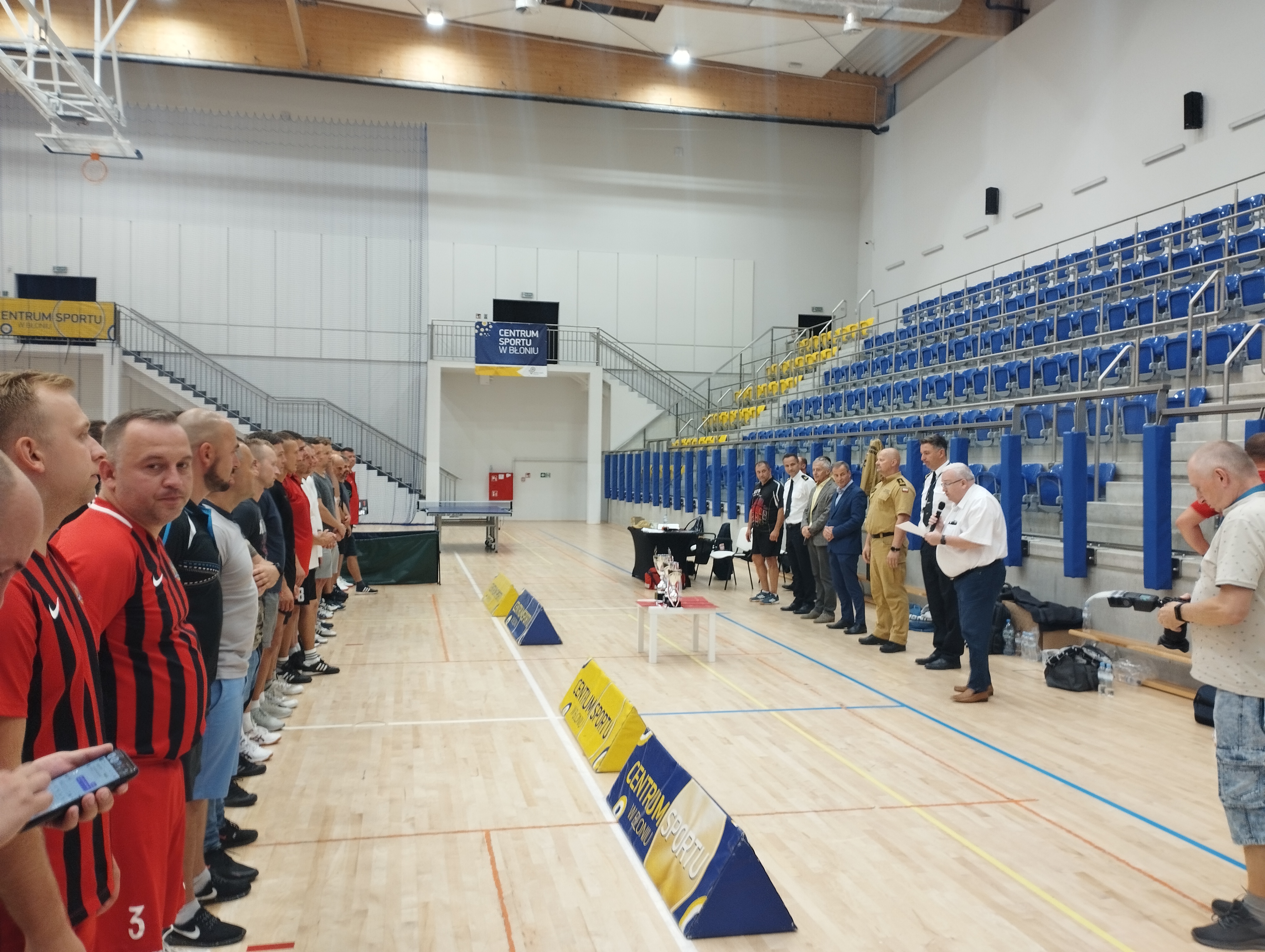 Zastępca Mazowieckiego Komendanta Wojewódzkiego PSP st. bryg. Tomasz Cybul przywitał wszystkich zawodników i gości w imieniu Mazowieckiego Komendanta Wojewódzkiego PSP. Podziękował gospodarzowi terenu Burmistrzowi Błonia Zenonowi Reszce za udostępnienie obiektu, a Dyrektorowi Włodzimierzowi Leduchowskiemu za pomoc w przygotowaniu hali do zawodów. Podziękowania zostały również złożone sędziemu głównemu Panu Pawłowi Szelińskiemu za profesjonalne i pełne zaangażowania sędziowanie.