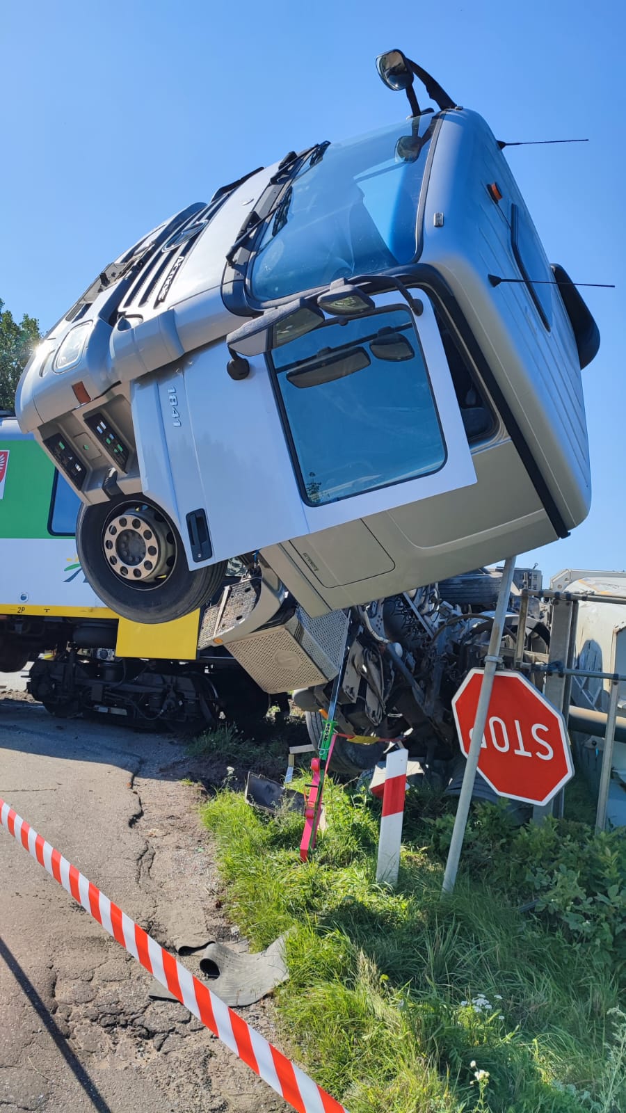 Groźny wypadek na niestrzeżonym przejeździe kolejowym w Dalanówku (powiat płoński)