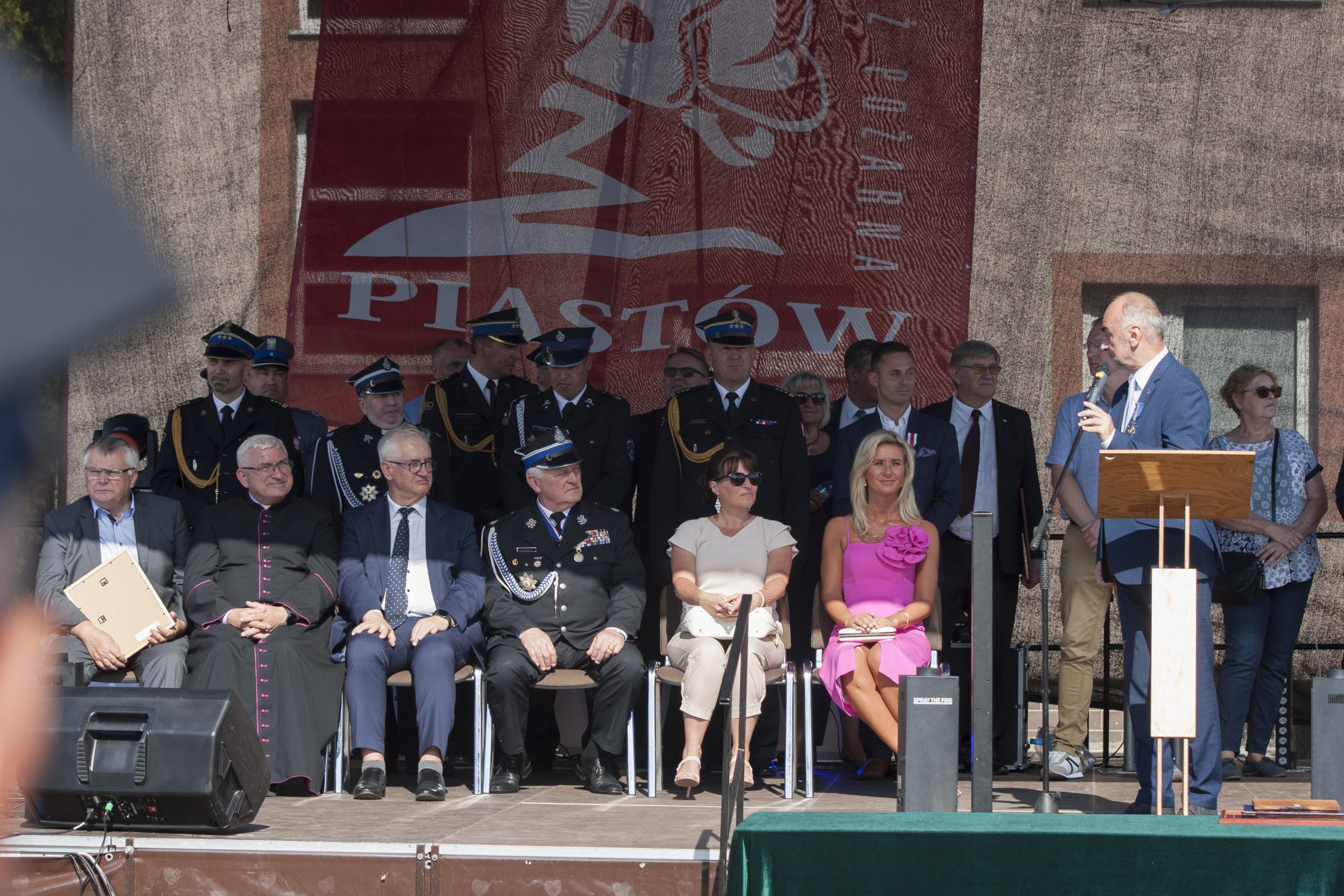 Prezes OSP w Piastowie druh Tomasz Sadowski przywitał przybyłych gości, a także wygłosił krótkie przemówienie, w którym podkreślił historyczną oraz współczesną rolę jaką odgrywa Ochotnicza Straż Pożarna w lokalnej społeczności i dziejach miasta Piastowa.