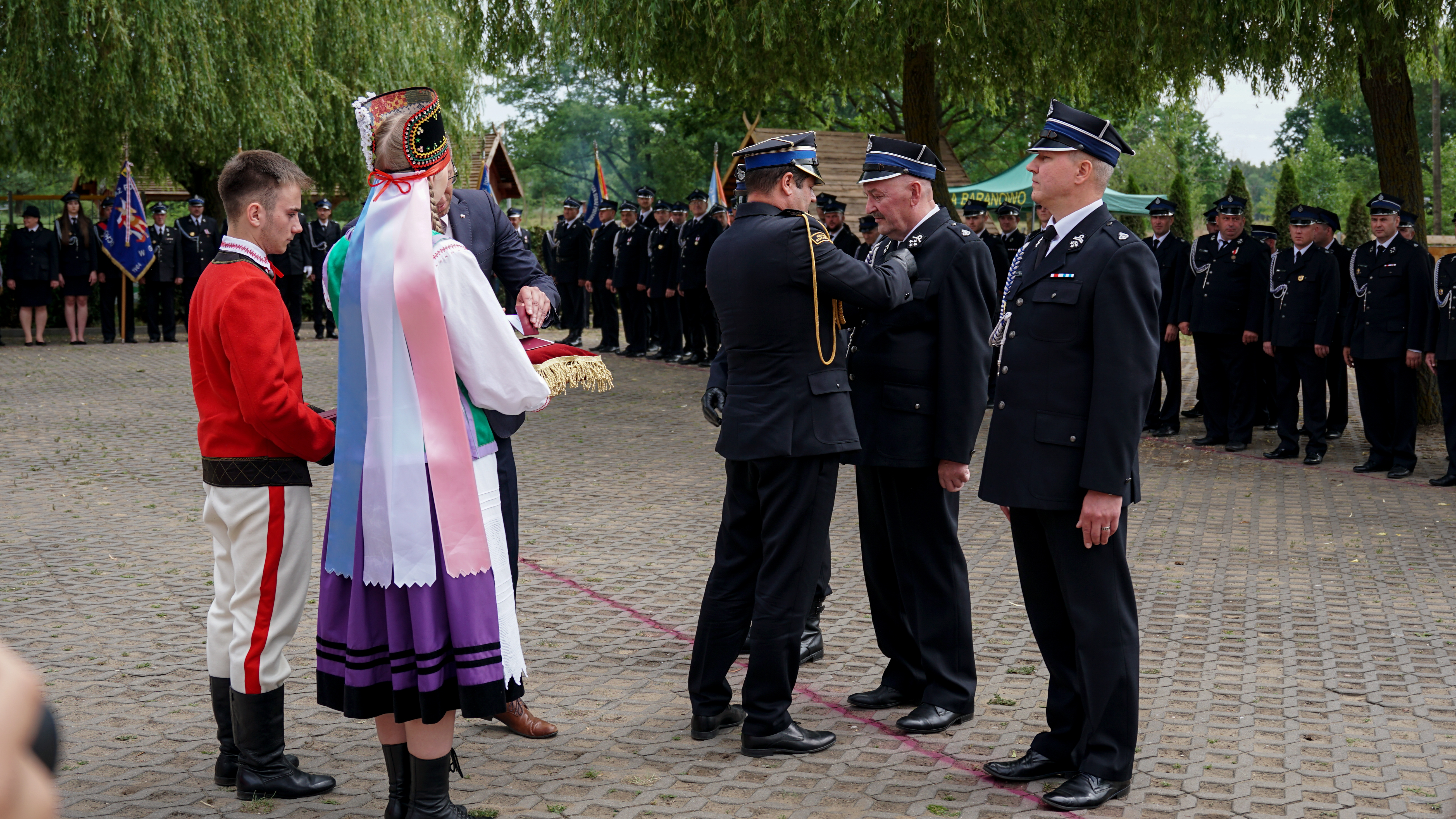 Kolejnym bardzo ważnym punktem obchodów była ceremonia nadania sztandaru oraz odznaczenie jednostki „Złotym Znakiem Związku OSP RP”.