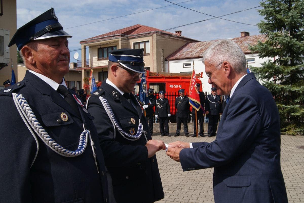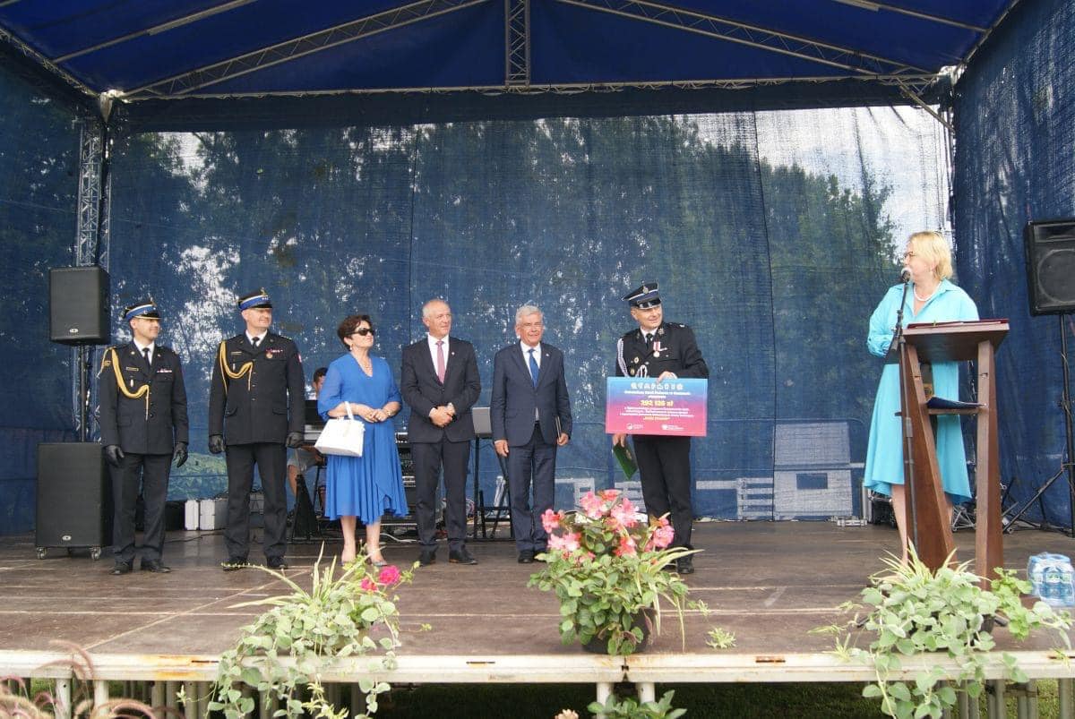 Następnie Pani Minister Anna Moskwa oraz Senator Stanisław Karczewski wręczyli druhom promesy na zakup lekkiego samochodu ratowniczo-gaśniczego.