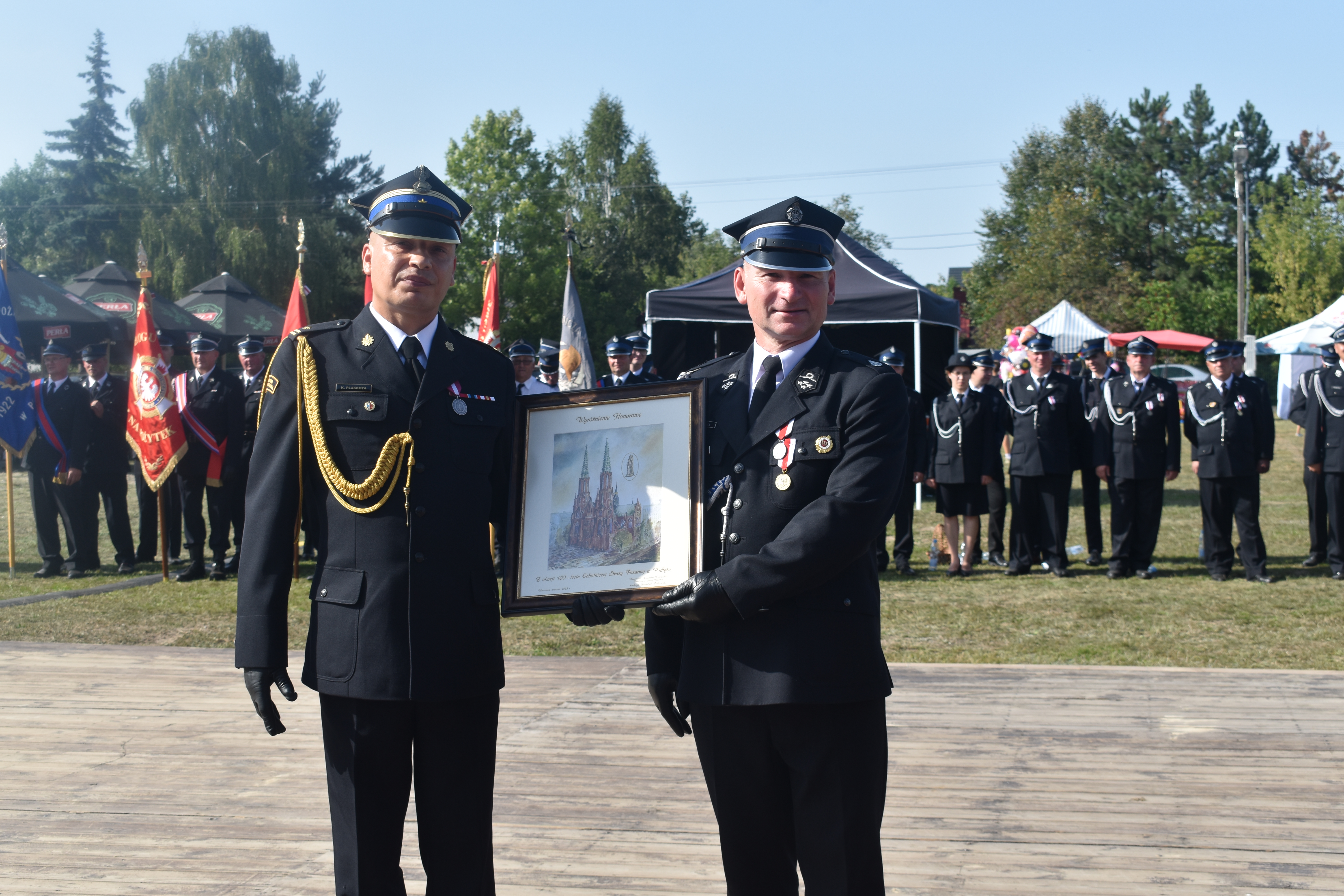 Przedstawiciel Mazowieckiego Komendanta Wojewódzkiego PSP z okazji 100-lecia powstania jednostki wręczył Prezesowi OSP w Podłężu pamiątkowy obraz przedstawiający Katedrę św. Michała Archanioła i św. Floriana w Warszawie, nazywaną „Świątynią mazowieckich strażaków”. Podczas swojego wystąpienia podziękował druhom, podkreślając ich zaangażowanie w codzienną, często niebezpieczną służbę.